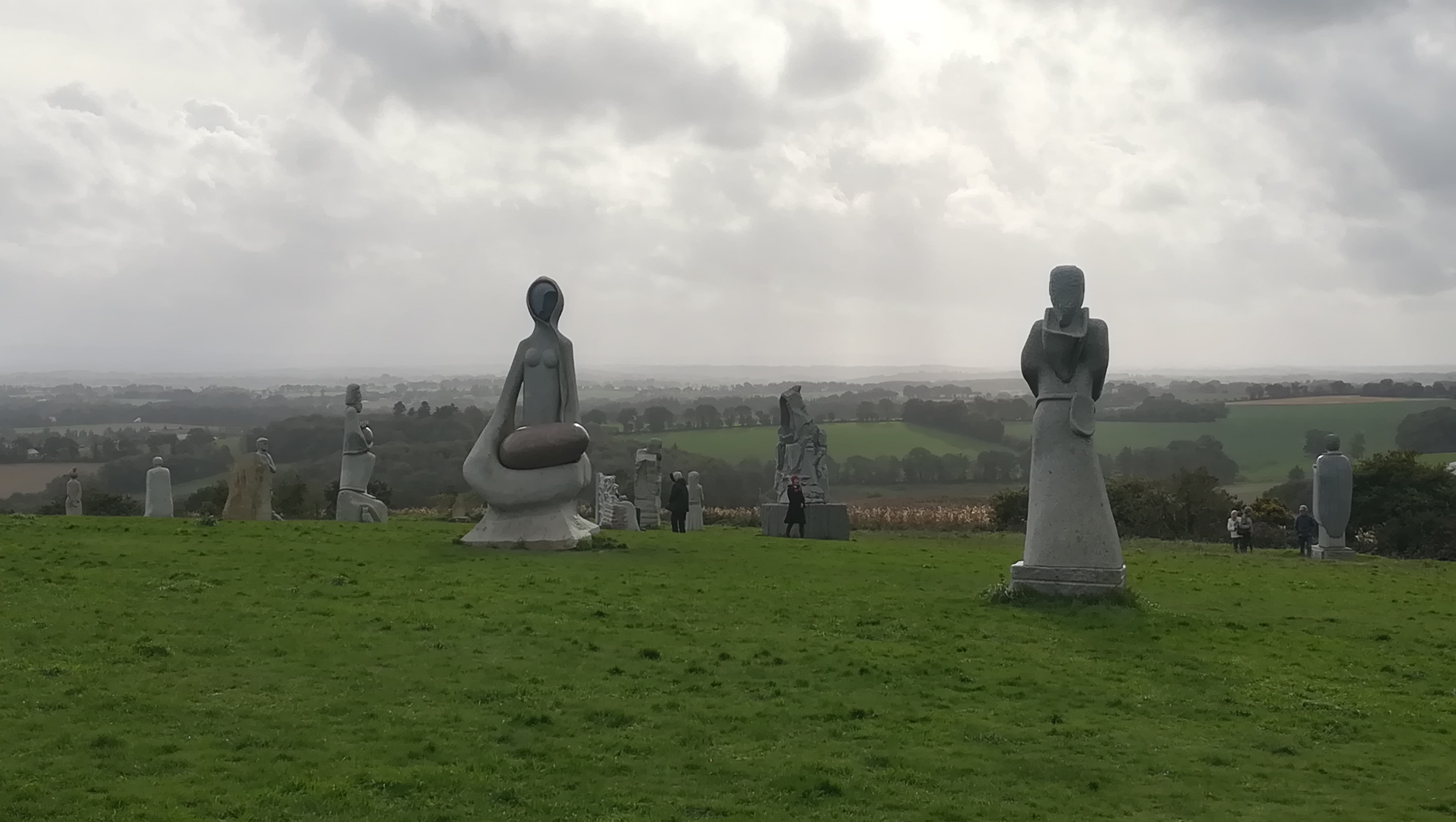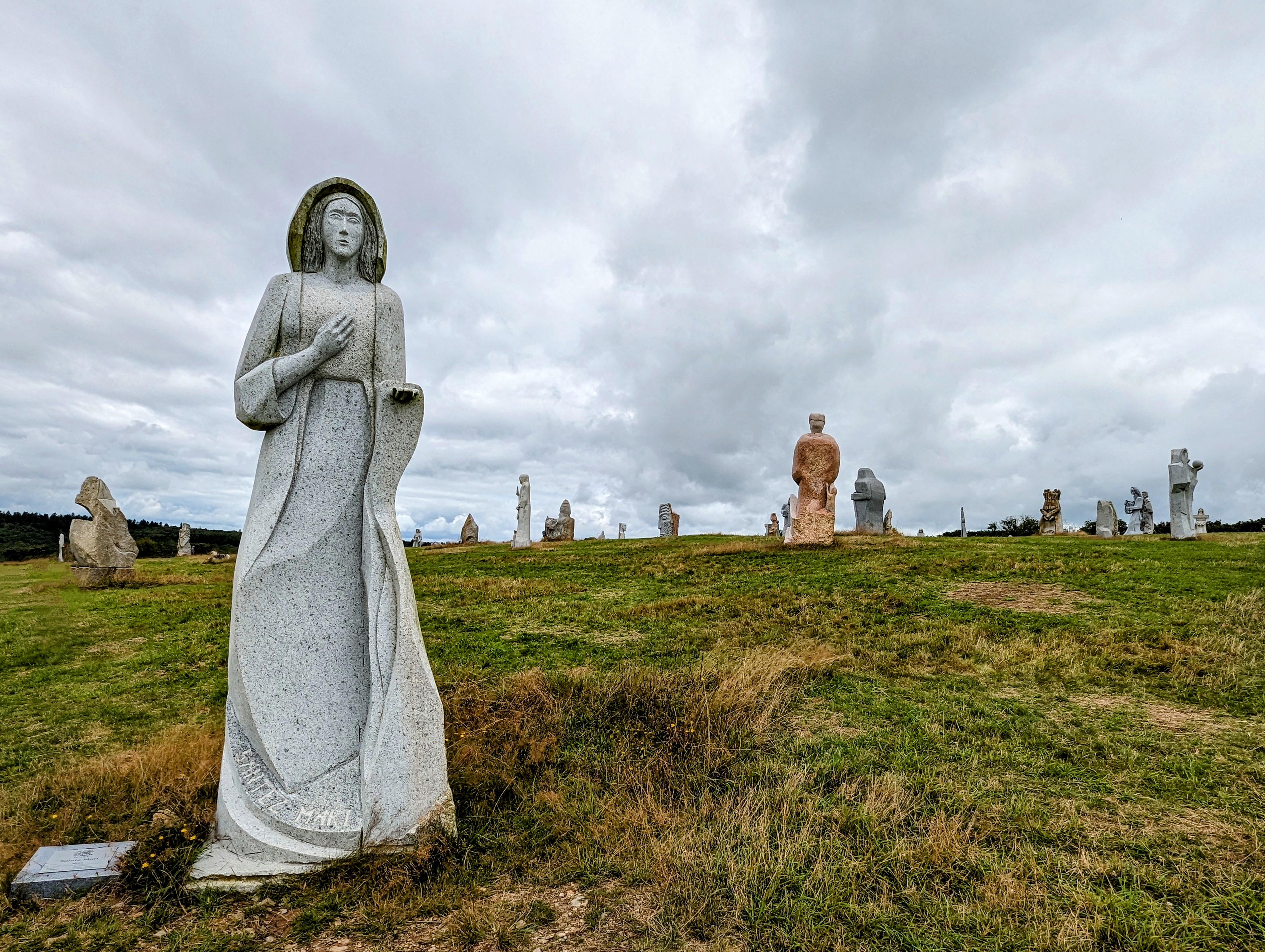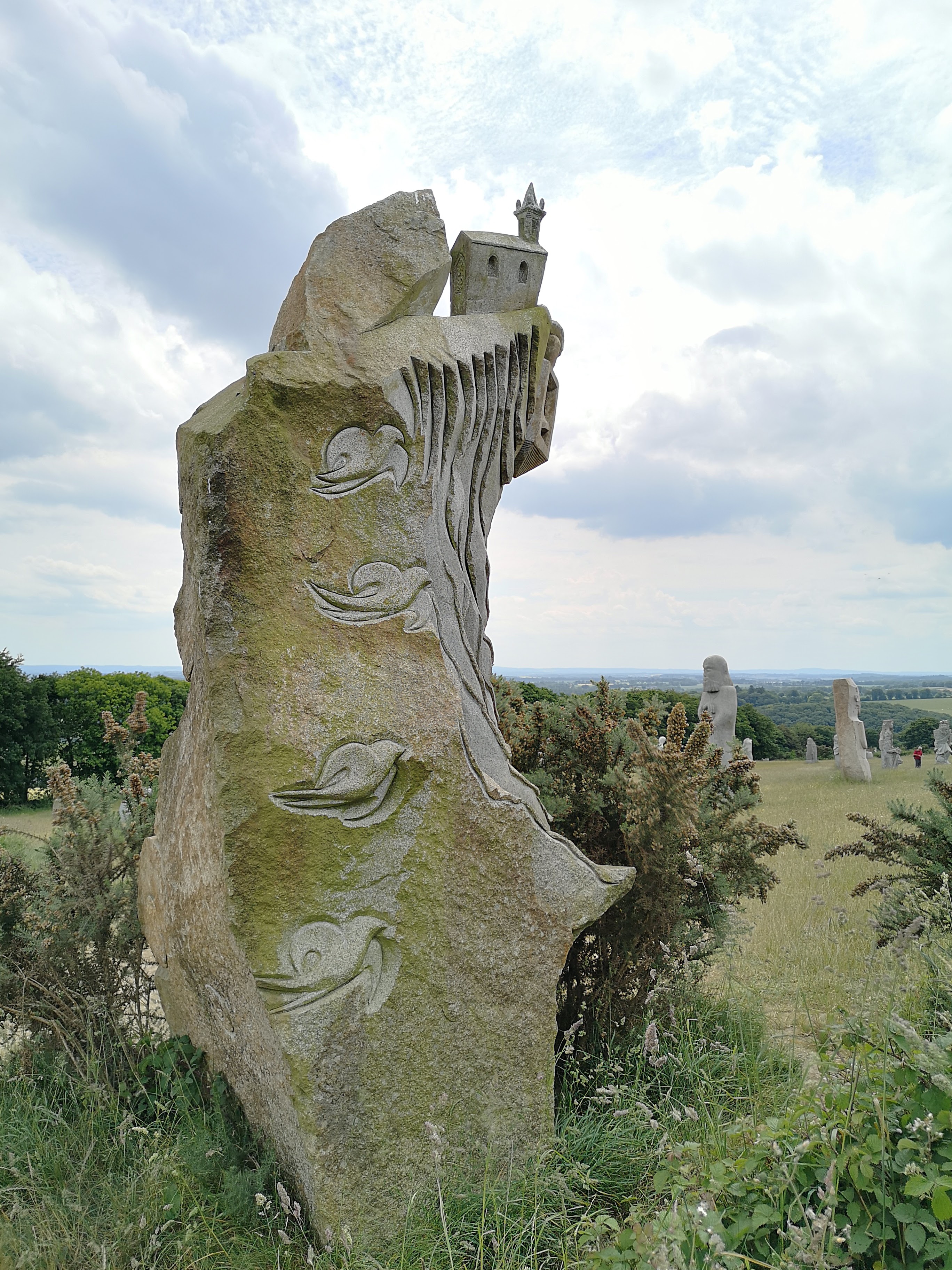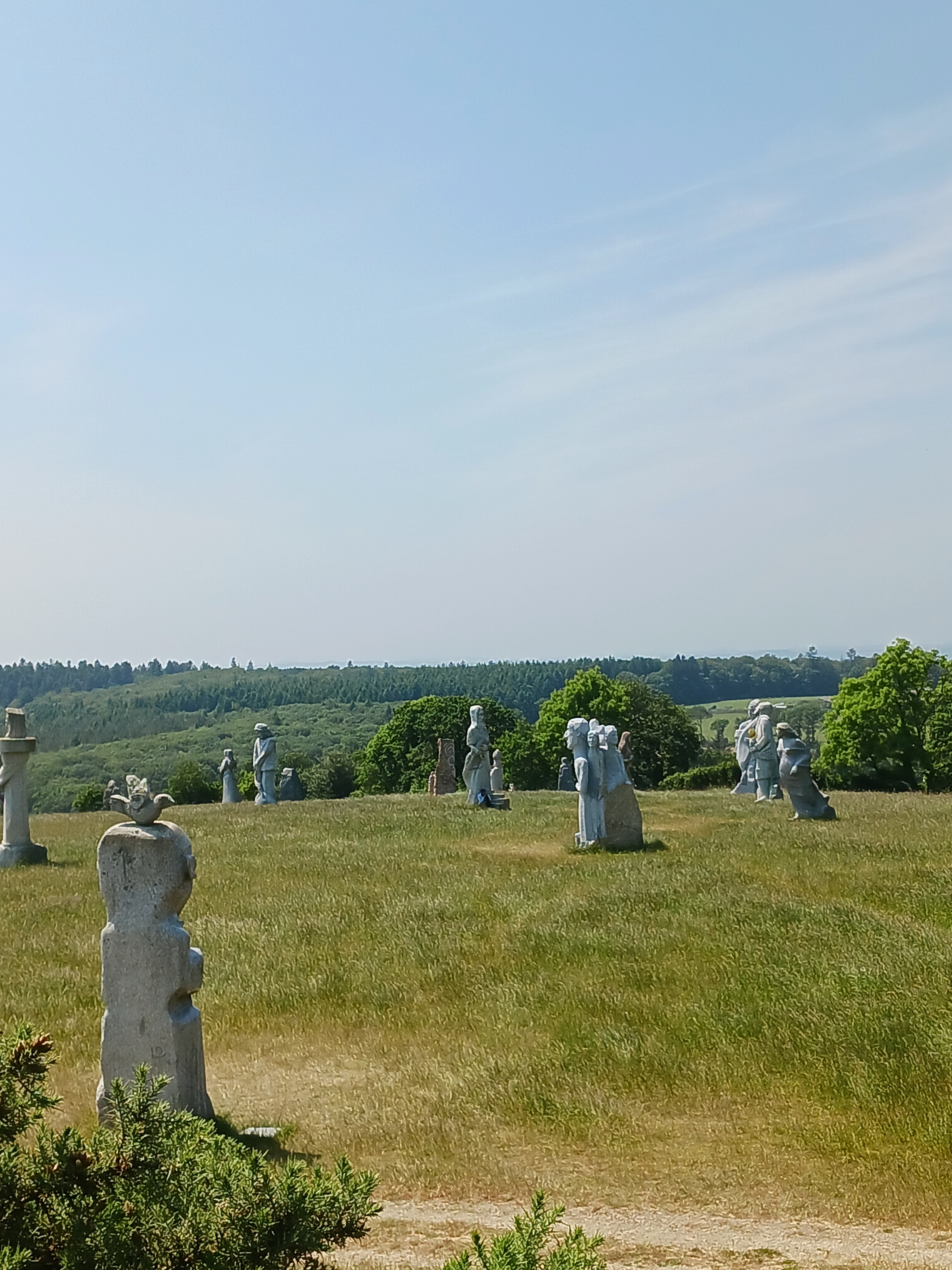 Lieu incontournable de votre visite en Bretagne, lors de notre passage il y avait déjà plus de 150 statues sur cette colline, c'est du plus bel effet, très photogénique, il y a tellement de genre que vous trouverez votre favori dans le traditionnel ou moderne. Les sculptures sont remarquables, la pierre est différente ne manquez pas de l'observer. A l'entrée du site 4 artistes créent de nouvelles statues, a terme on envisage peut être 1000 statues sur ce site, incroyable!! Site gratuit à la visite, parking payant à 5 euros par CB.