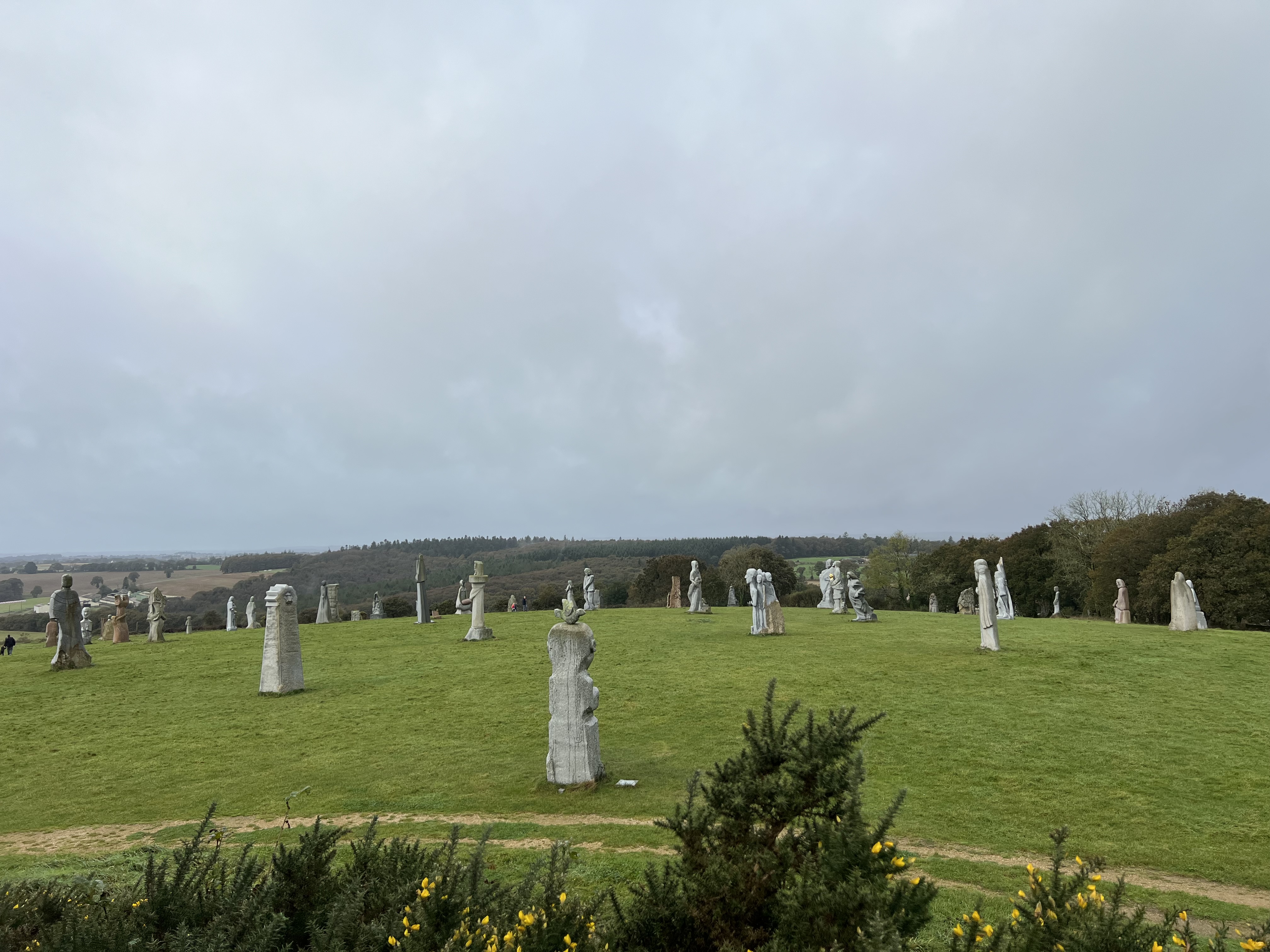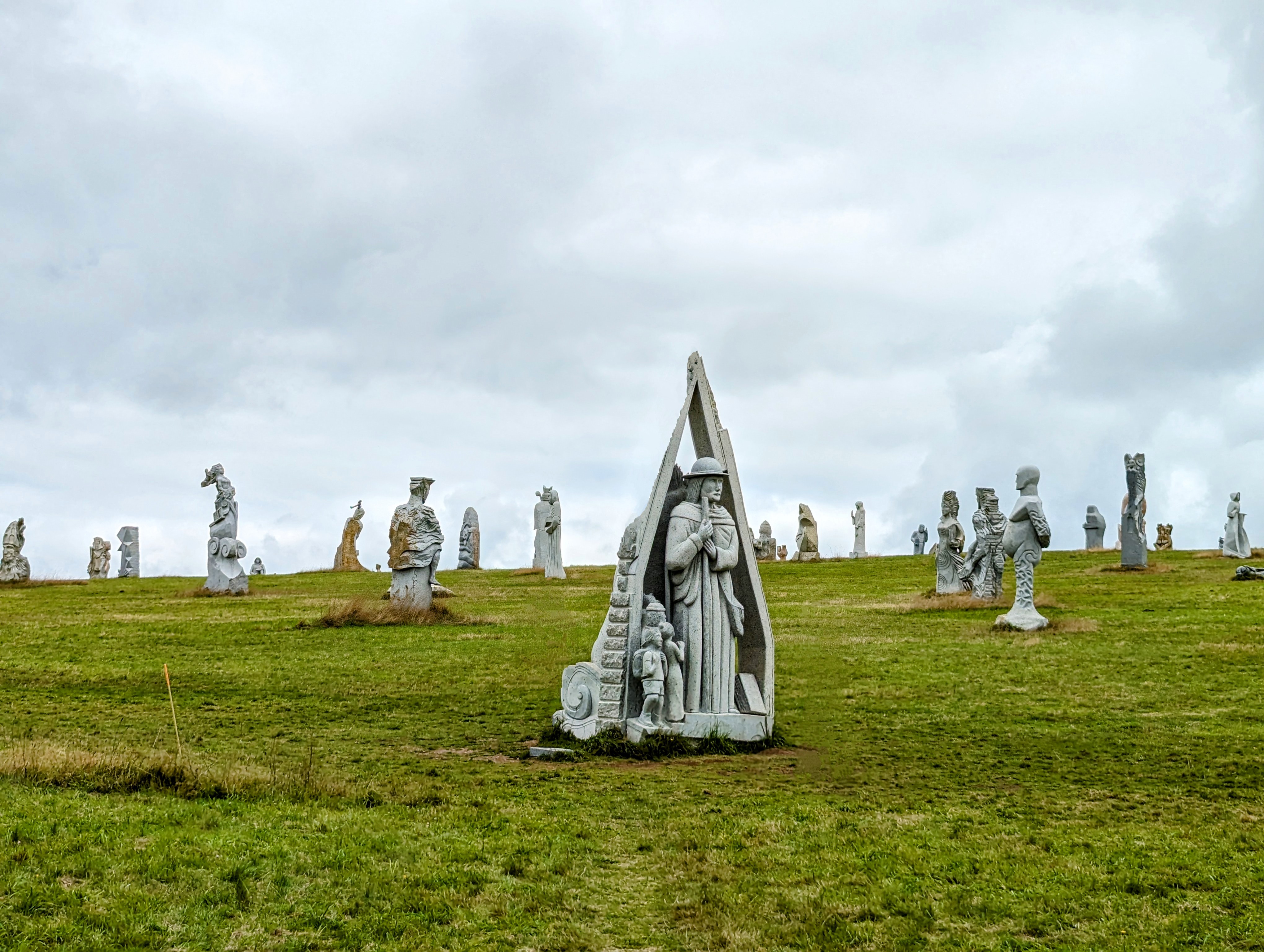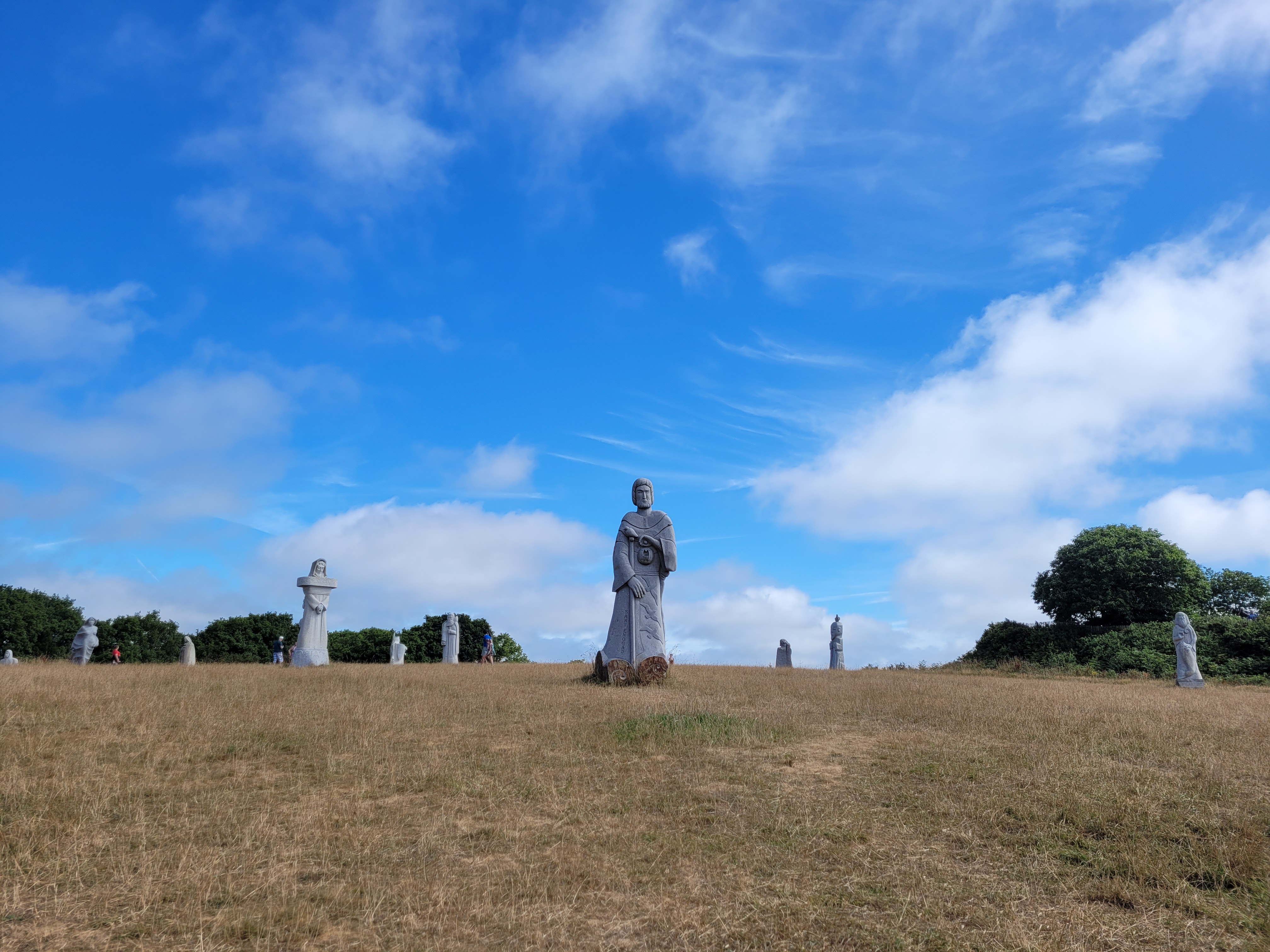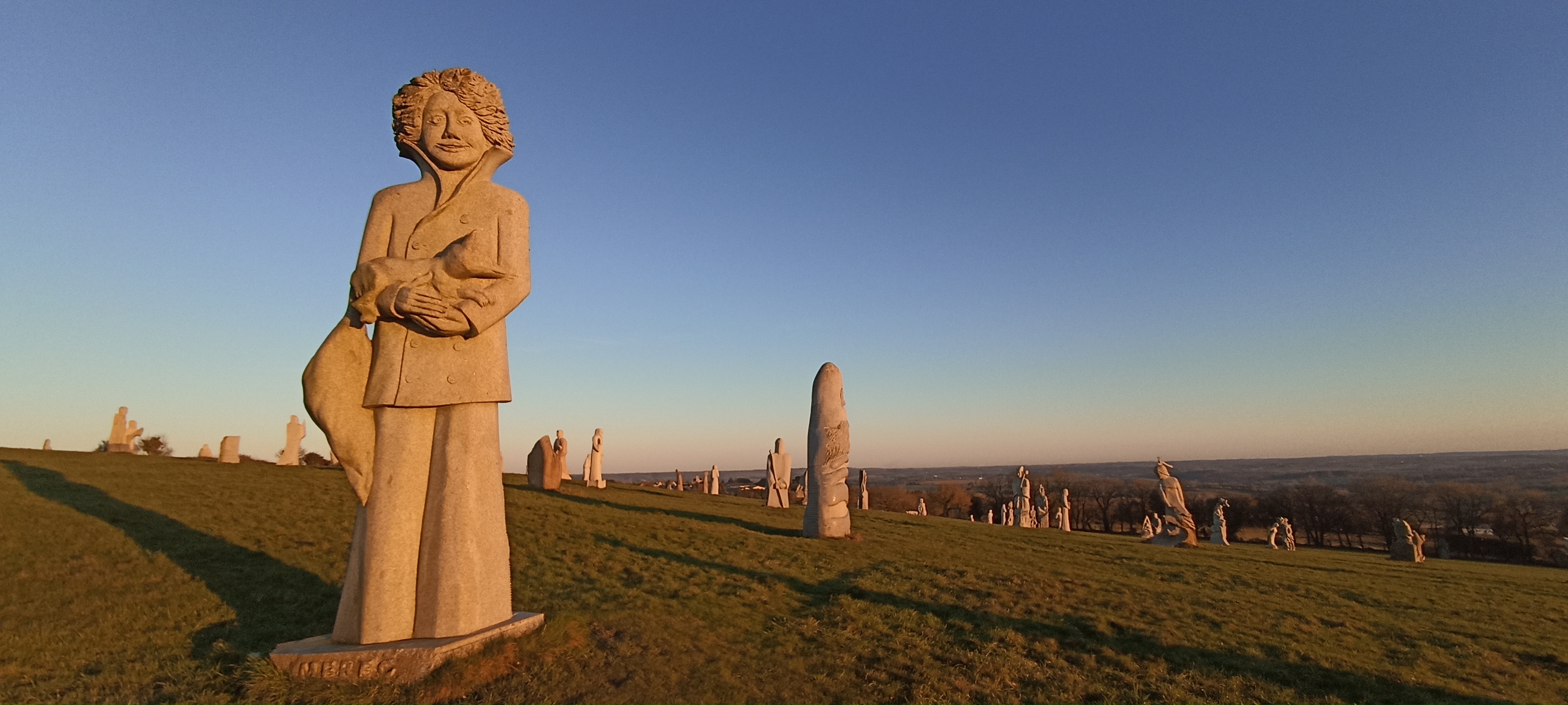 Lieu incontournable de votre visite en Bretagne, lors de notre passage il y avait déjà plus de 150 statues sur cette colline, c'est du plus bel effet, très photogénique, il y a tellement de genre que vous trouverez votre favori dans le traditionnel ou moderne. Les sculptures sont remarquables, la pierre est différente ne manquez pas de l'observer. A l'entrée du site 4 artistes créent de nouvelles statues, a terme on envisage peut être 1000 statues sur ce site, incroyable!! Site gratuit à la visite, parking payant à 5 euros par CB.