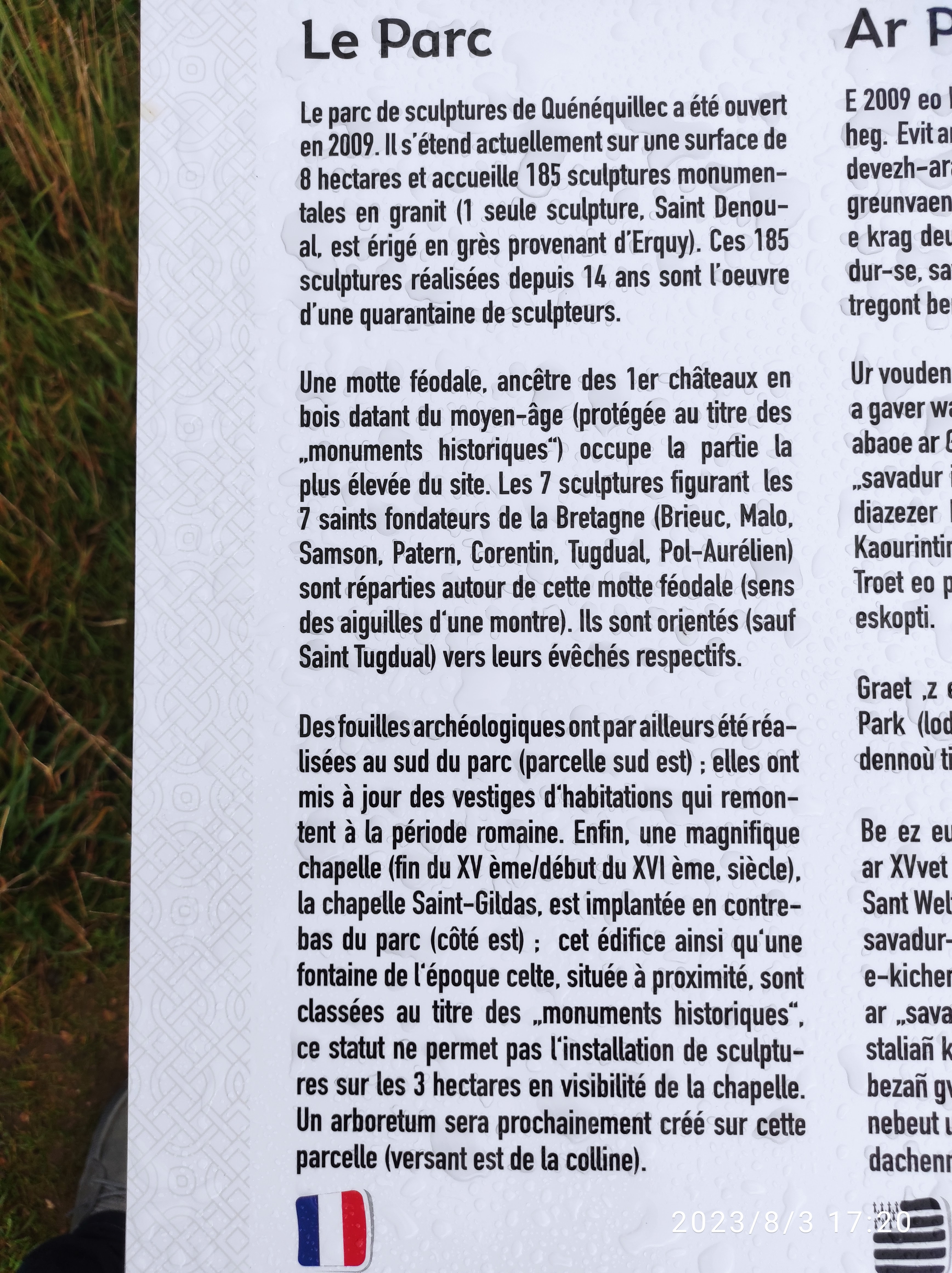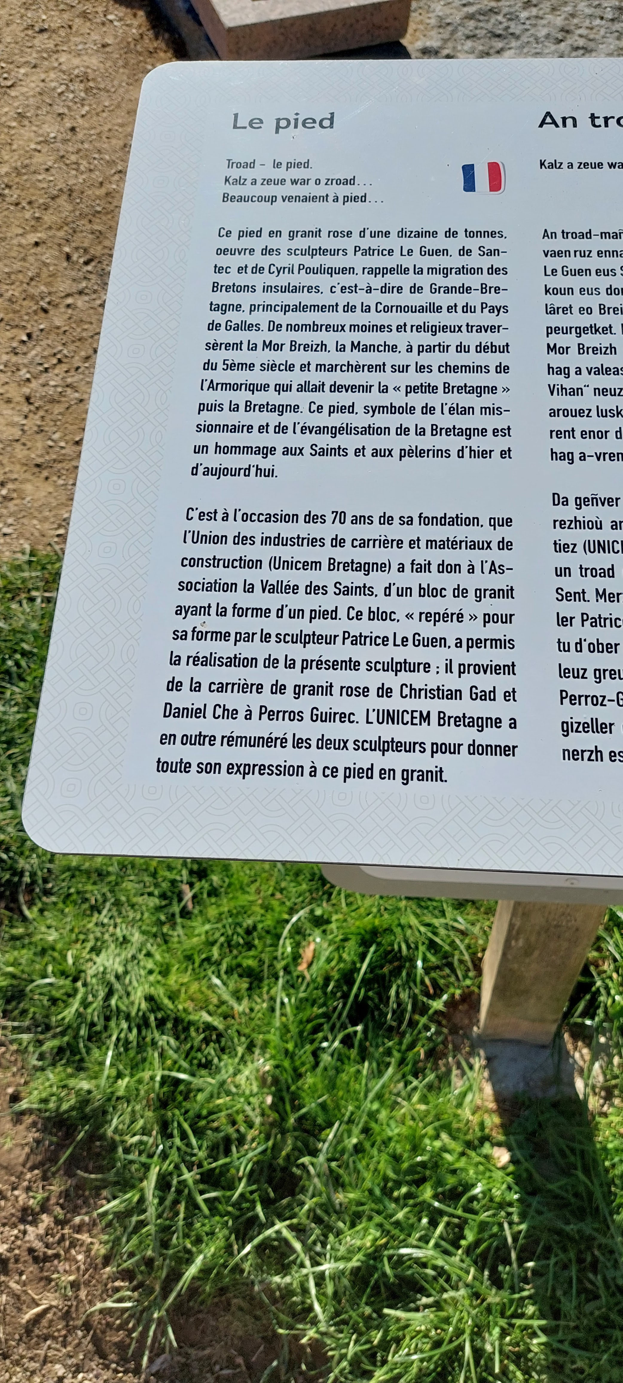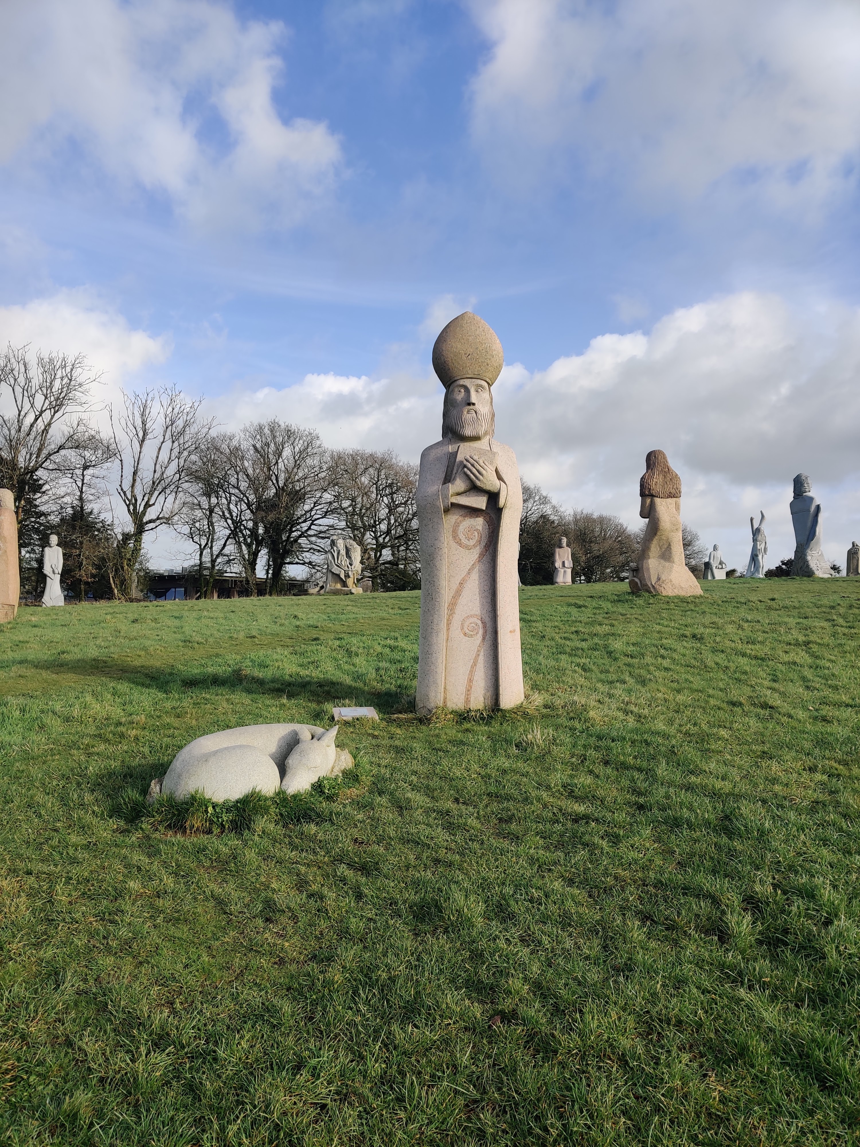 Très bonne initiative de faire honneur aux saints bretons. Il faisait chaud, parcours très agréable dommage que l'herbe ne soit pas coupée. Un énorme travail des sculpteurs. Bon accueil. En plus le site est gratuit et la visite guidée est à 6,50 euros. J'ai pris de très belles photos 👍👍