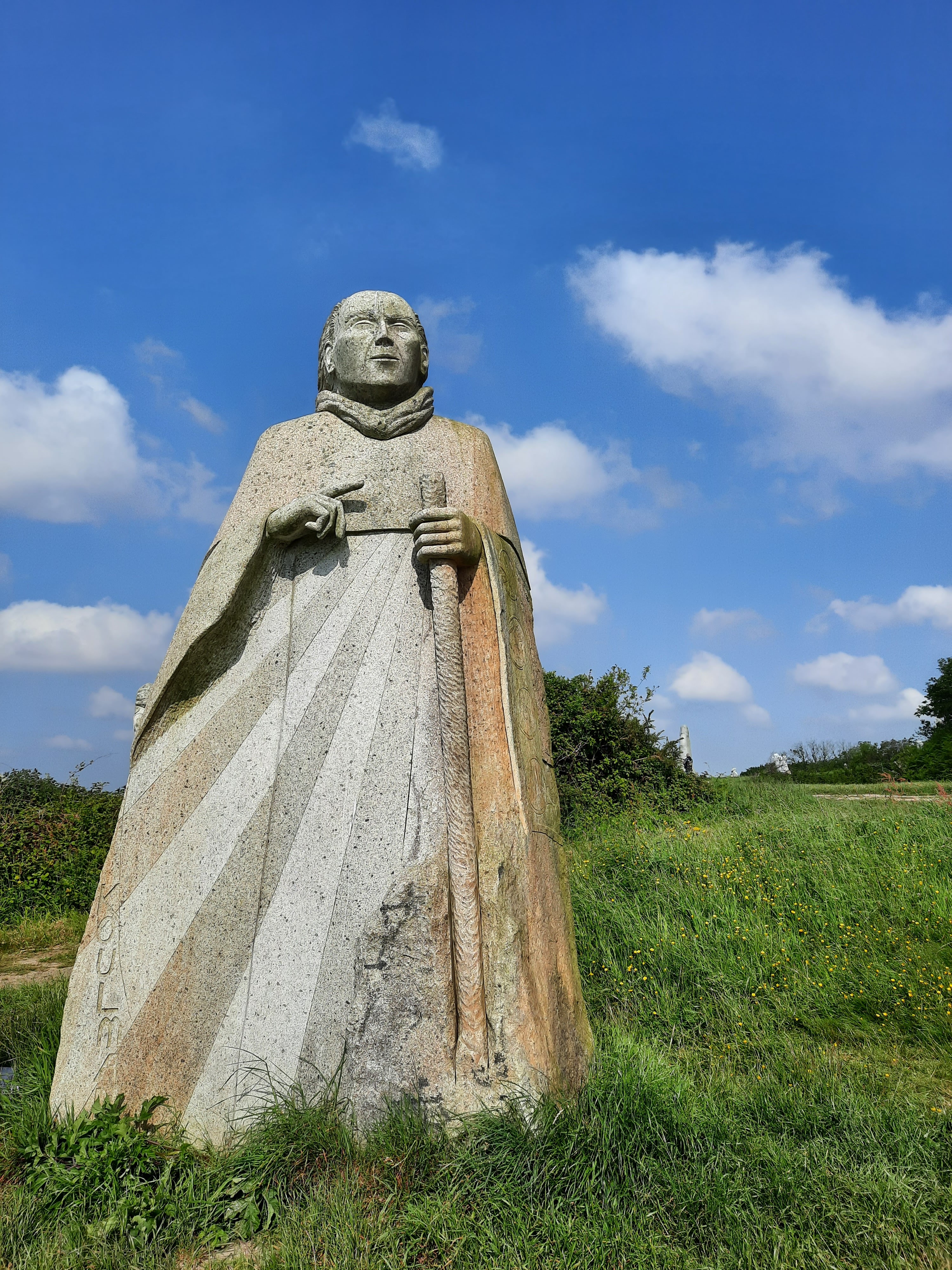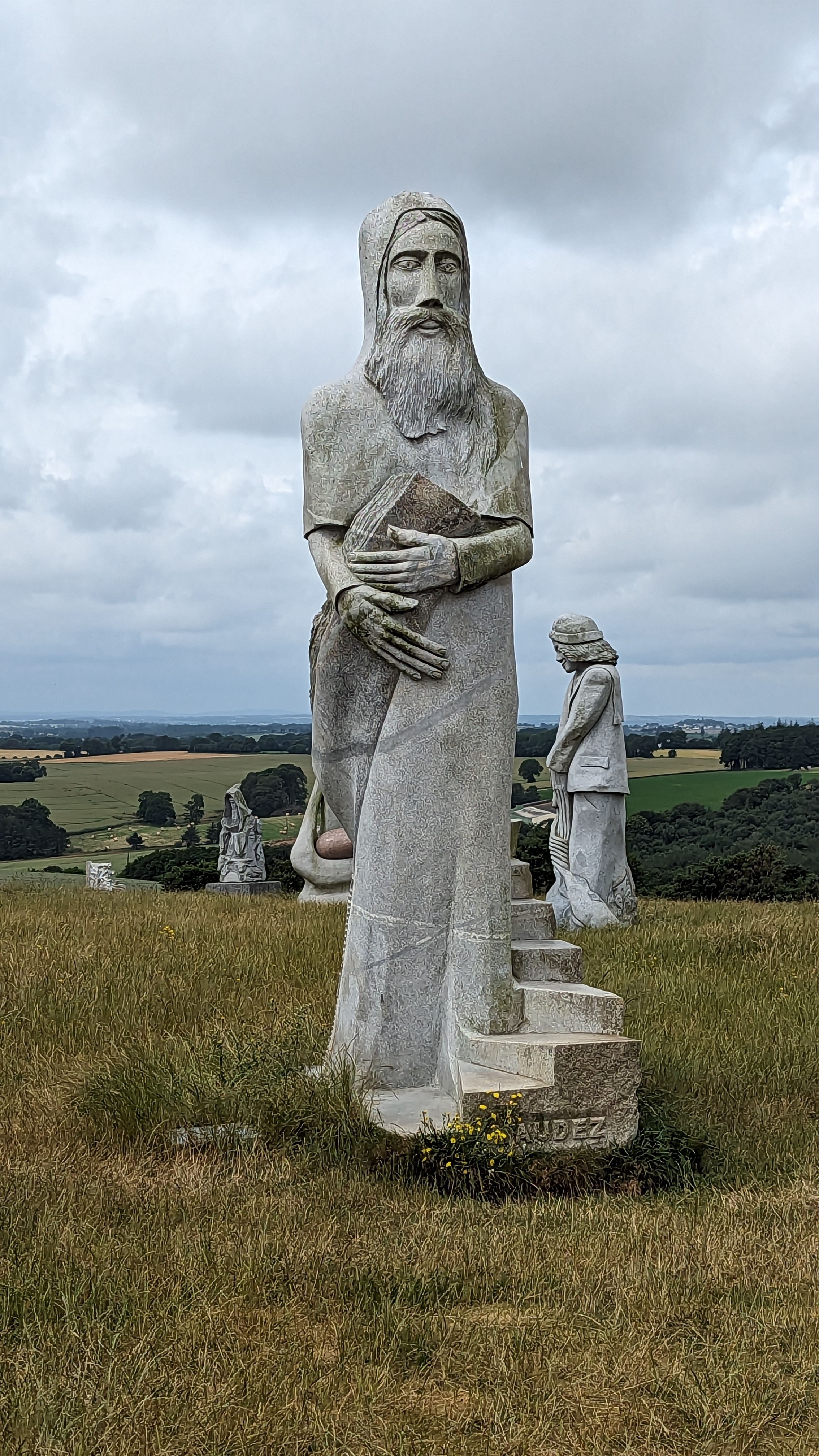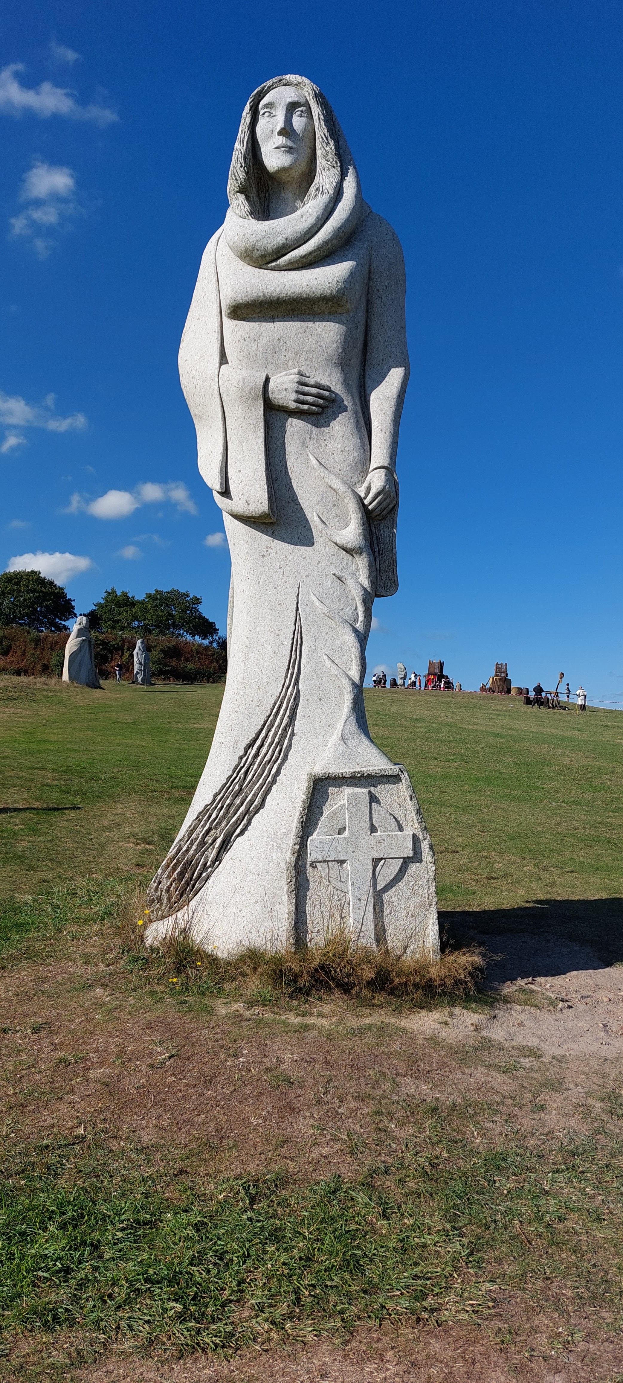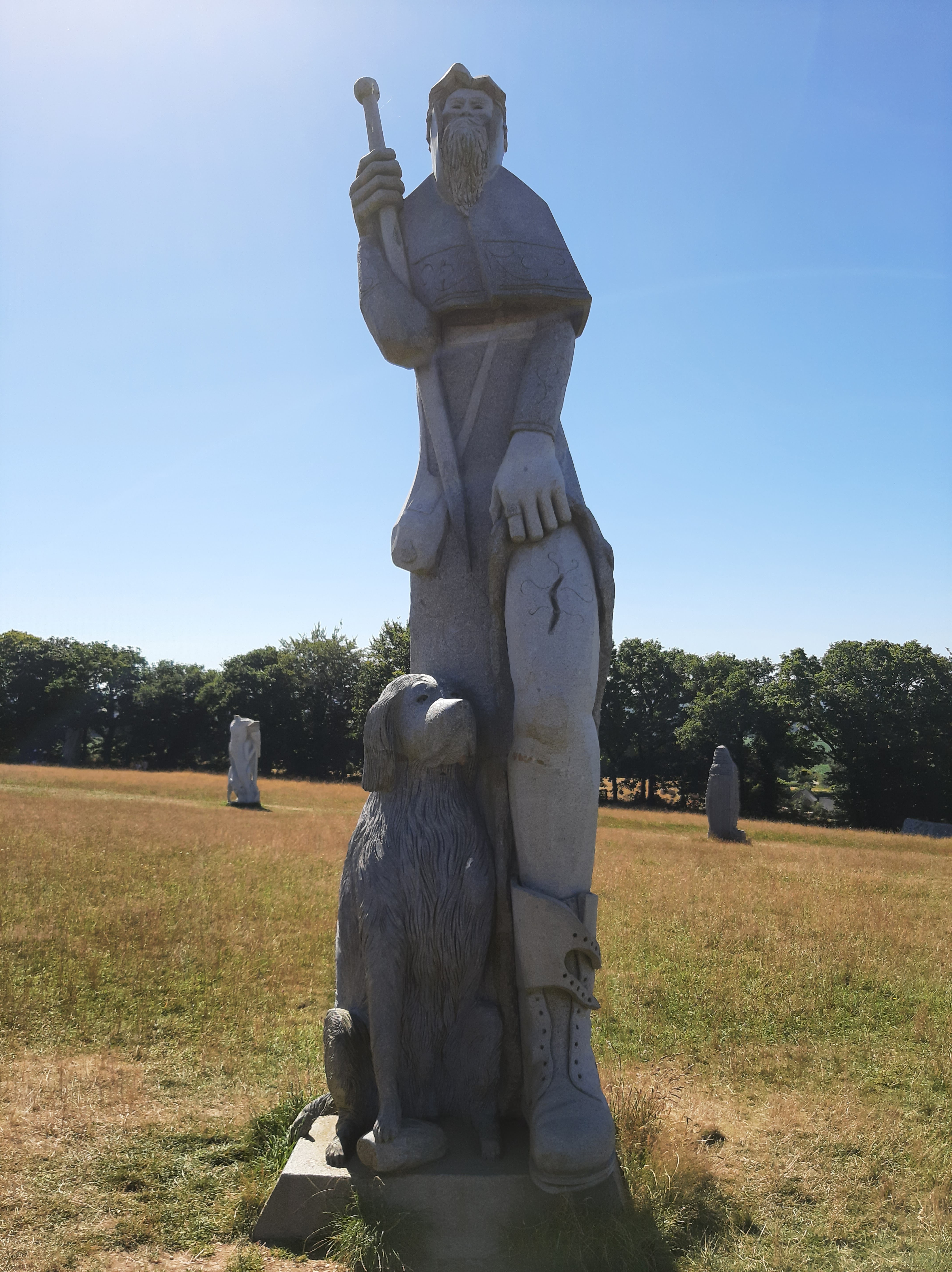 De Sainte-Anne à Saint-Yves, ils sont déjà nombreux les saints bretons à avoir leur statues dans la Vallée des Saints à Carnoët. A terme, ce site, où le granit breton est à l'honneur, devrait accueillir environ 1000 statues. Mi 2023, la vallée accueille 178 statues géantes. Des visites guidées sont organisées. Elles sont très intéressantes. Je vous conseille de choisir cette option, si vous en avez la possibilité. Il ne s'agit pas de faire le tour de toutes les statues. Le but est de vous donner les clés d'interprétation des attributs des statues : exemple le septre et le poisson pour Saint-Corentin, évêque de Quimper, qui pêchait et mangeait un morceau du même poisson miraculeux chaque jour. Un livret, vendu en kiosque, associé à une application audio-guide sur smartphone, permet d'avoir toutes les infos sur chaque saint. Un site exceptionnel, une idée très originale au service de la culture populaire bretonne. A voir absolument, si vous aimez la Bretagne et la culture bretonne. Espace pique-nique et petite restauration sur place. Grand parking à proximité.