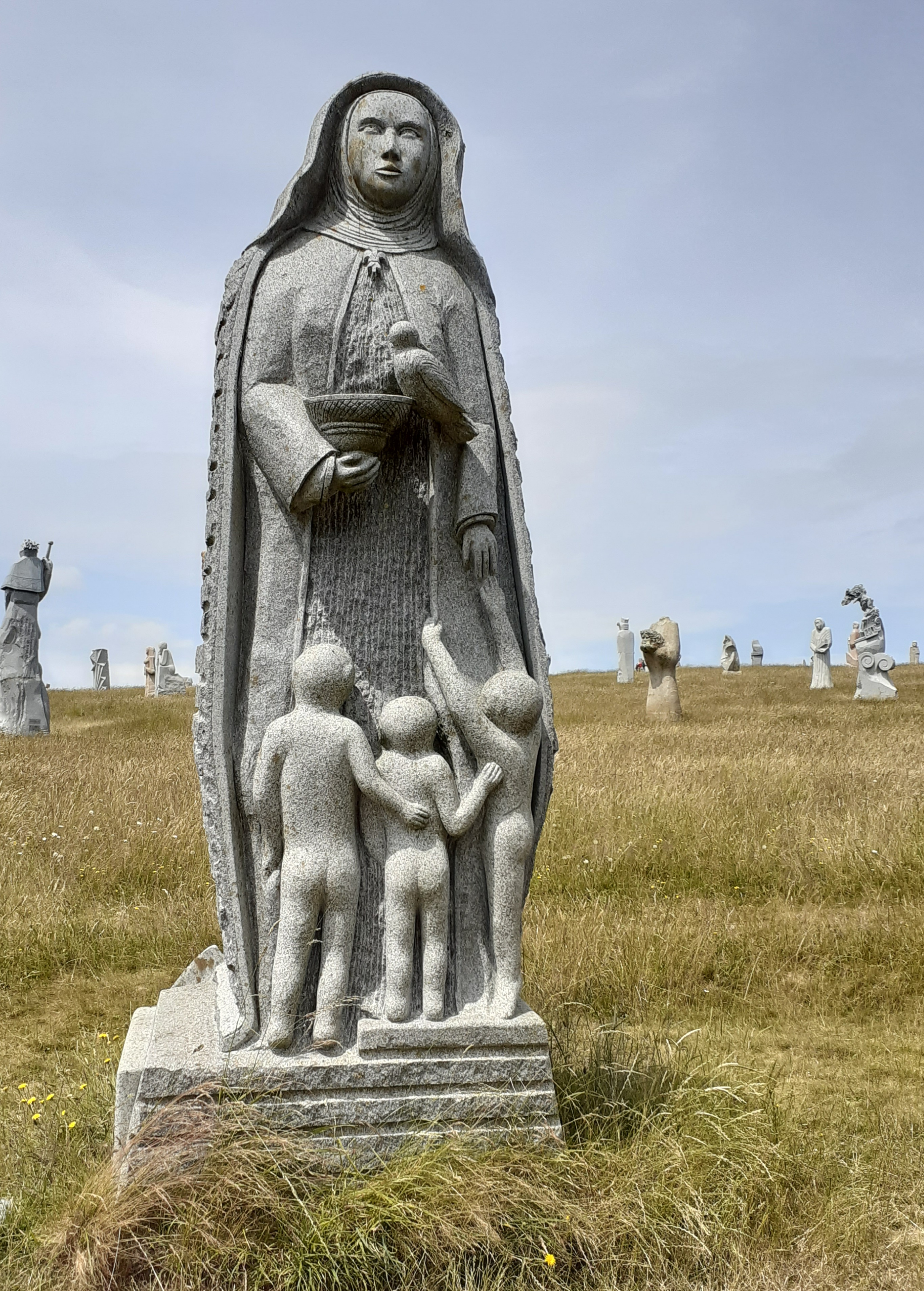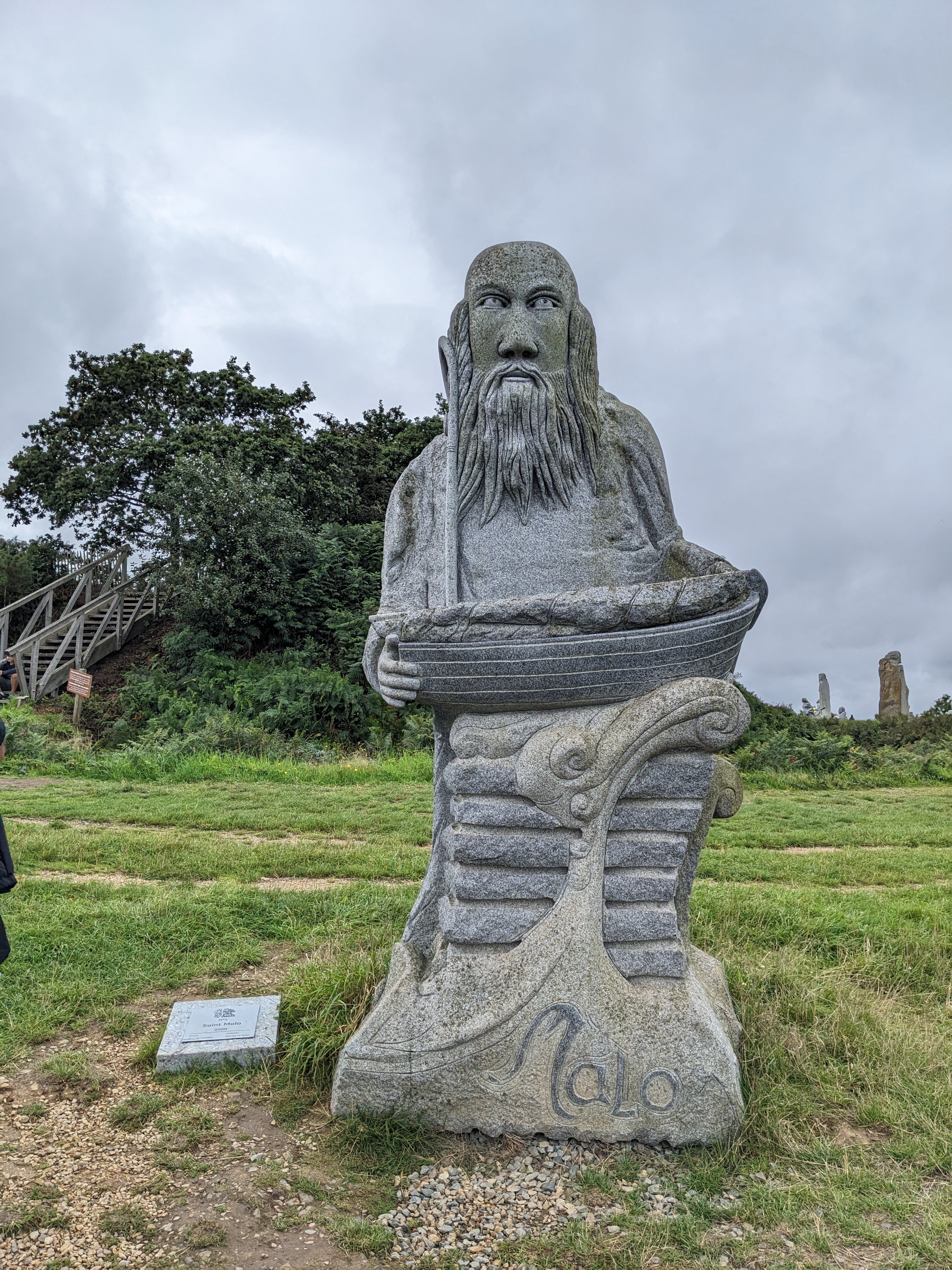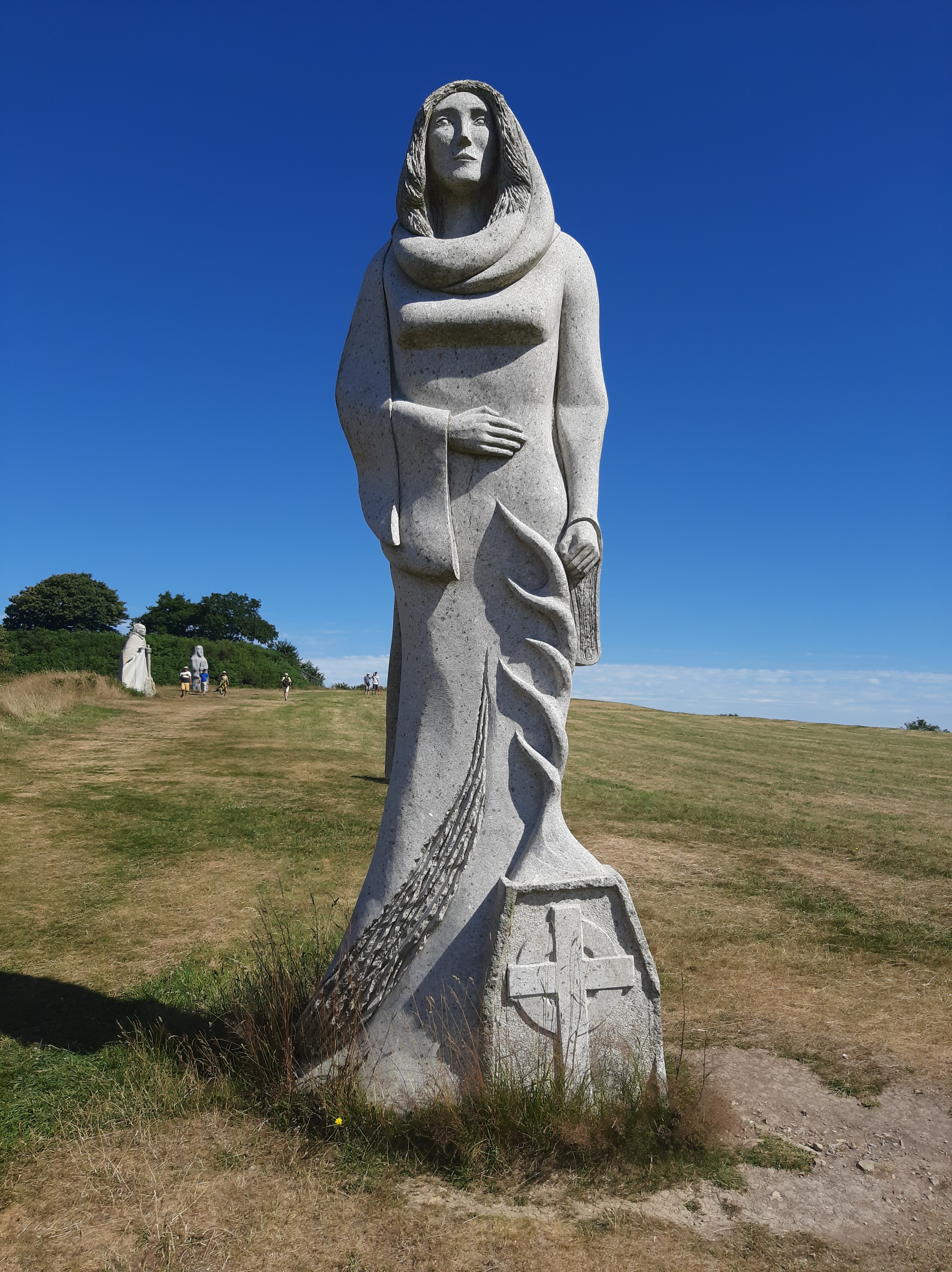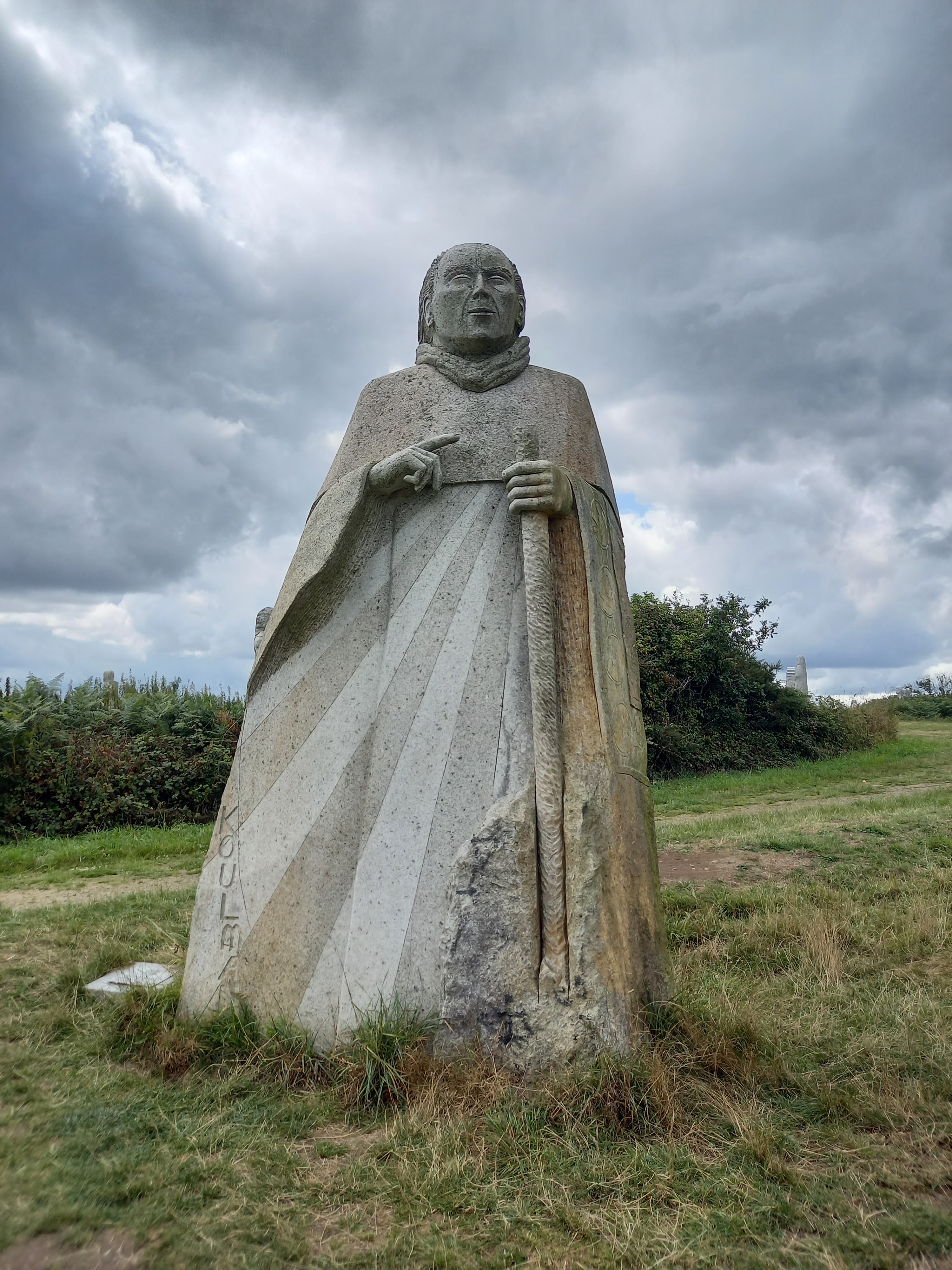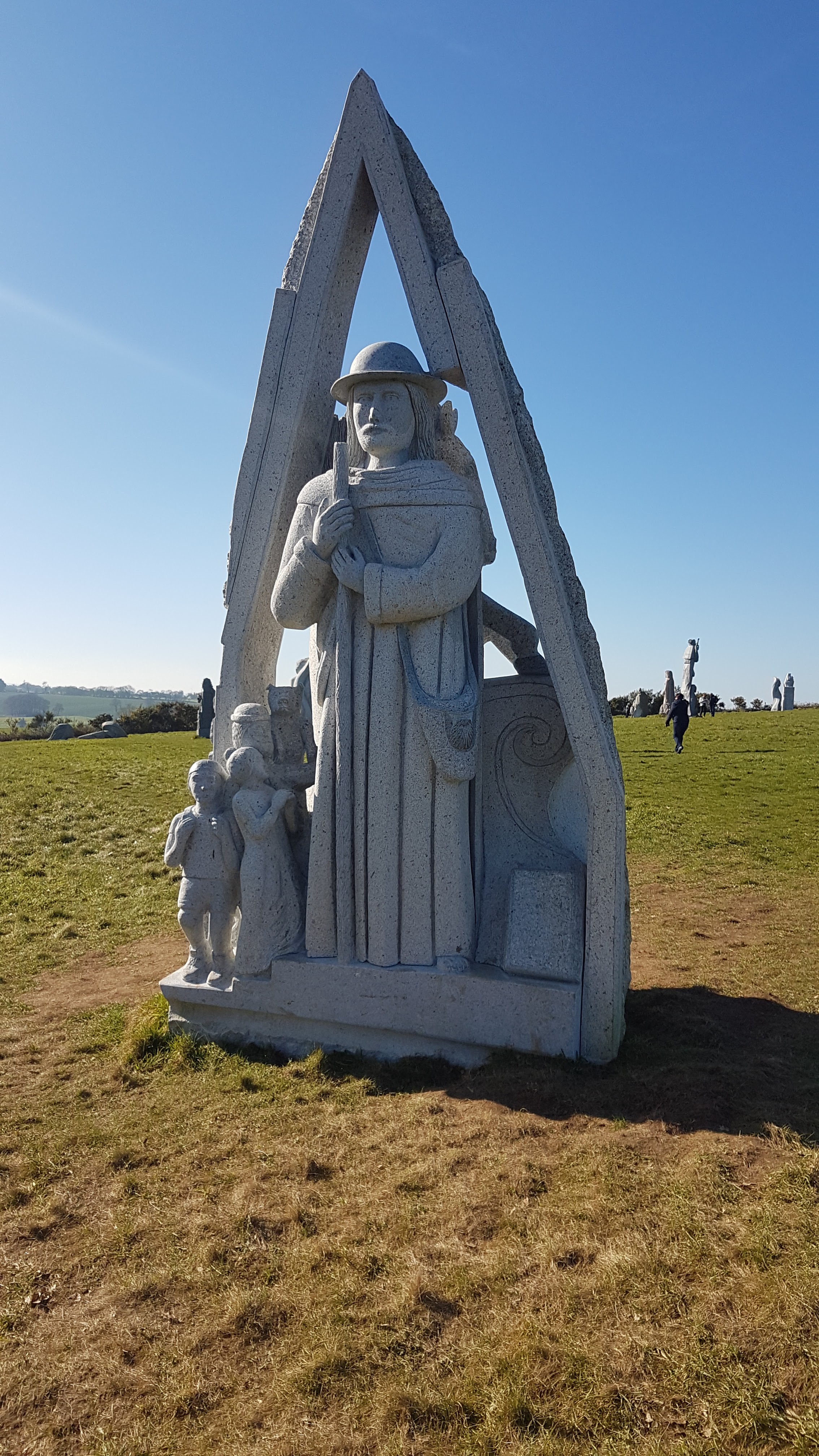 De Sainte-Anne à Saint-Yves, ils sont déjà nombreux les saints bretons à avoir leur statues dans la Vallée des Saints à Carnoët. A terme, ce site, où le granit breton est à l'honneur, devrait accueillir environ 1000 statues. Mi 2023, la vallée accueille 178 statues géantes. Des visites guidées sont organisées. Elles sont très intéressantes. Je vous conseille de choisir cette option, si vous en avez la possibilité. Il ne s'agit pas de faire le tour de toutes les statues. Le but est de vous donner les clés d'interprétation des attributs des statues : exemple le septre et le poisson pour Saint-Corentin, évêque de Quimper, qui pêchait et mangeait un morceau du même poisson miraculeux chaque jour. Un livret, vendu en kiosque, associé à une application audio-guide sur smartphone, permet d'avoir toutes les infos sur chaque saint. Un site exceptionnel, une idée très originale au service de la culture populaire bretonne. A voir absolument, si vous aimez la Bretagne et la culture bretonne. Espace pique-nique et petite restauration sur place. Grand parking à proximité.
