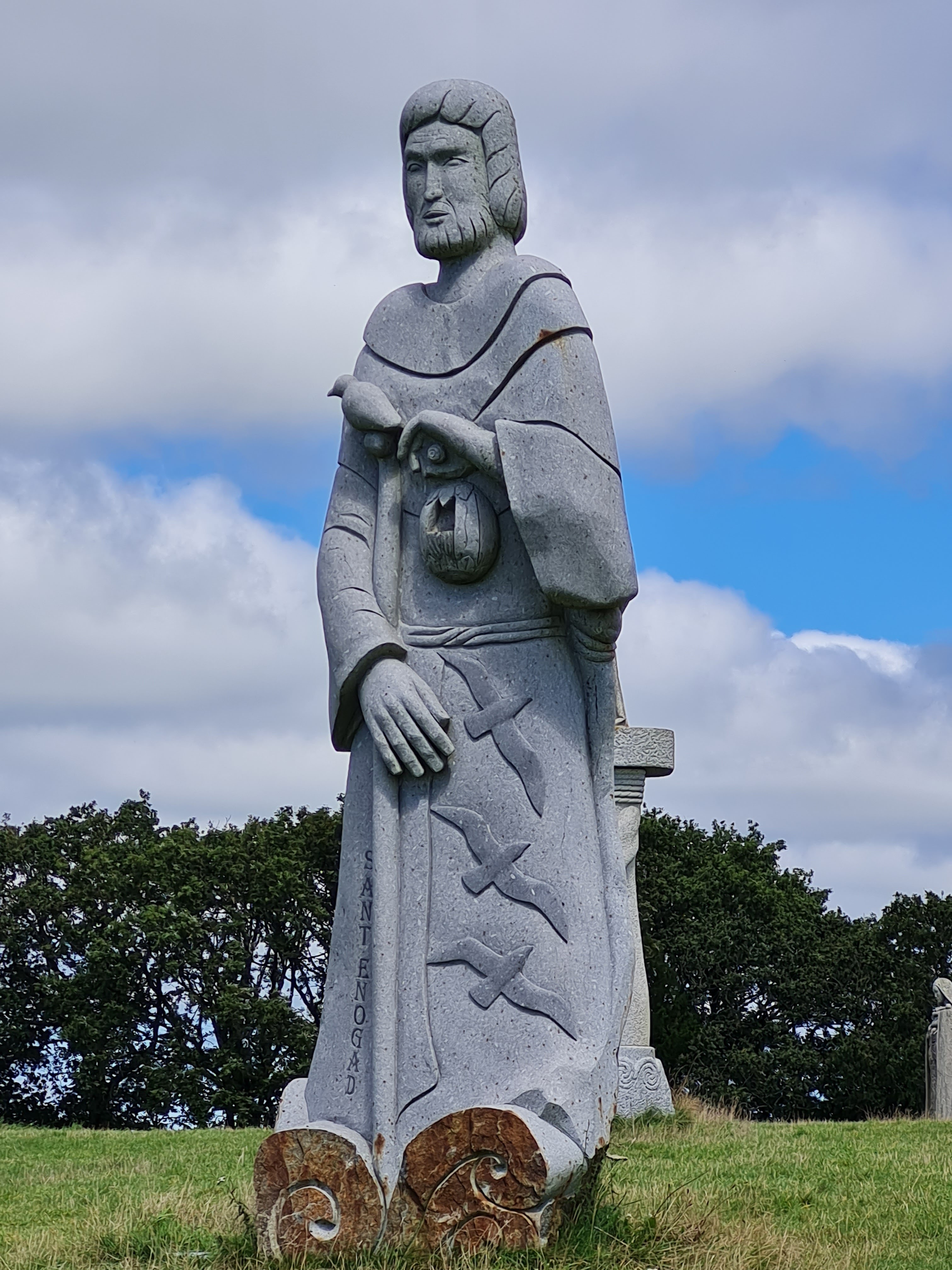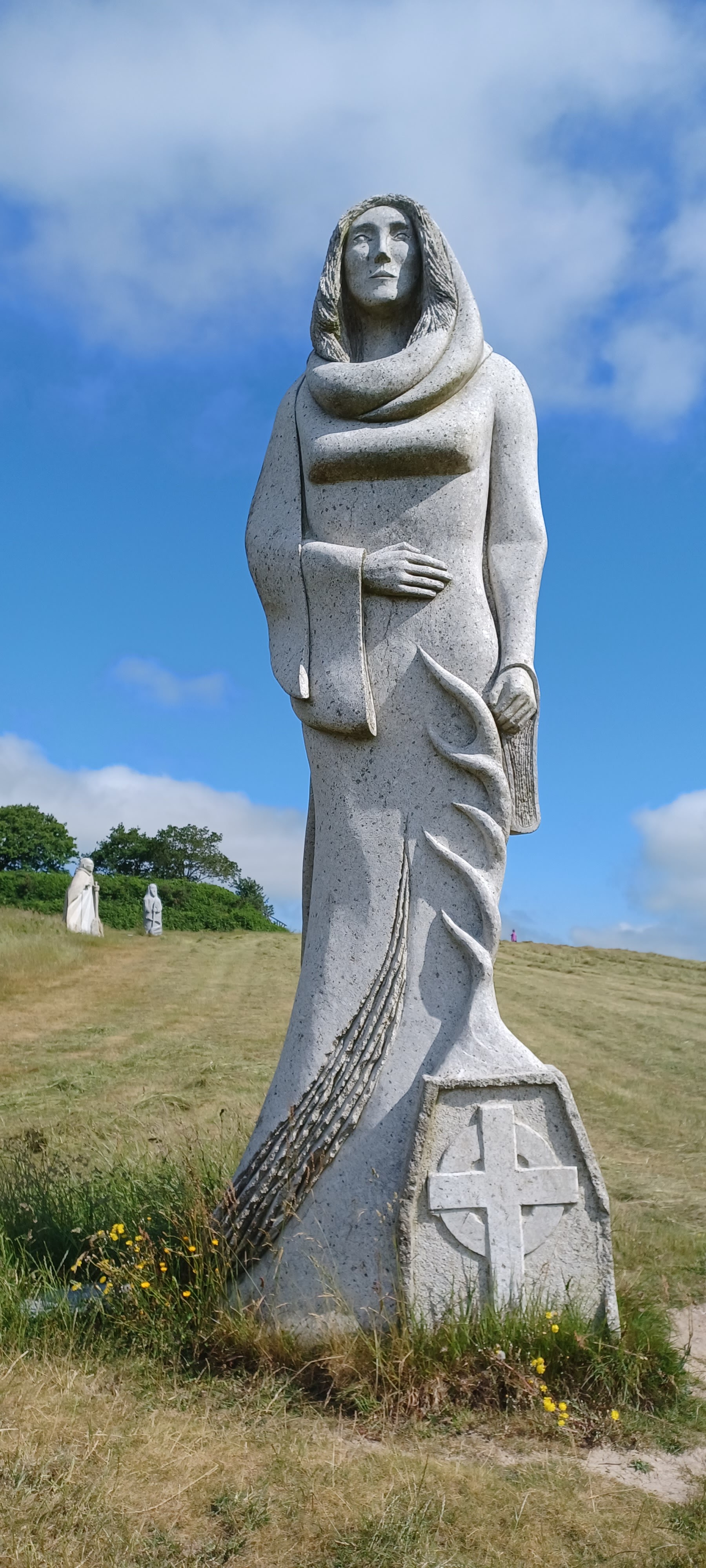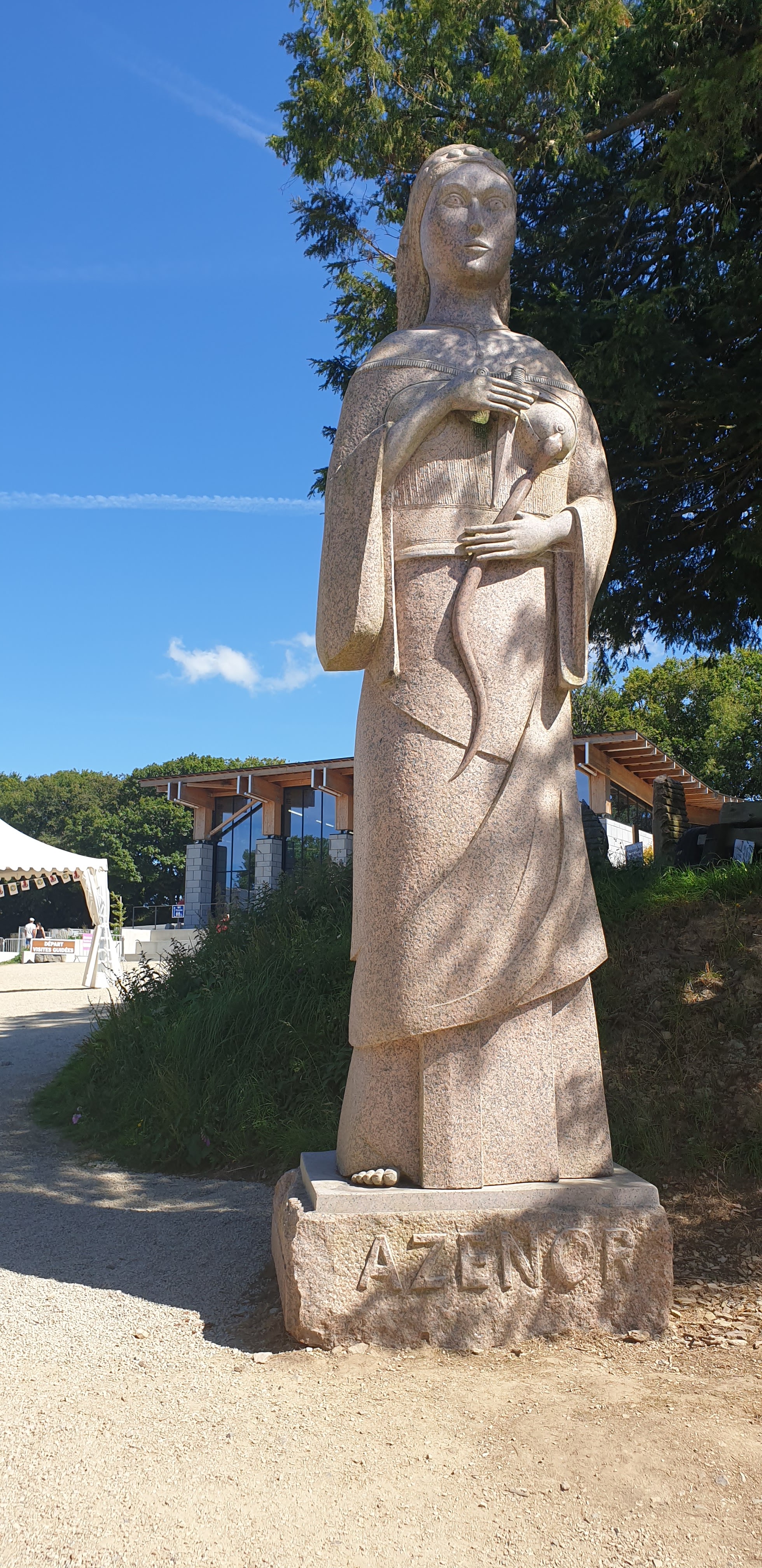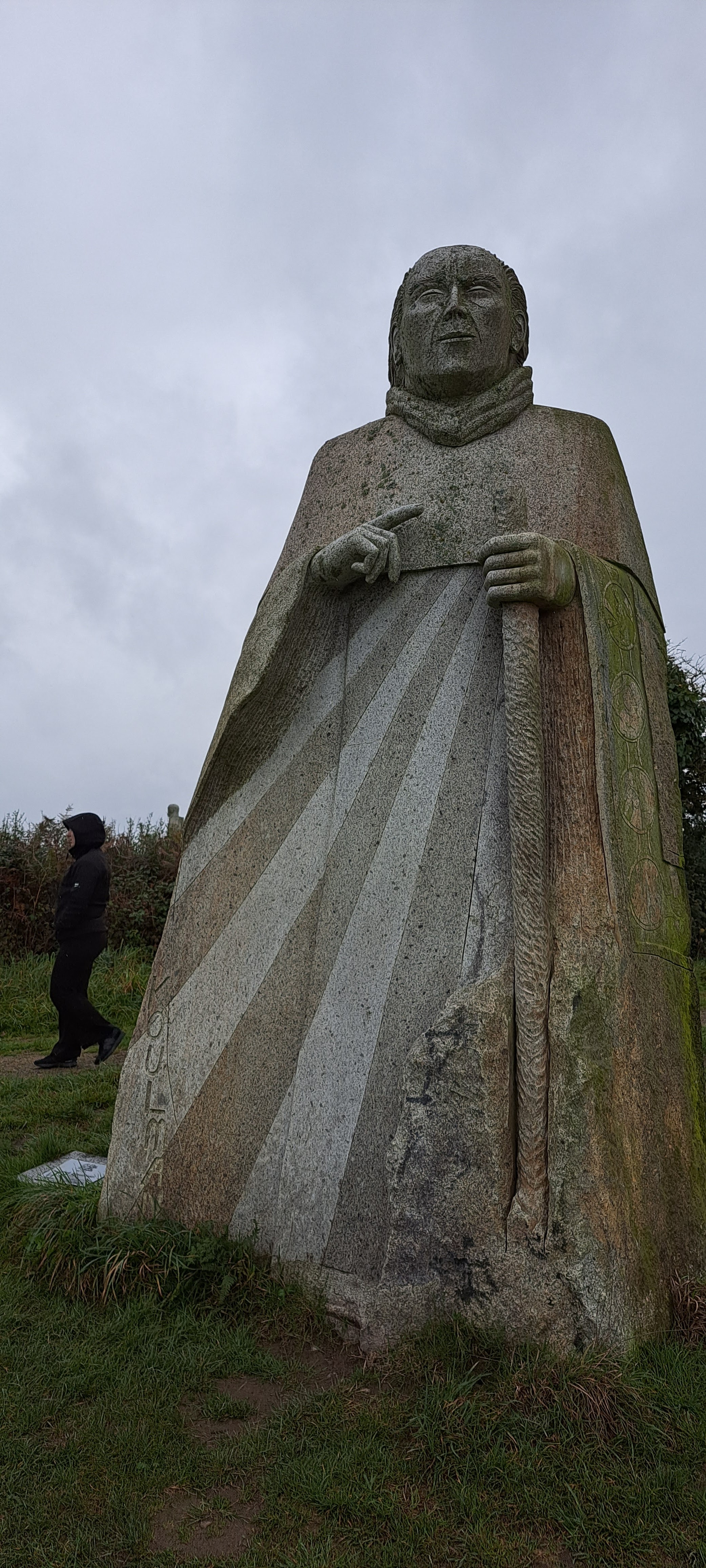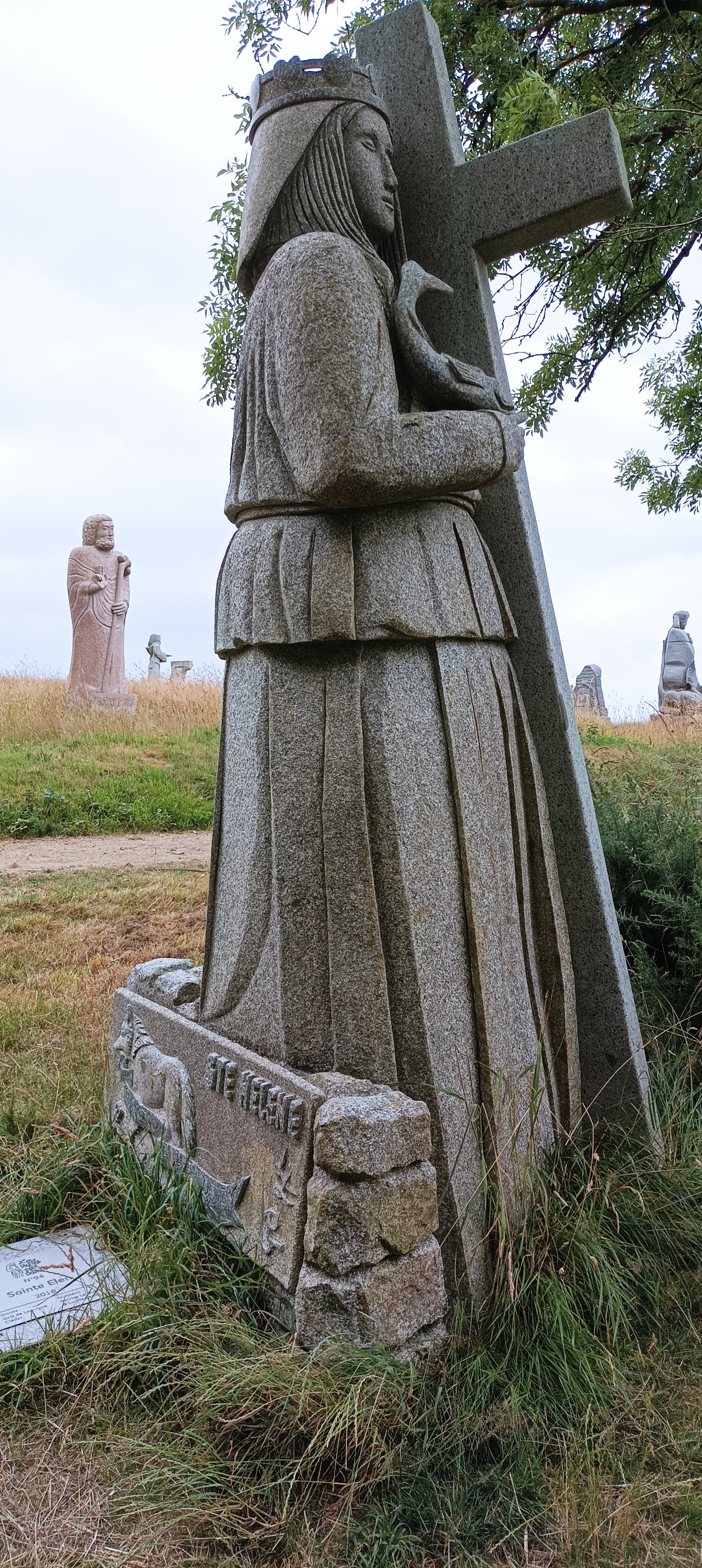 De Sainte-Anne à Saint-Yves, ils sont déjà nombreux les saints bretons à avoir leur statues dans la Vallée des Saints à Carnoët. A terme, ce site, où le granit breton est à l'honneur, devrait accueillir environ 1000 statues. Mi 2023, la vallée accueille 178 statues géantes. Des visites guidées sont organisées. Elles sont très intéressantes. Je vous conseille de choisir cette option, si vous en avez la possibilité. Il ne s'agit pas de faire le tour de toutes les statues. Le but est de vous donner les clés d'interprétation des attributs des statues : exemple le septre et le poisson pour Saint-Corentin, évêque de Quimper, qui pêchait et mangeait un morceau du même poisson miraculeux chaque jour. Un livret, vendu en kiosque, associé à une application audio-guide sur smartphone, permet d'avoir toutes les infos sur chaque saint. Un site exceptionnel, une idée très originale au service de la culture populaire bretonne. A voir absolument, si vous aimez la Bretagne et la culture bretonne. Espace pique-nique et petite restauration sur place. Grand parking à proximité.