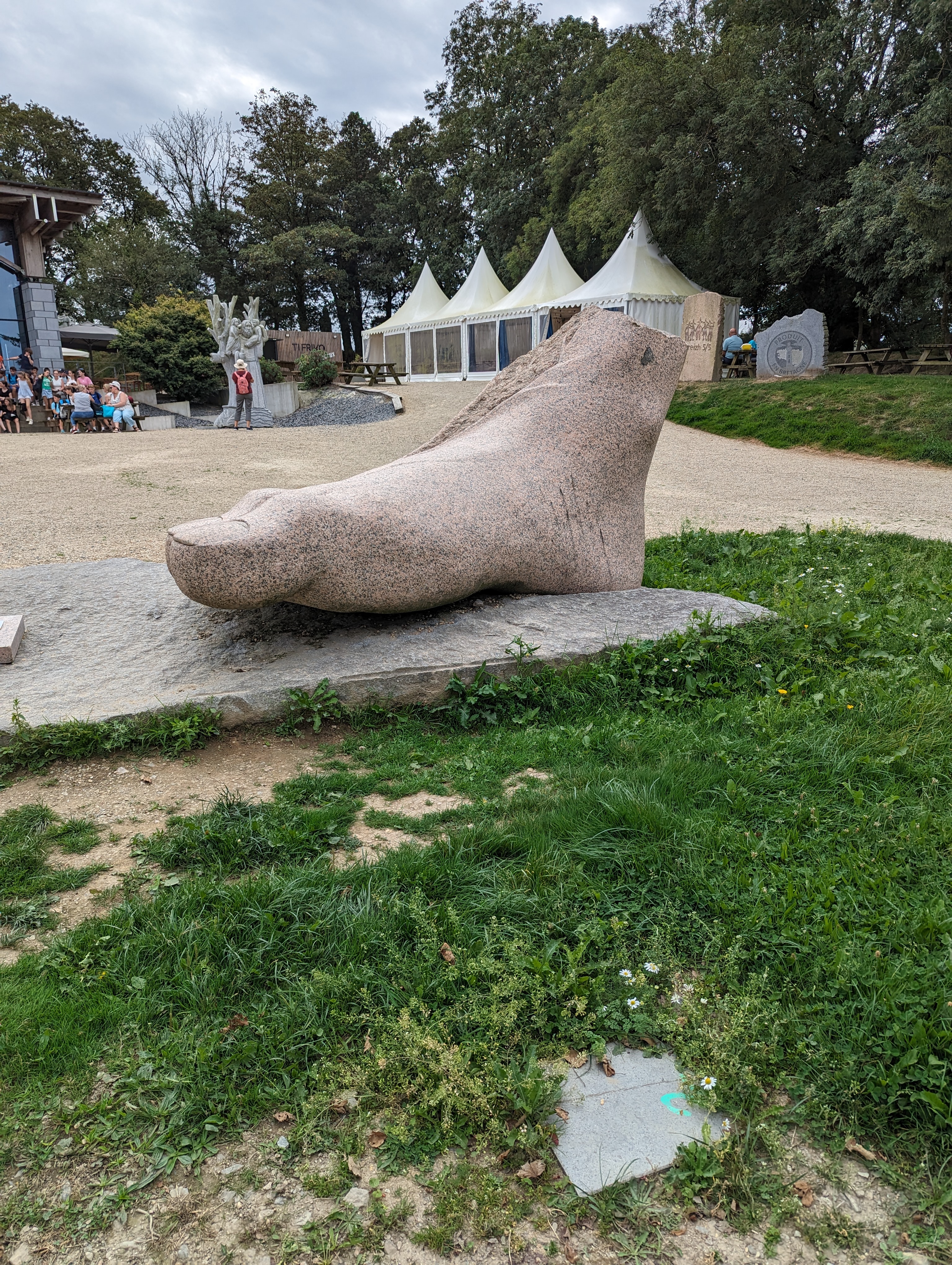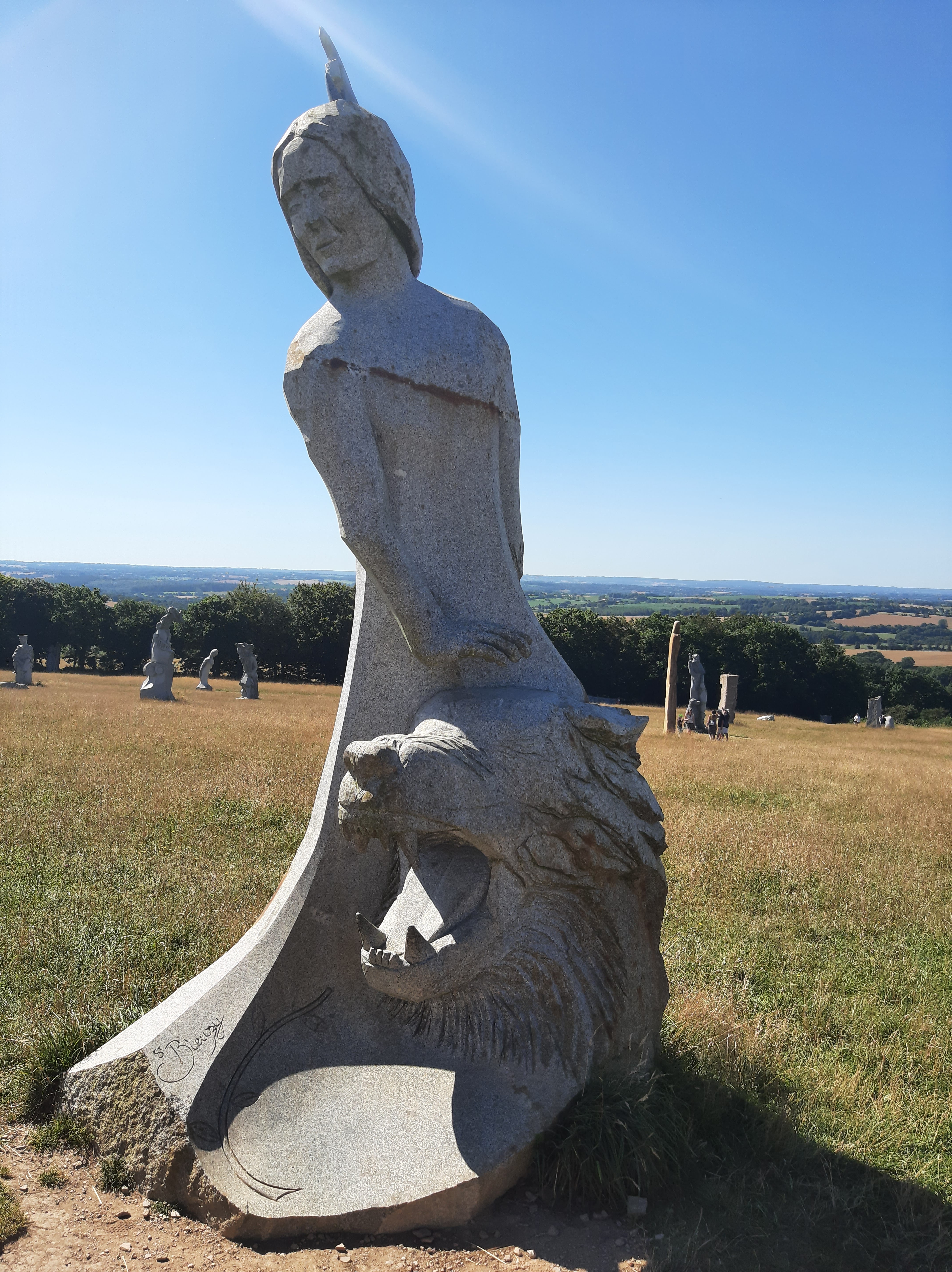 Un très bel endroit à découvrir, original et grandiose avec ses 150 statues colossales de granit (entre 3 et 6,50m !) qui dégagent une belle énergie ! Le site, autour d'une motte féodale, est vaste et surplombe la vallée avec une jolie vue à 360°. Bravo à tous ces artistes qui viennent en résidence durant un mois afin de réaliser leurs sculptures et participer à cette magnifique œuvre collective et pérenne dans le temps ! La visite peut être gratuite (parking 6€) mais il est proposé une visite guidée de 45 min (6,50€), très intéressante, qui permet de comprendre l'origine du projet et découvrir quelques légendes. Possibilité de pic nic sur place (ou baraque à frites), ne pas hésiter à prévoir plusieurs heures pour visiter ce lieu !