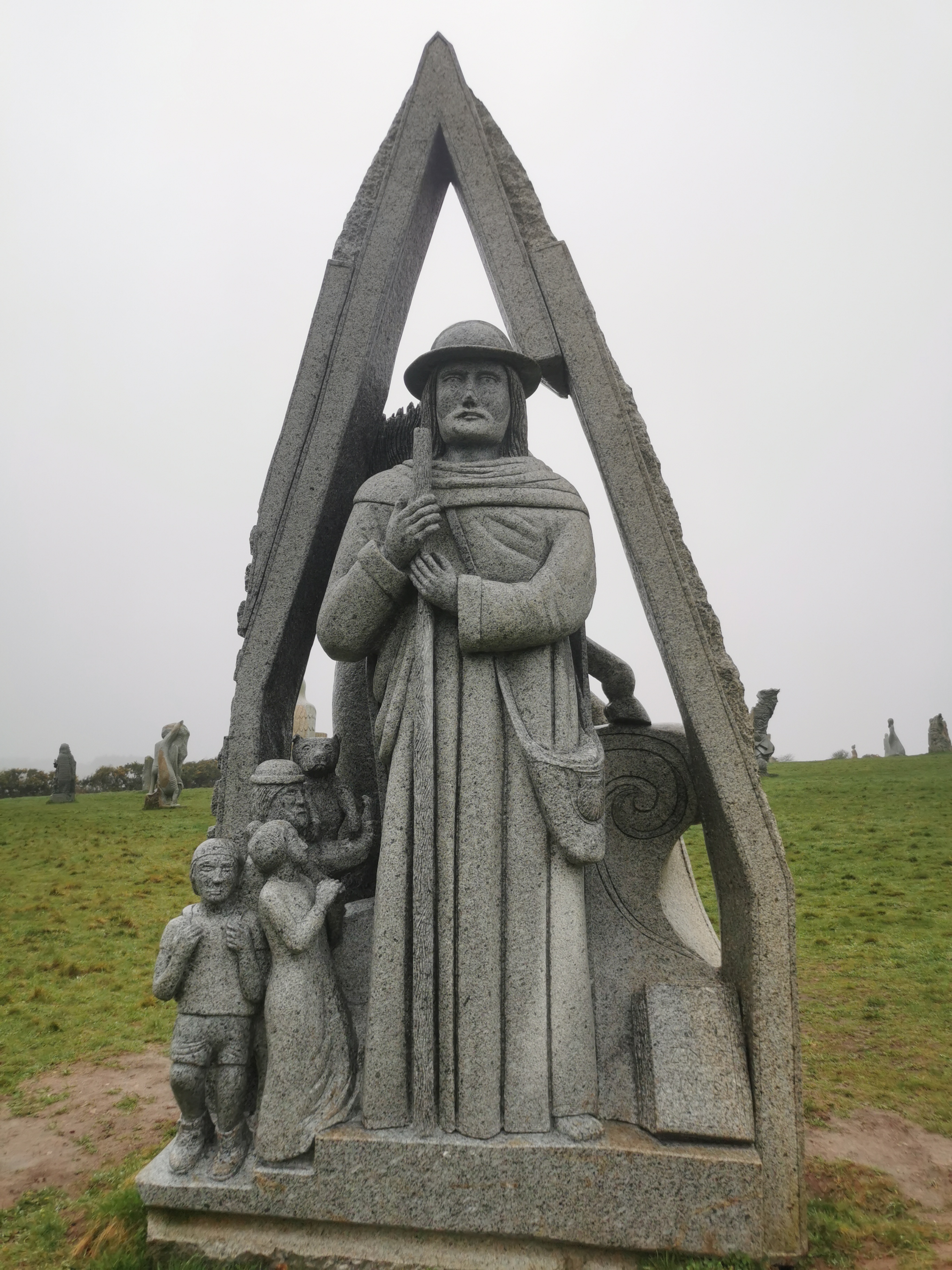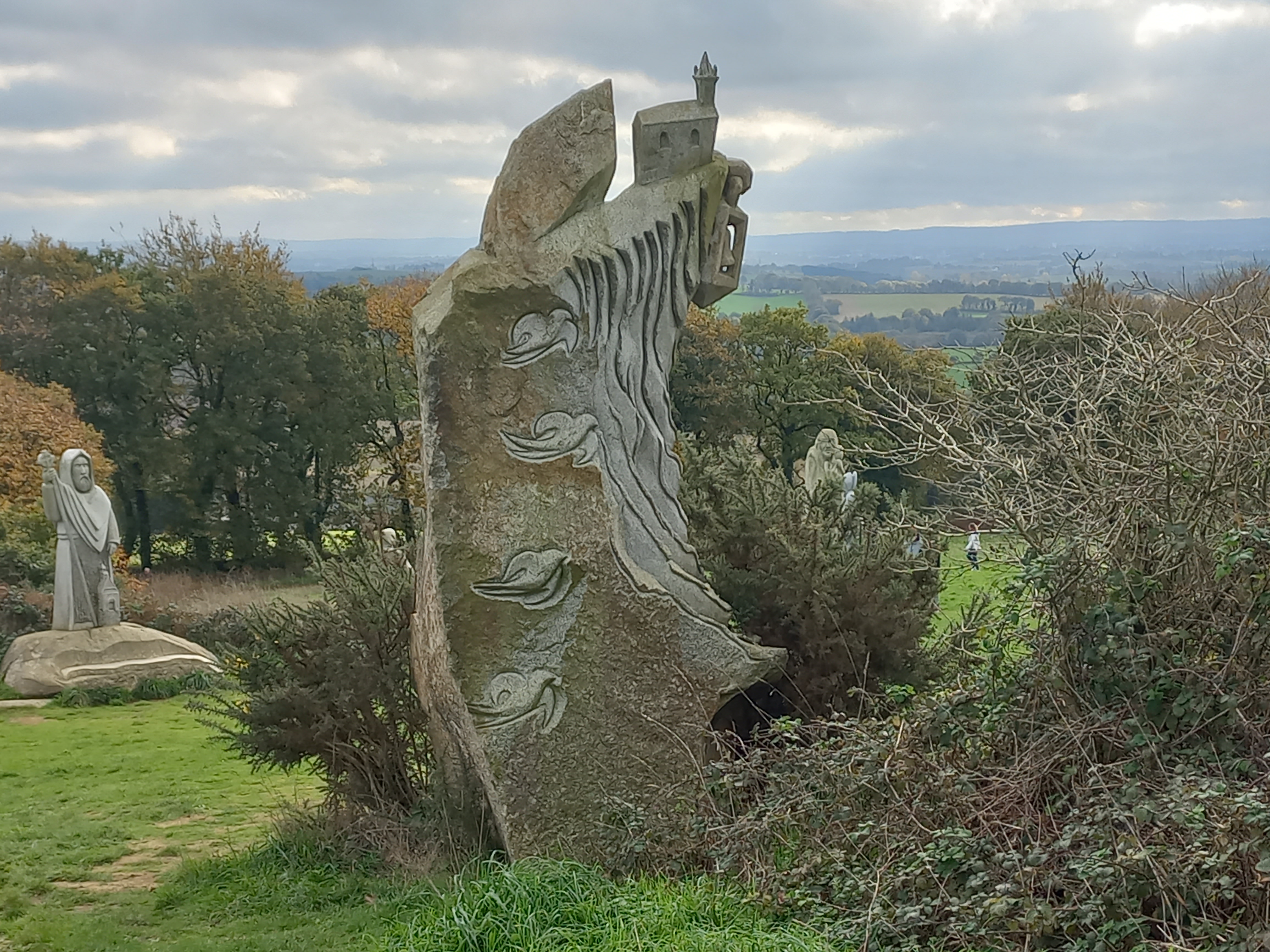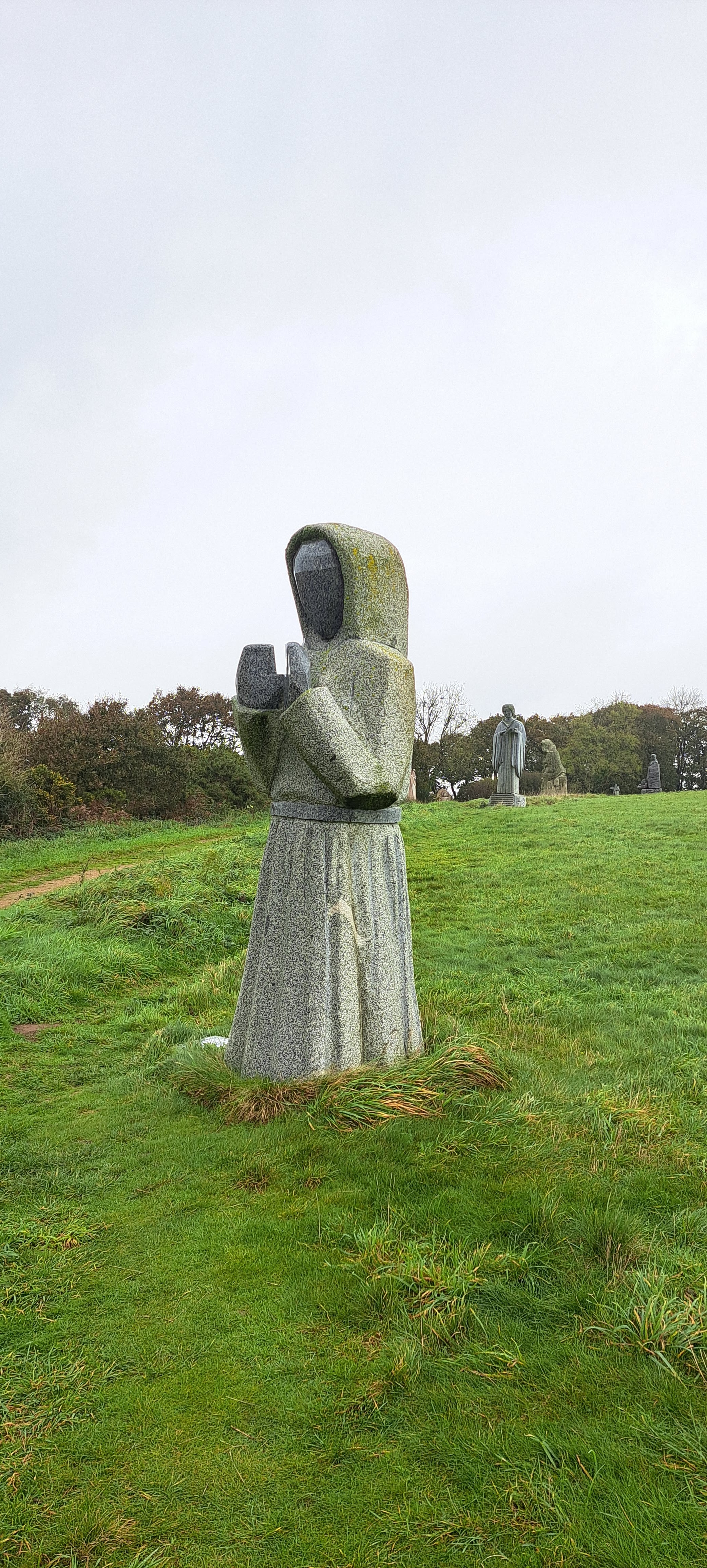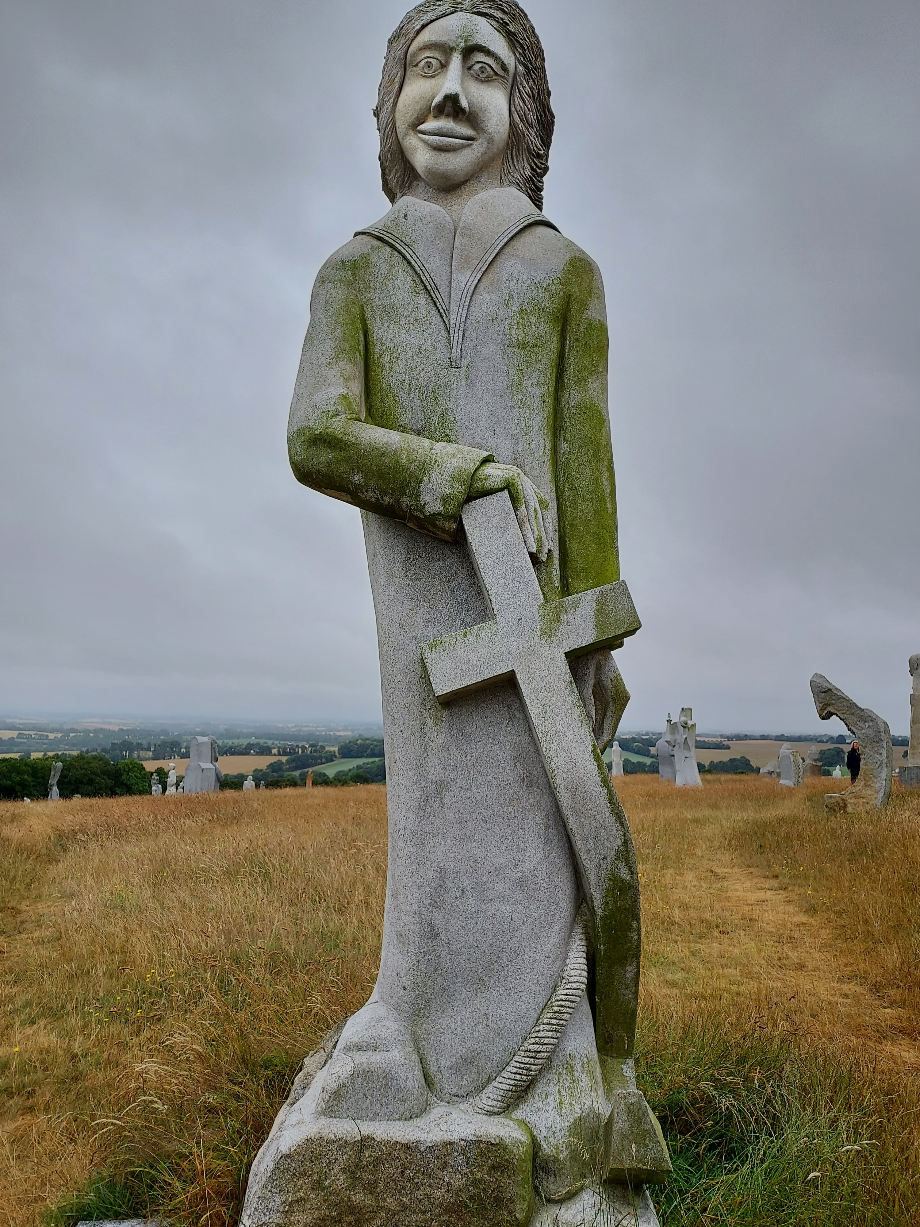 La « Vallée des Saints » est l'un des projets les plus impressionnants mis en œuvre en Bretagne. En 15 ans, plus de 160 sculptures sont apparues sur la colline, réalisées par des artistes à partir de différents types de marbre. Des figures immenses - de 4 à 6 mètres de haut - incarnent l'apparence des saints de Bretagne. Il y a plus de 1 000 saints au total, et l'idée du projet est de les immortaliser dans la pierre. L'entrée est gratuite, contrairement au parking, où le tarif est de 6 euros. Toutes les sculptures sont créées grâce aux dons de mécènes. Il y a des œuvres très intéressantes. Nos préférées sont les sculptures Kito.