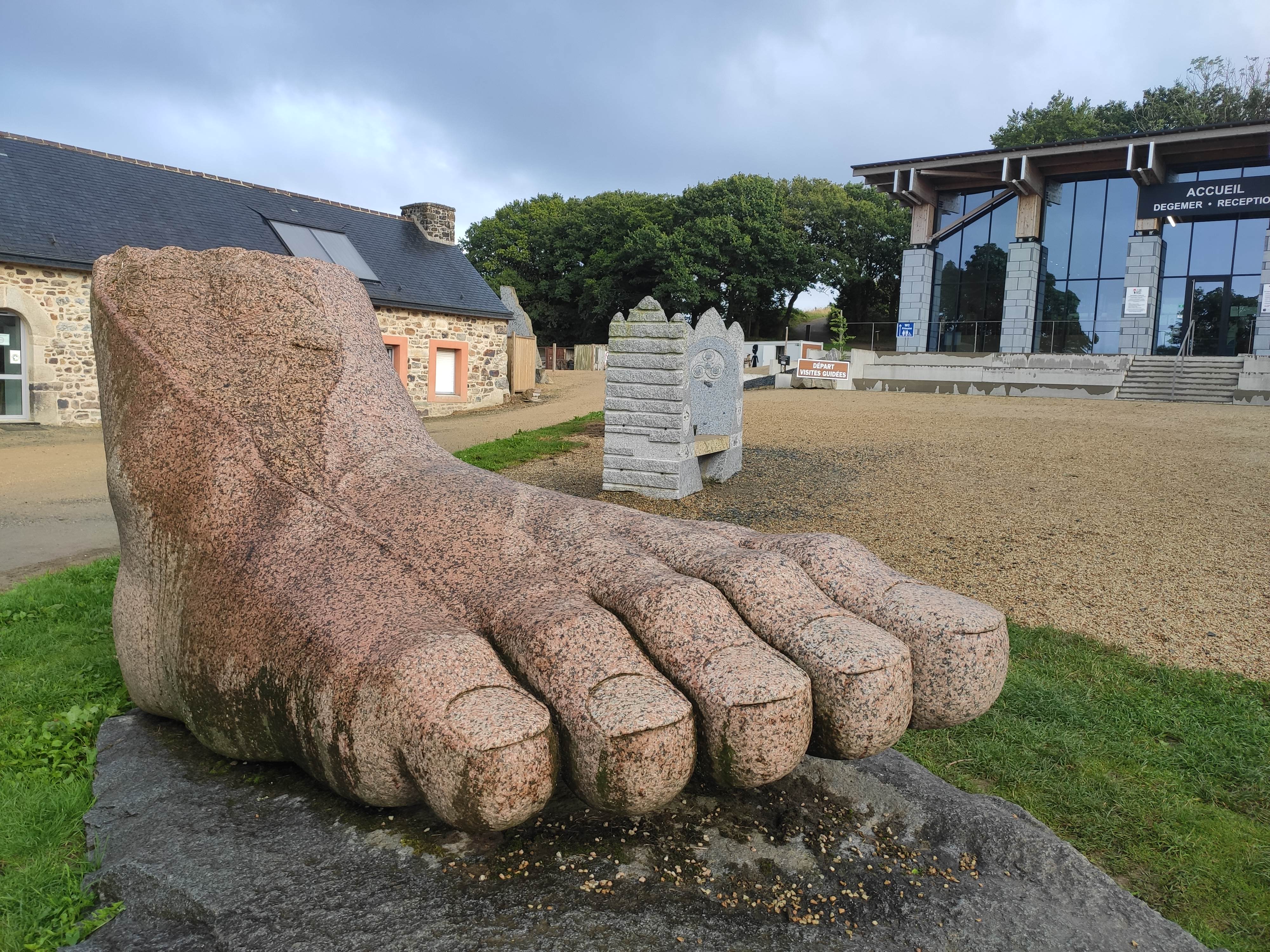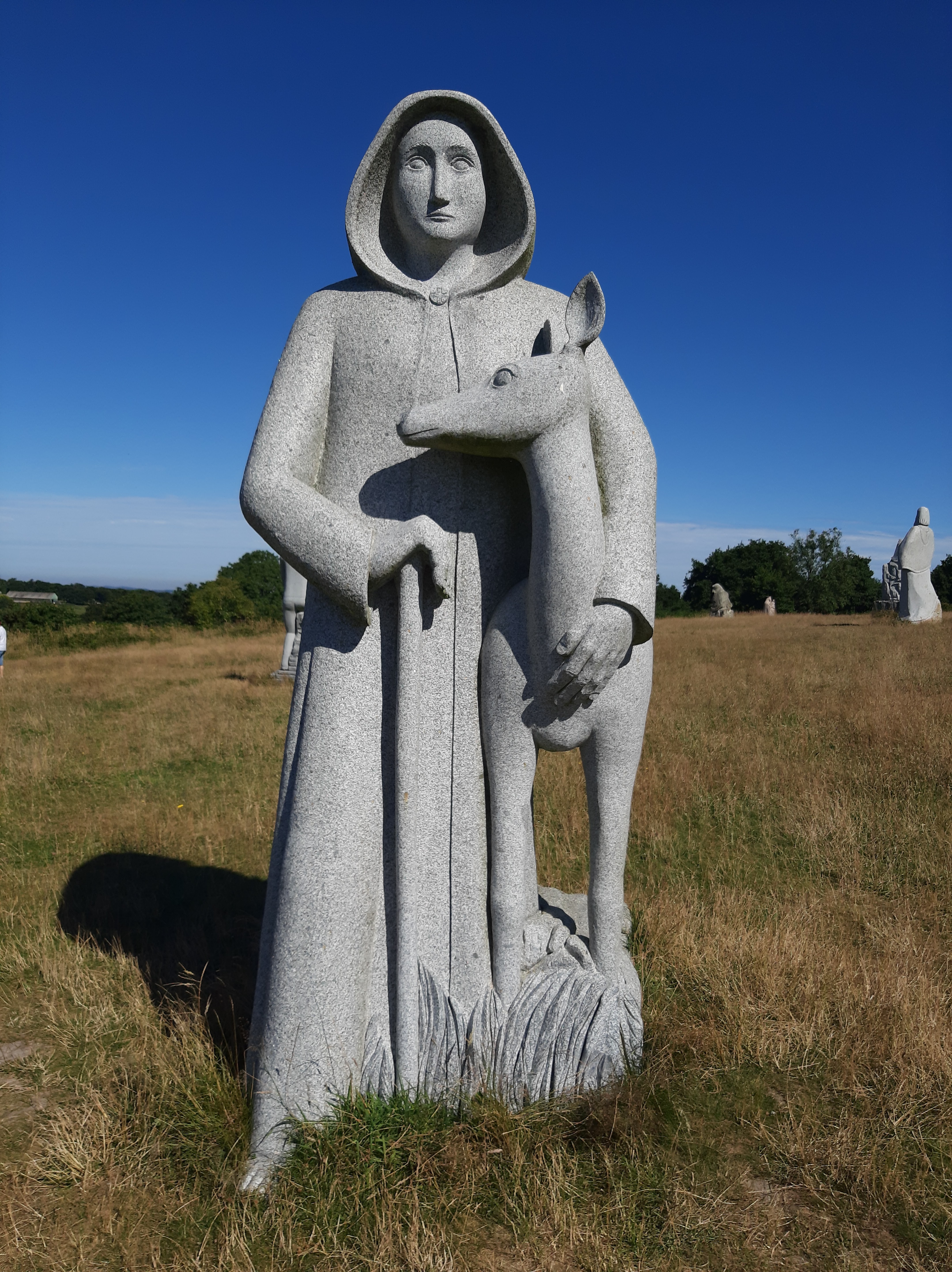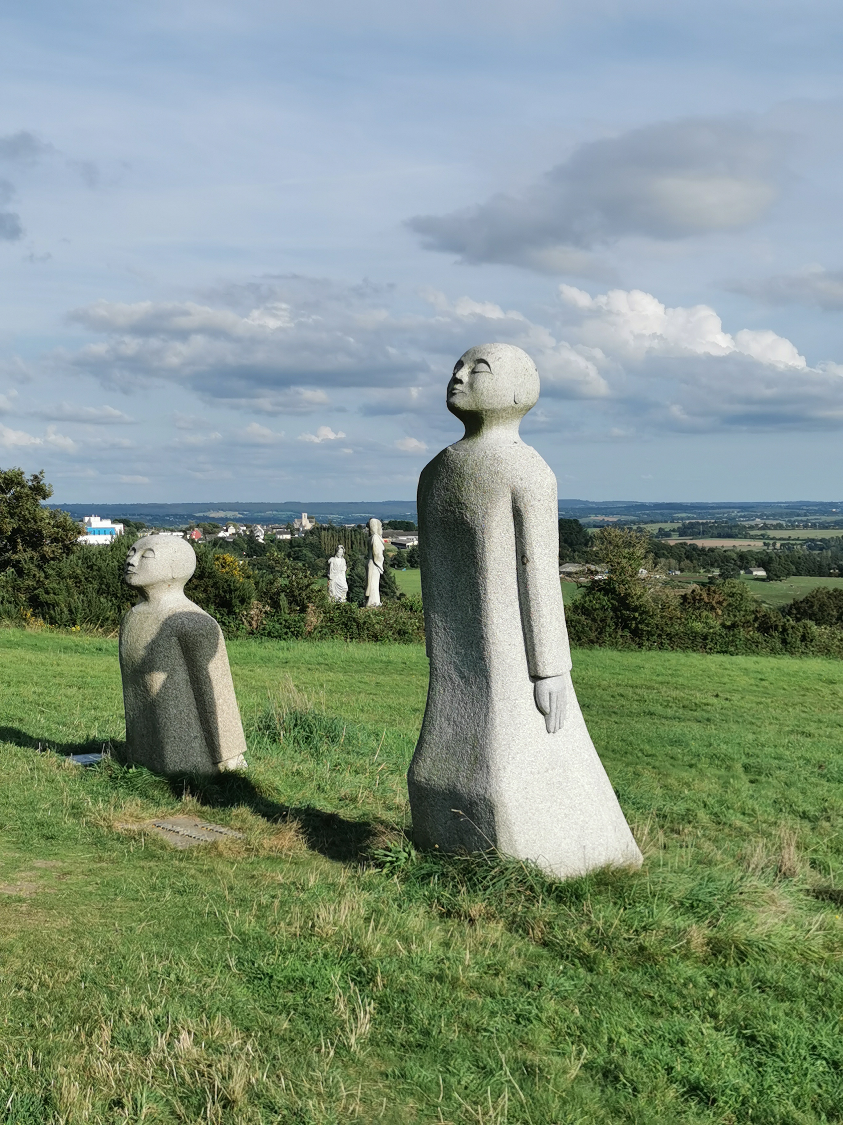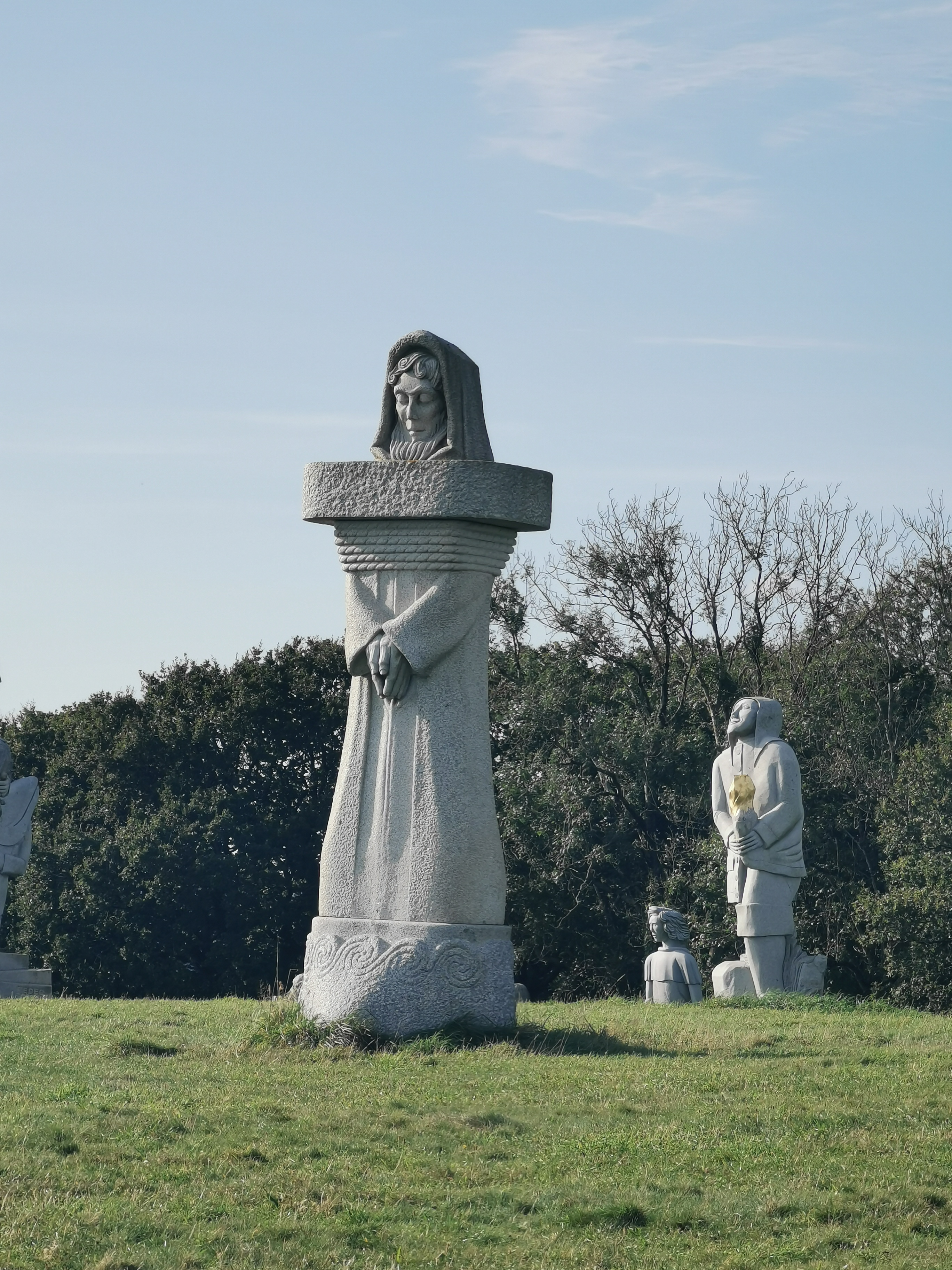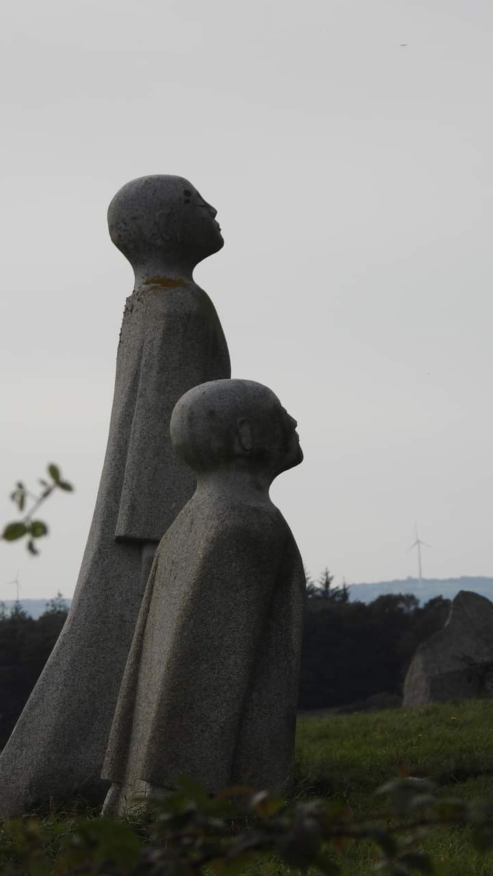 La « Vallée des Saints » est l'un des projets les plus impressionnants mis en œuvre en Bretagne. En 15 ans, plus de 160 sculptures sont apparues sur la colline, réalisées par des artistes à partir de différents types de marbre. Des figures immenses - de 4 à 6 mètres de haut - incarnent l'apparence des saints de Bretagne. Il y a plus de 1 000 saints au total, et l'idée du projet est de les immortaliser dans la pierre. L'entrée est gratuite, contrairement au parking, où le tarif est de 6 euros. Toutes les sculptures sont créées grâce aux dons de mécènes. Il y a des œuvres très intéressantes. Nos préférées sont les sculptures Kito.