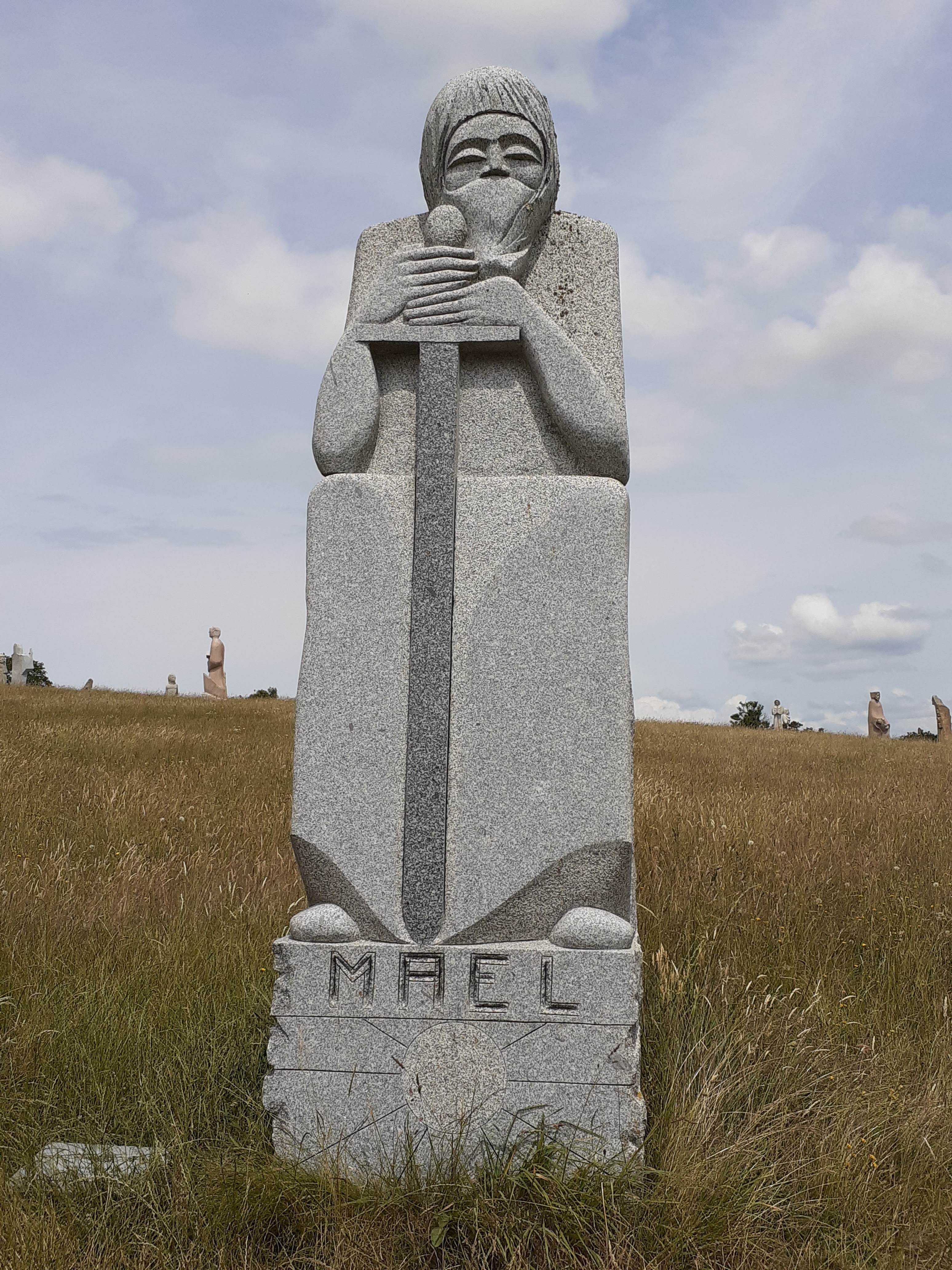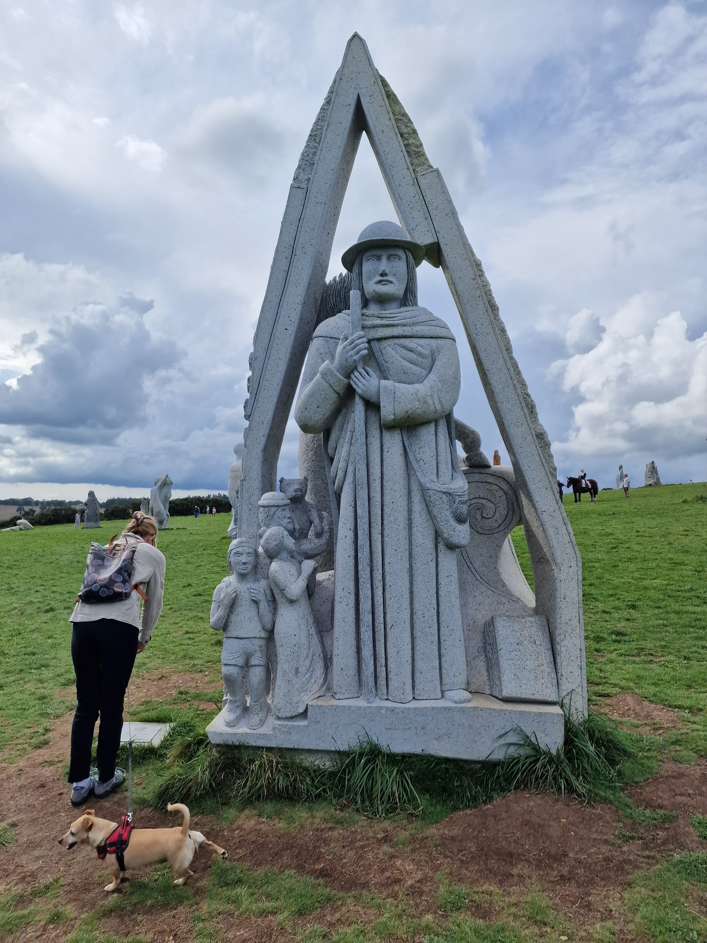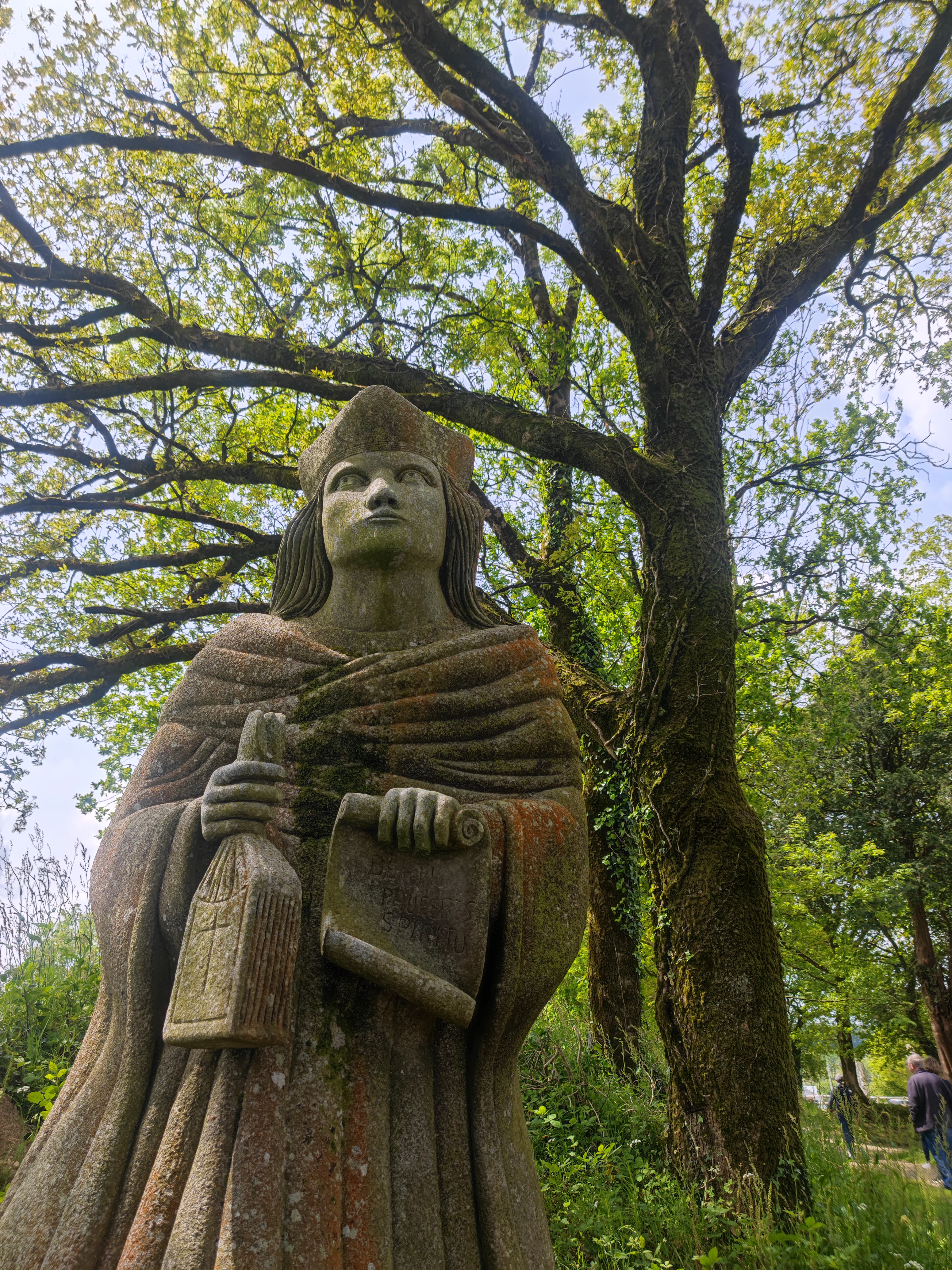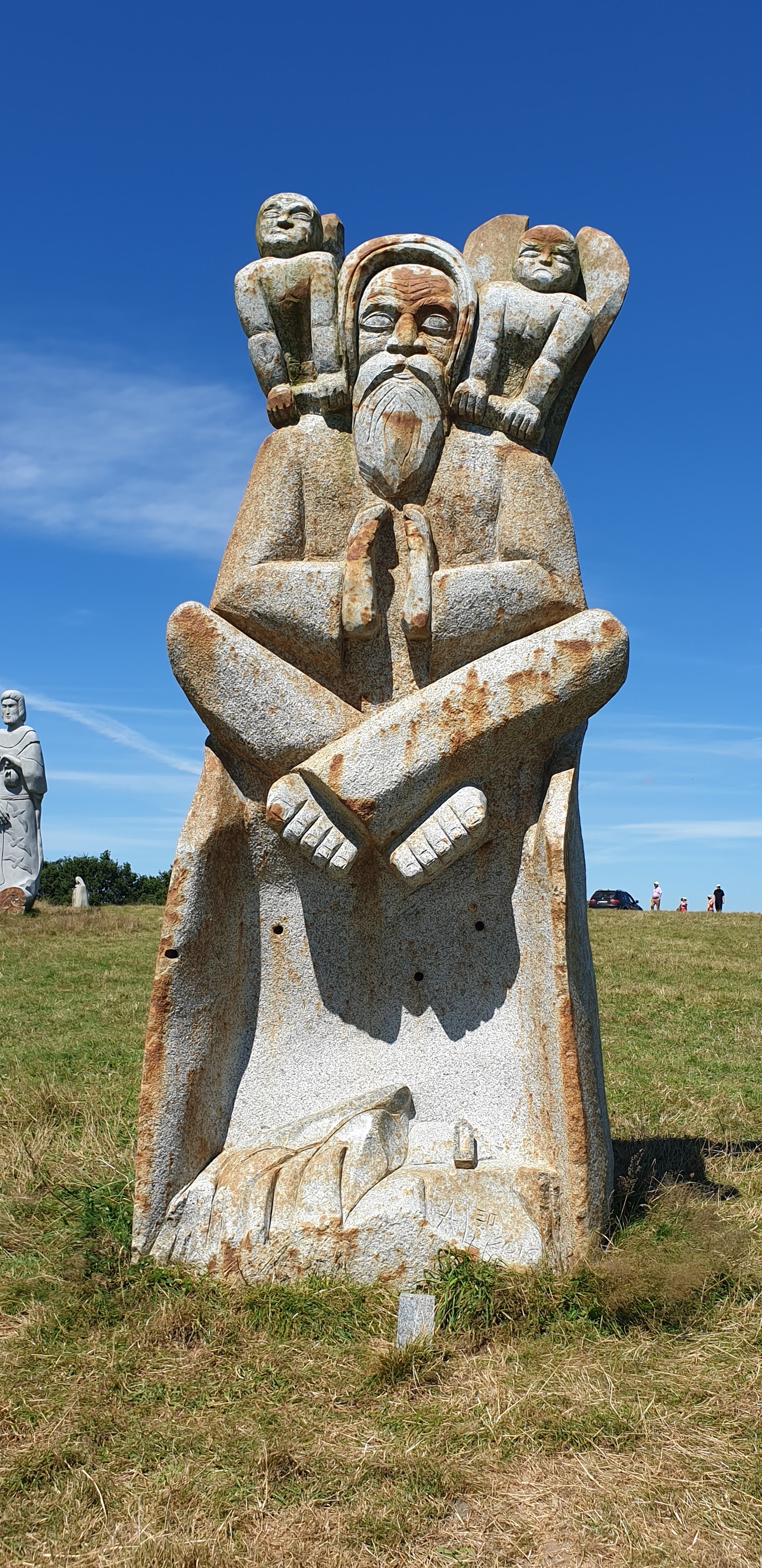 La « Vallée des Saints » est l'un des projets les plus impressionnants mis en œuvre en Bretagne. En 15 ans, plus de 160 sculptures sont apparues sur la colline, réalisées par des artistes à partir de différents types de marbre. Des figures immenses - de 4 à 6 mètres de haut - incarnent l'apparence des saints de Bretagne. Il y a plus de 1 000 saints au total, et l'idée du projet est de les immortaliser dans la pierre. L'entrée est gratuite, contrairement au parking, où le tarif est de 6 euros. Toutes les sculptures sont créées grâce aux dons de mécènes. Il y a des œuvres très intéressantes. Nos préférées sont les sculptures Kito.