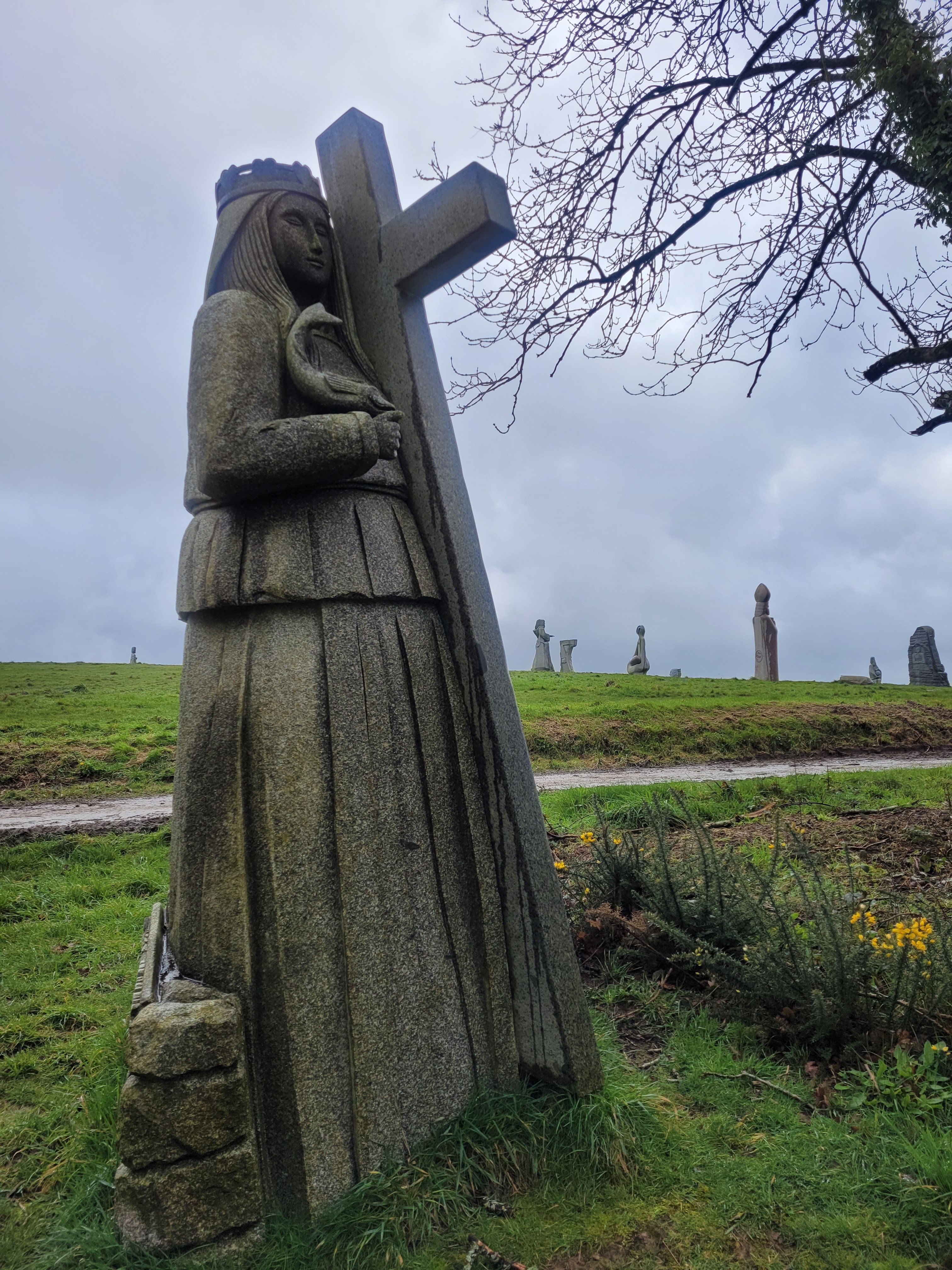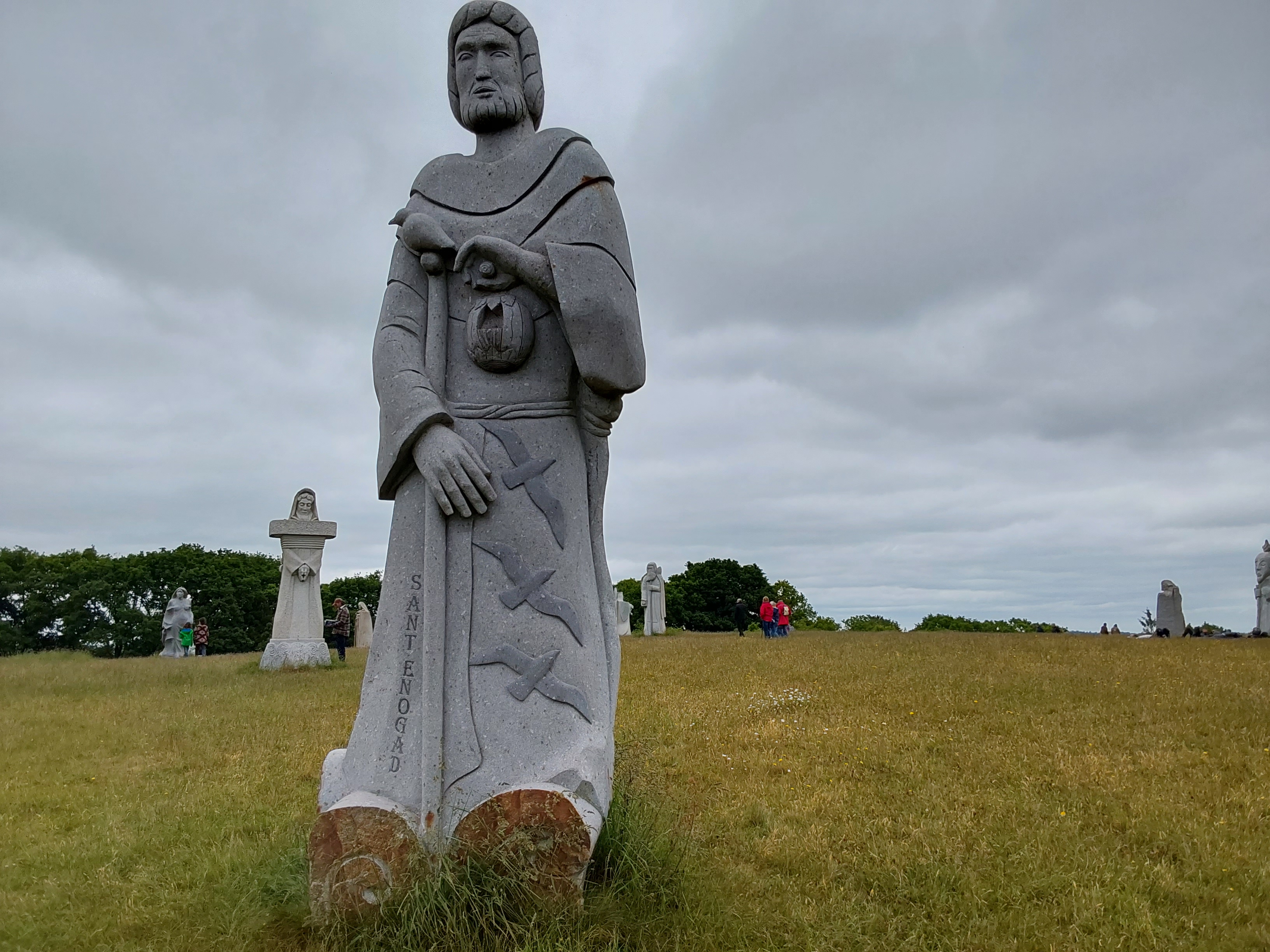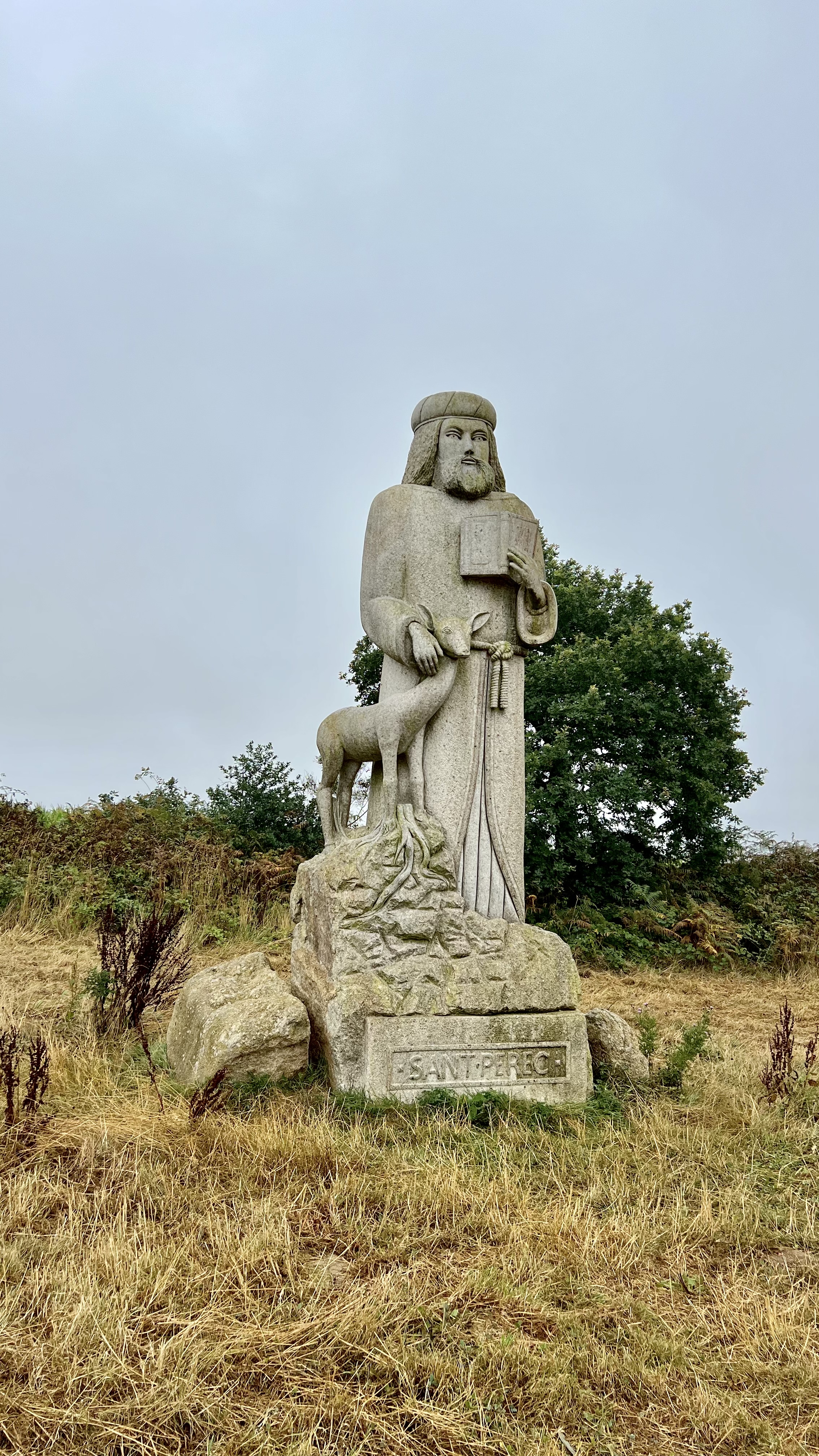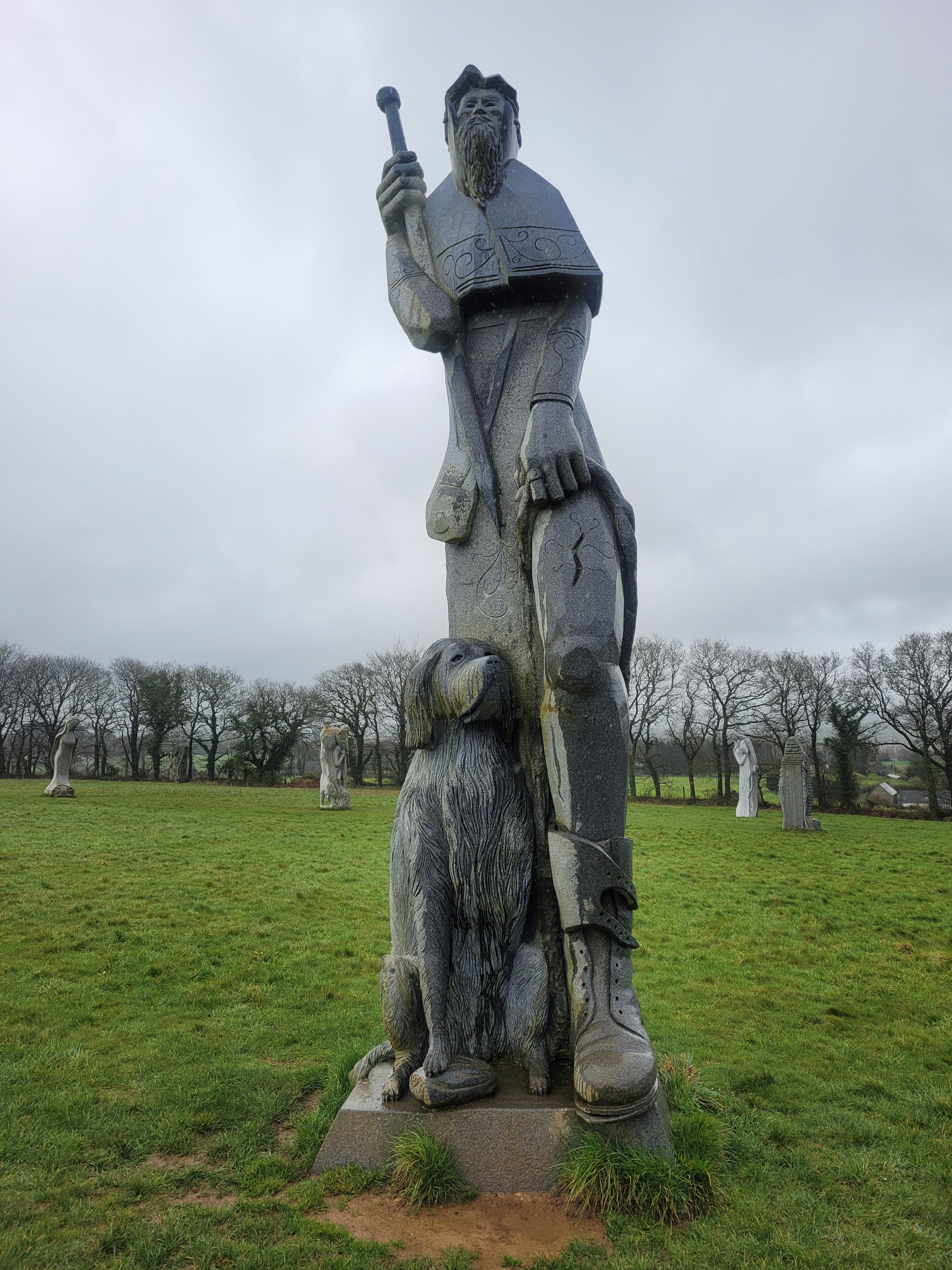 La « Vallée des Saints » est l'un des projets les plus impressionnants mis en œuvre en Bretagne. En 15 ans, plus de 160 sculptures sont apparues sur la colline, réalisées par des artistes à partir de différents types de marbre. Des figures immenses - de 4 à 6 mètres de haut - incarnent l'apparence des saints de Bretagne. Il y a plus de 1 000 saints au total, et l'idée du projet est de les immortaliser dans la pierre. L'entrée est gratuite, contrairement au parking, où le tarif est de 6 euros. Toutes les sculptures sont créées grâce aux dons de mécènes. Il y a des œuvres très intéressantes. Nos préférées sont les sculptures Kito.