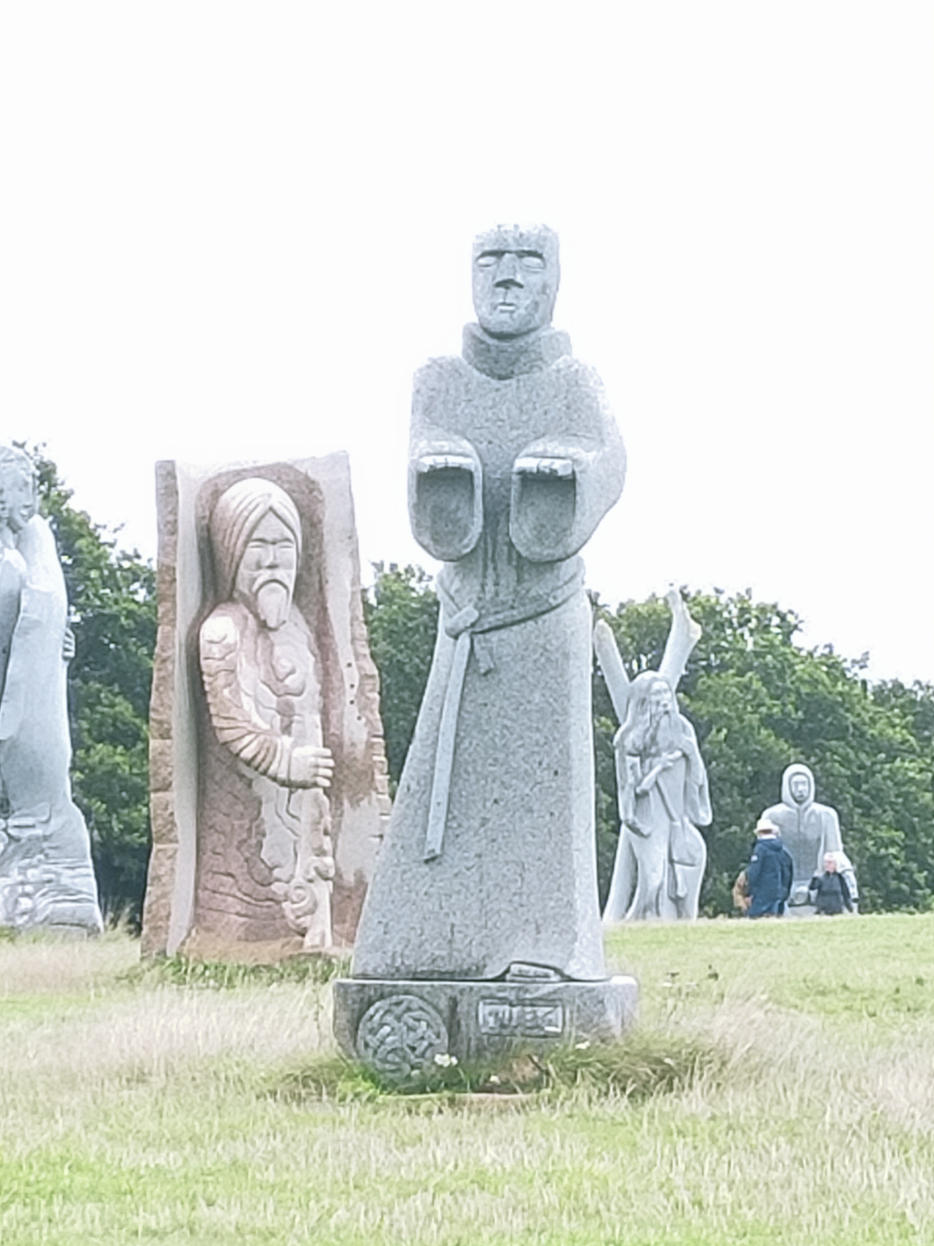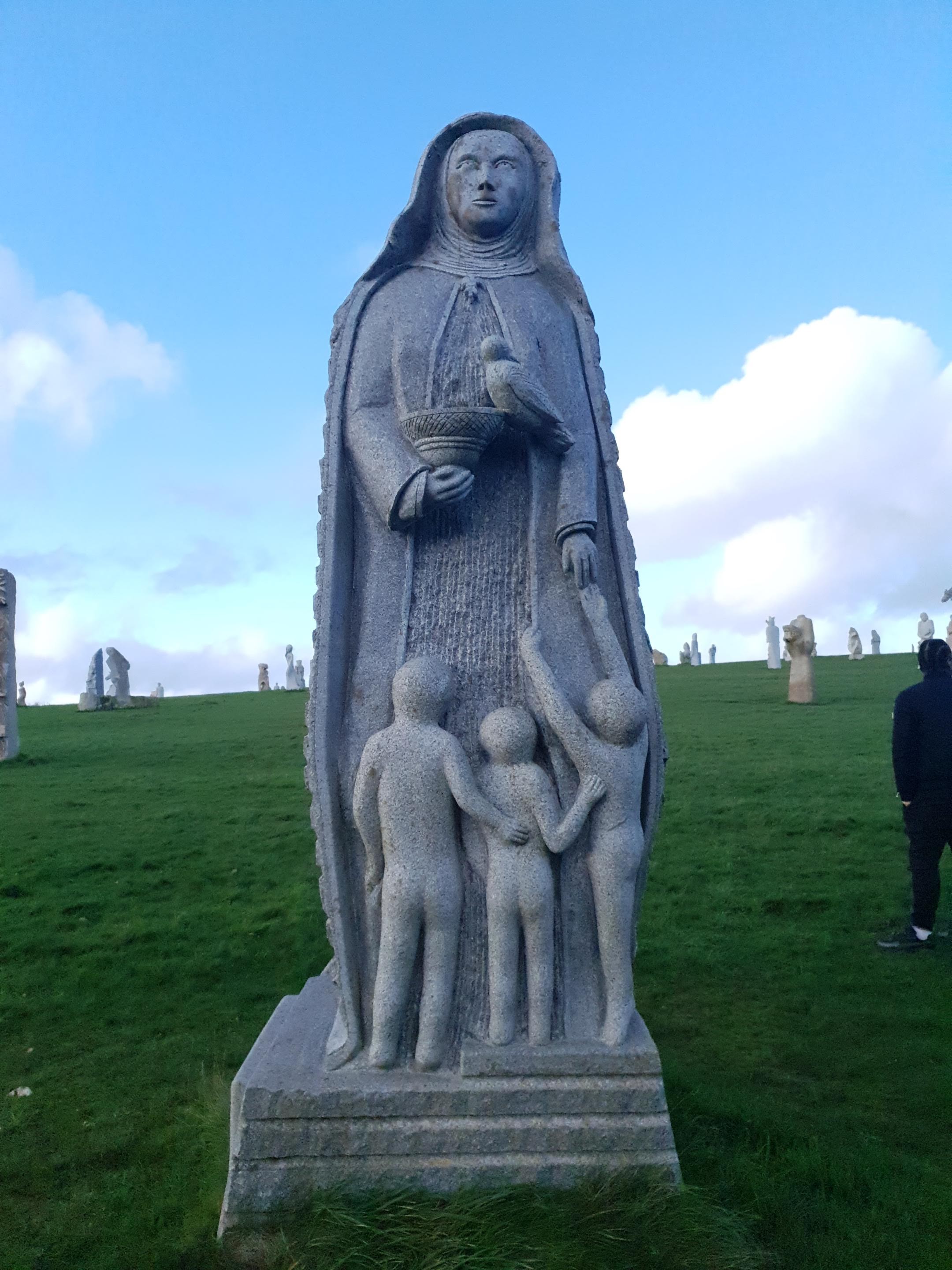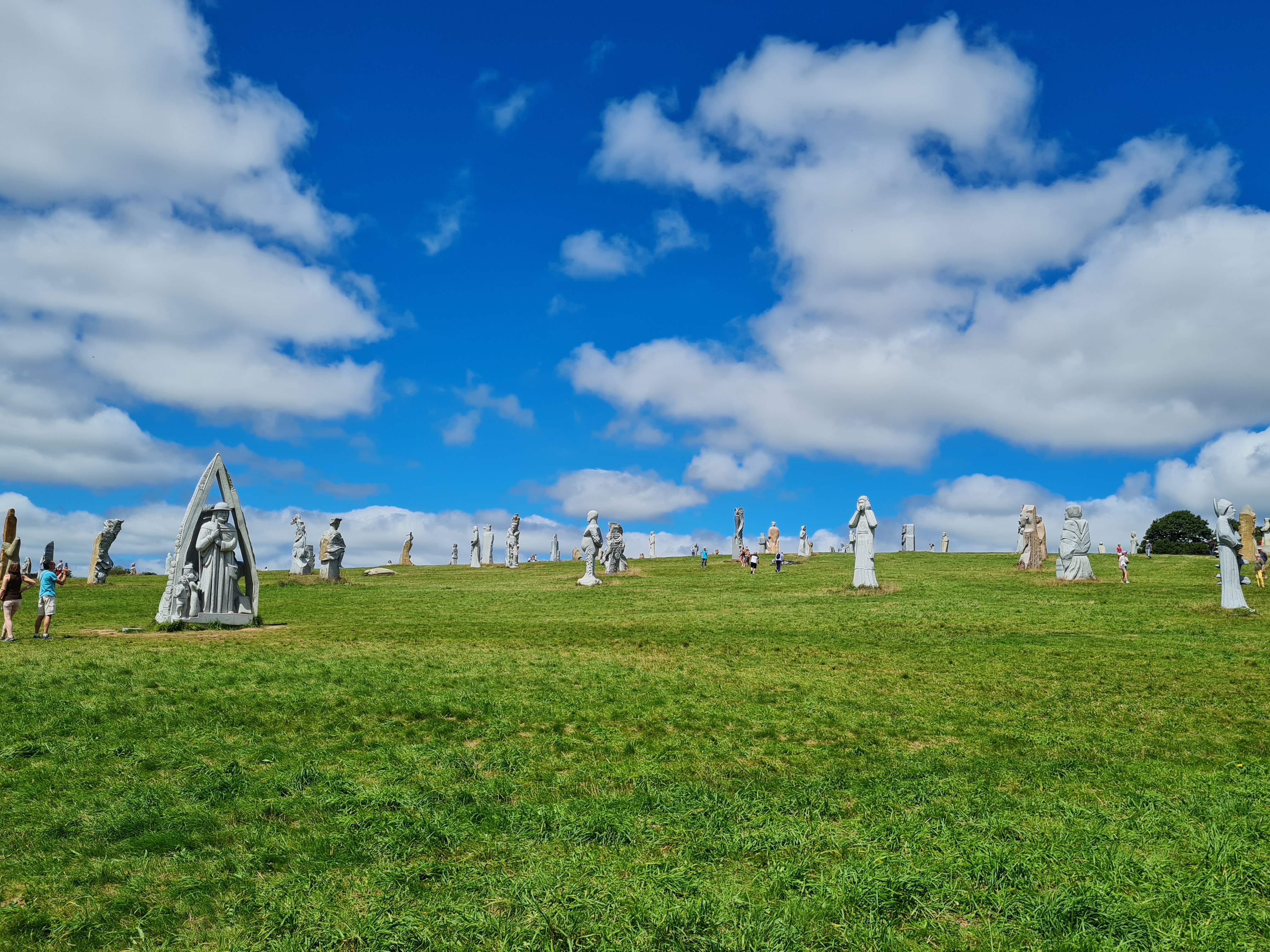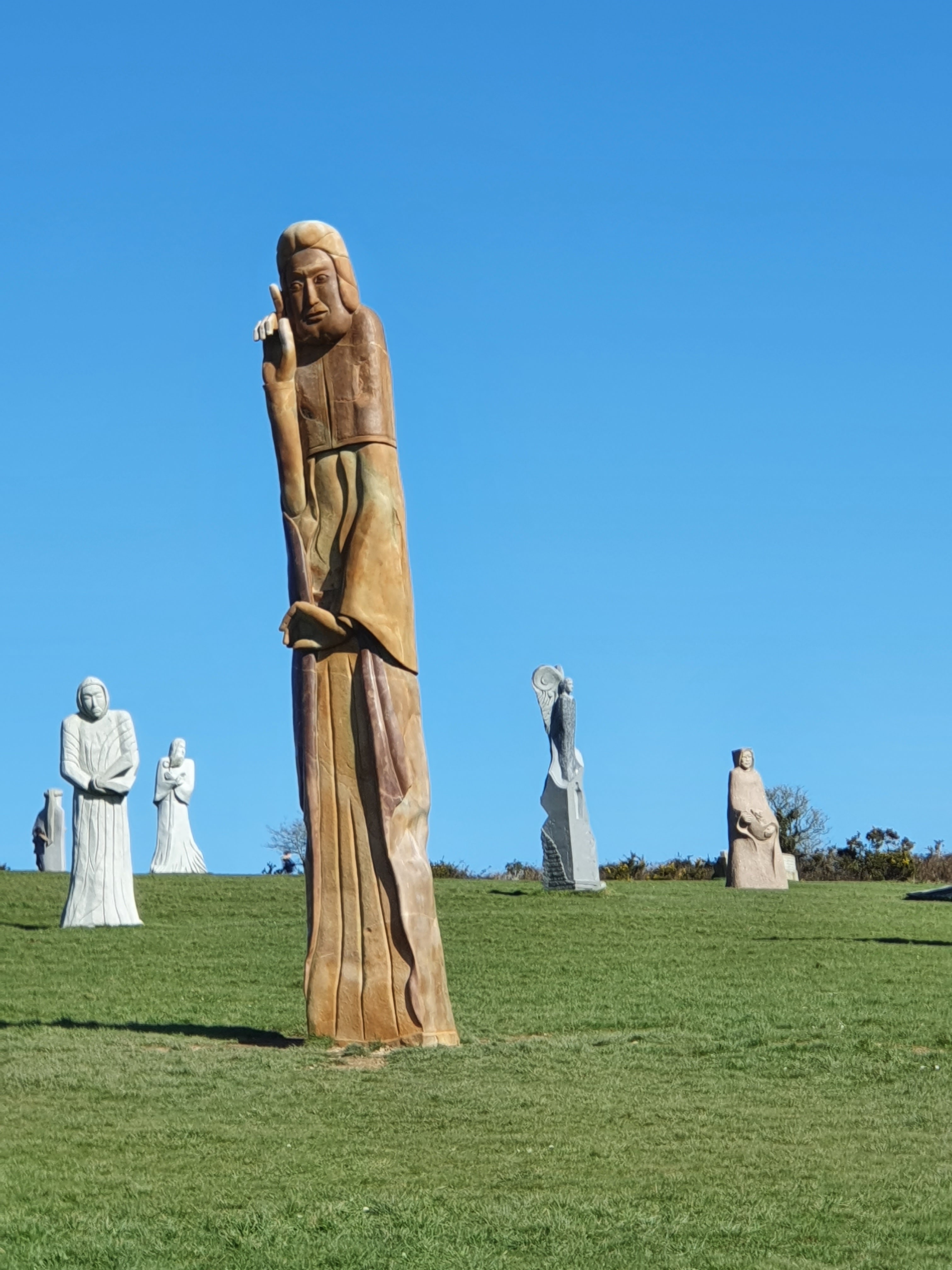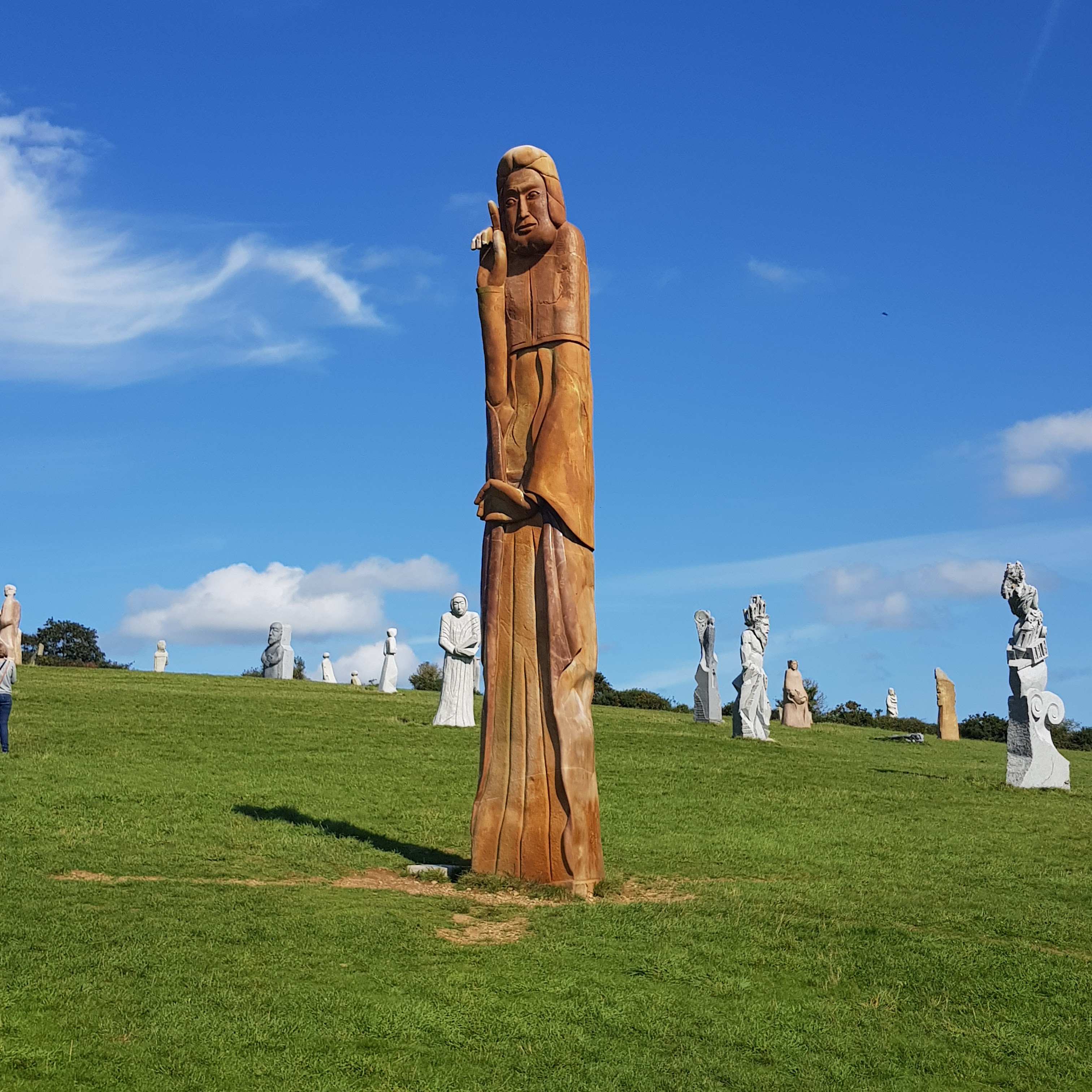 Voilà une idée originale et ambitieuse ! Il est vraiment agréable de déambuler au milieu de ces géants, d'admirer les diverses techniques ou les détails récurrents des différents sculpteurs. Mais il y a tellement de choses à voir qu'il faut prévoir une journée complète pour la visite, ou la faire en deux fois. Petit conseil : commencez par acheter le livre souvenir du site à la boutique. Vous pourrez y trouver nombre de détails enrichissants sur chaque sculpture, à côté desquels vous pourriez passer sinon (position, orientation, présence d'un animal accompagnant le saint...).