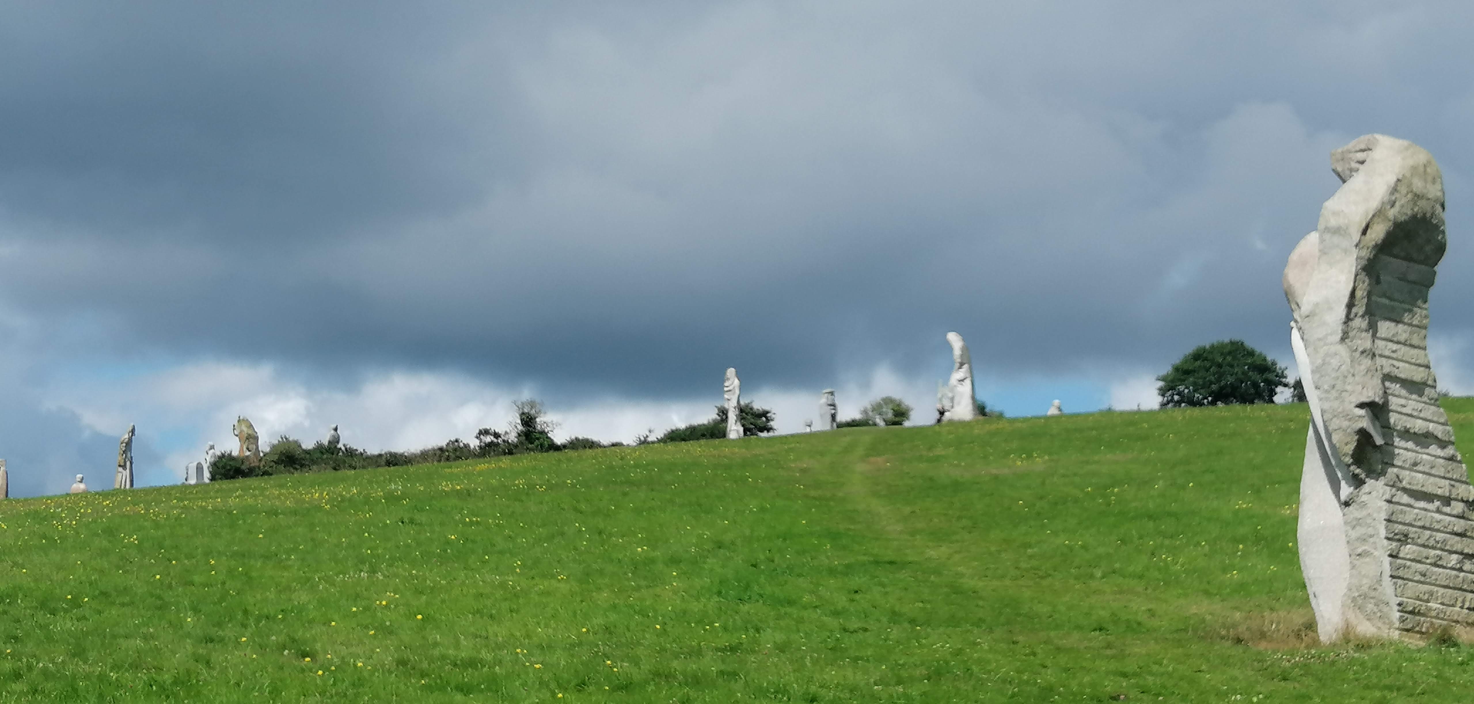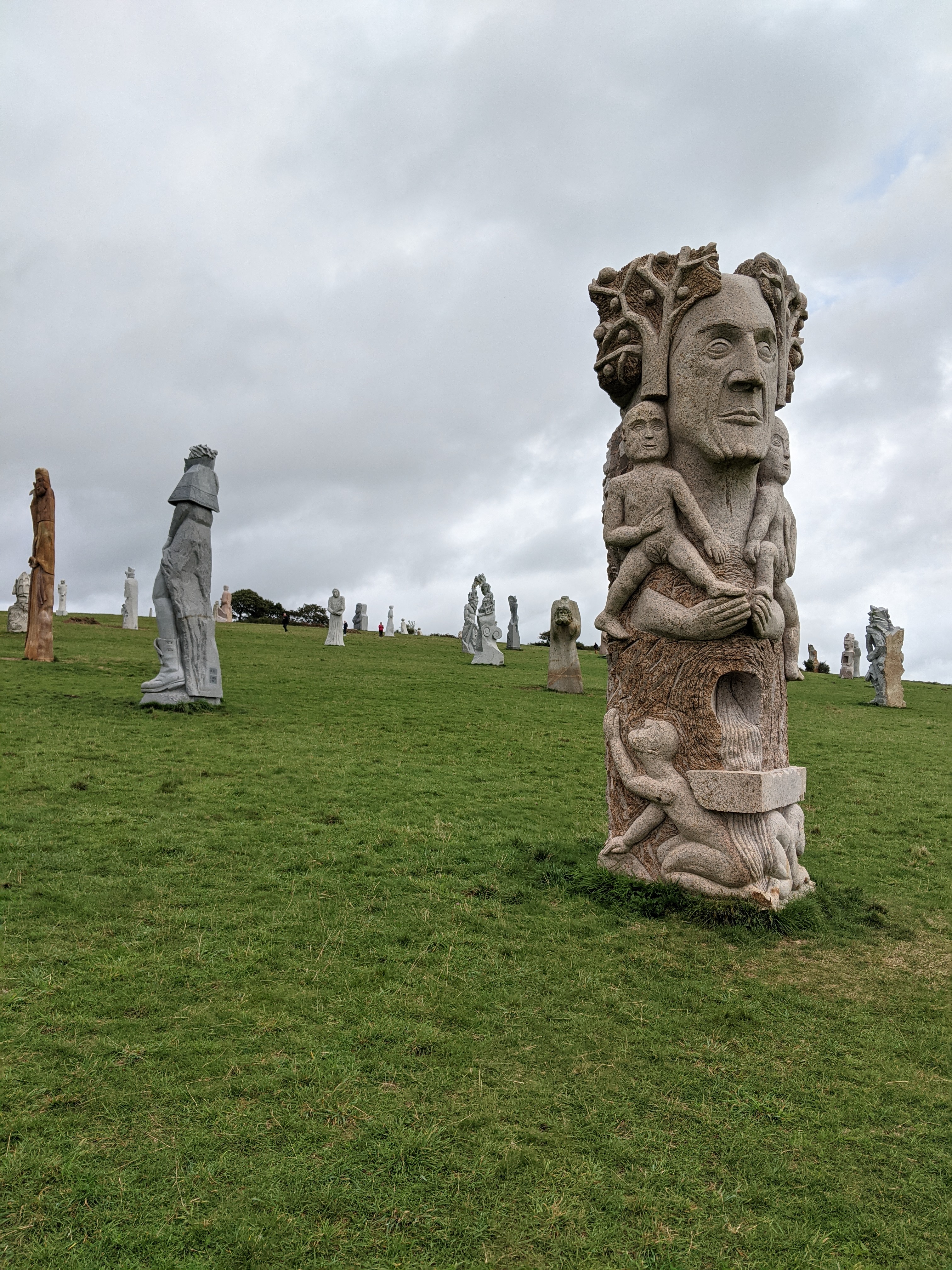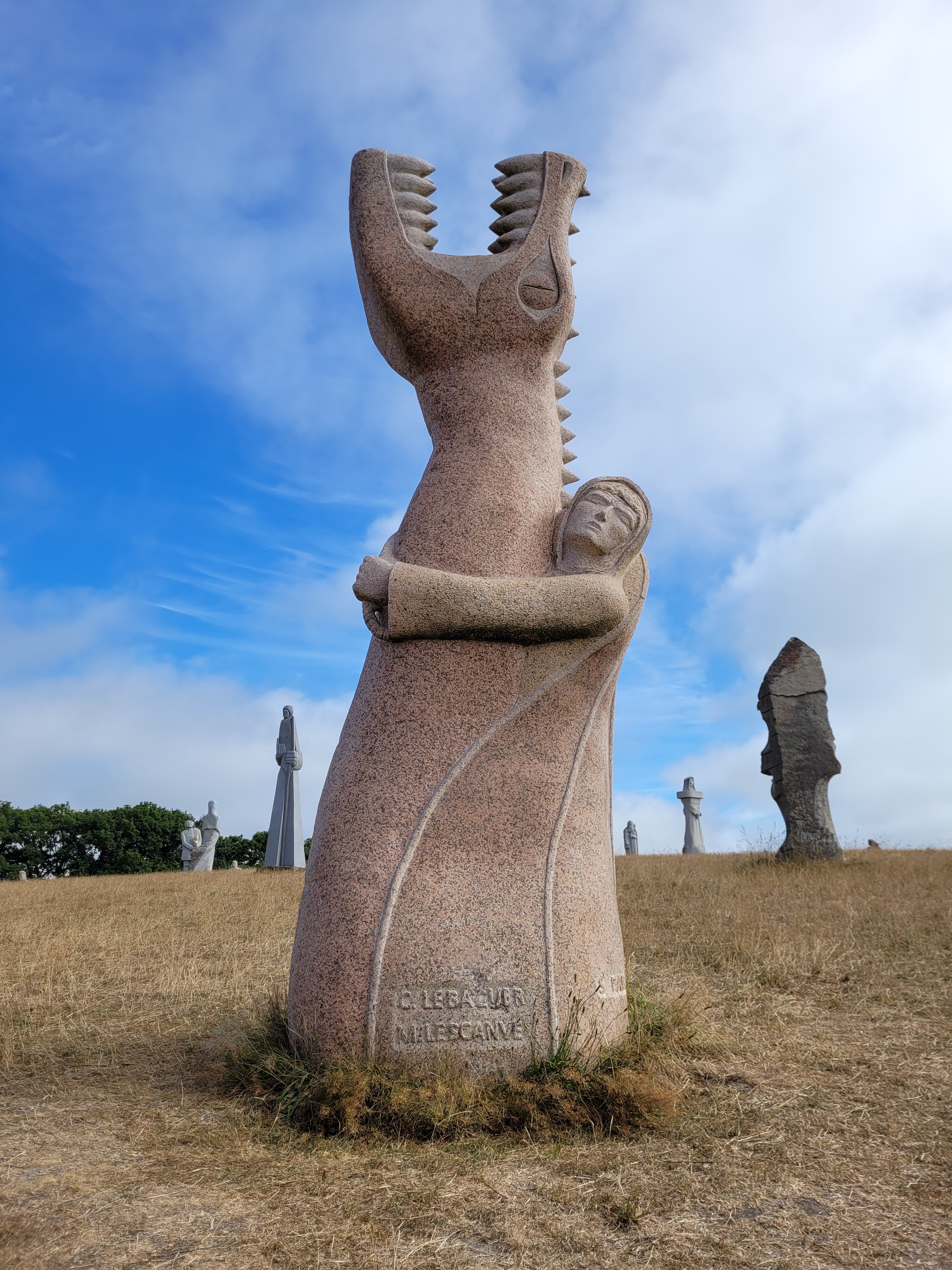 Une balade style « île de Pâques » bretonne vraiment agréable par beau temps. Les sculptures sont impressionnantes, certaines sont immenses (7 mètres environ) et le travail effectué par les artistes est fascinant. Permet d'apprendre un peu plus sur les légendes Bretonnes.