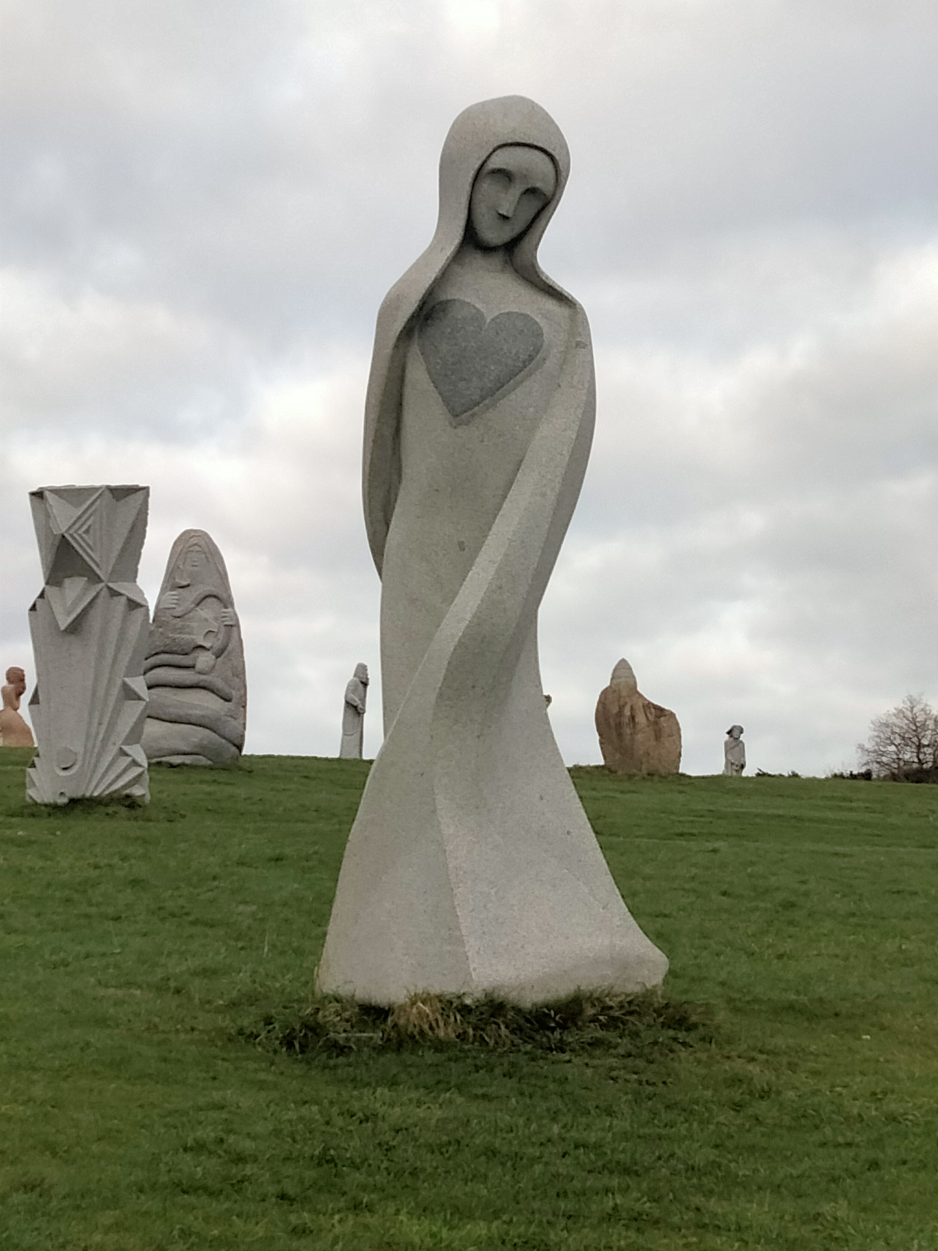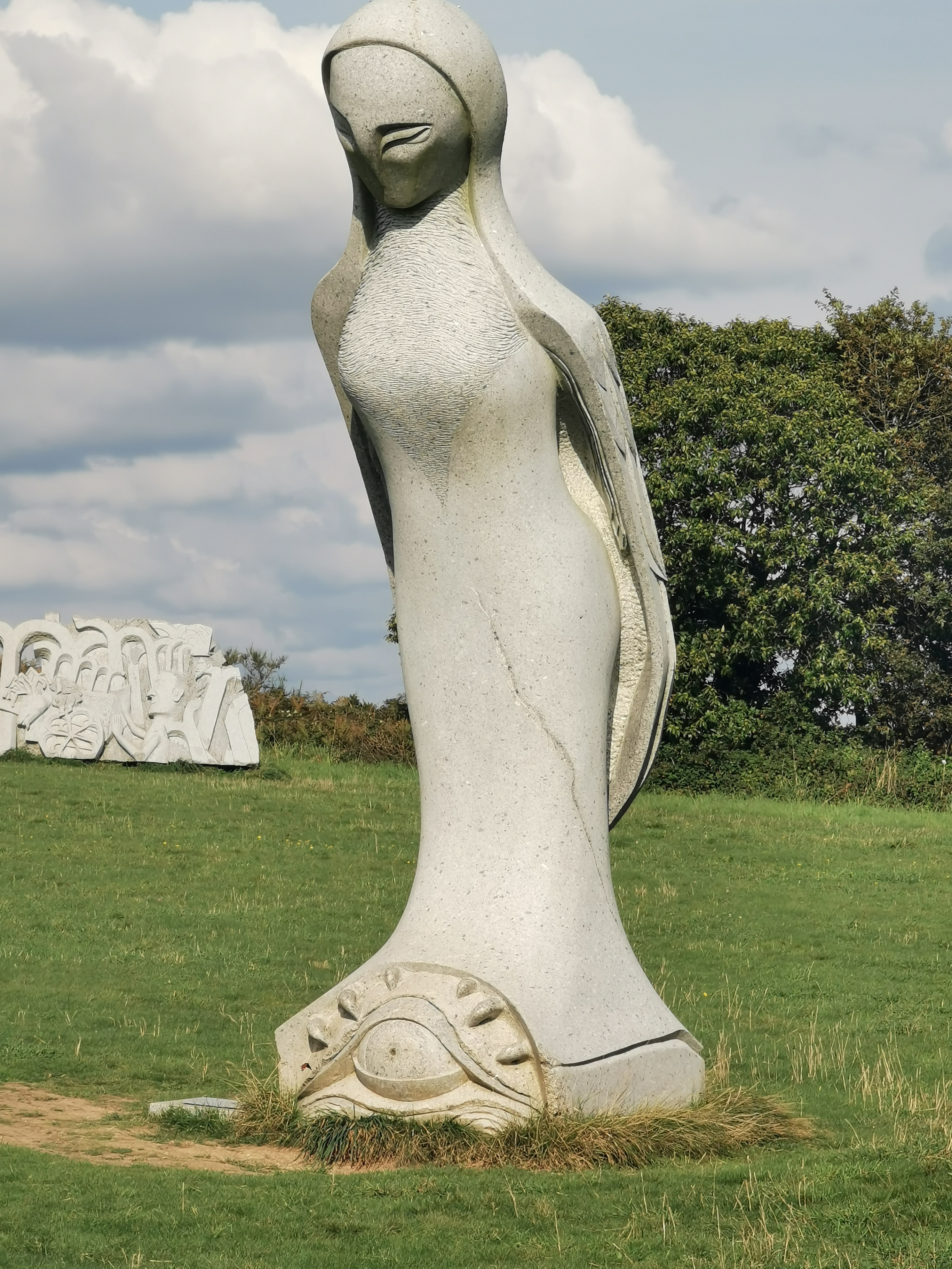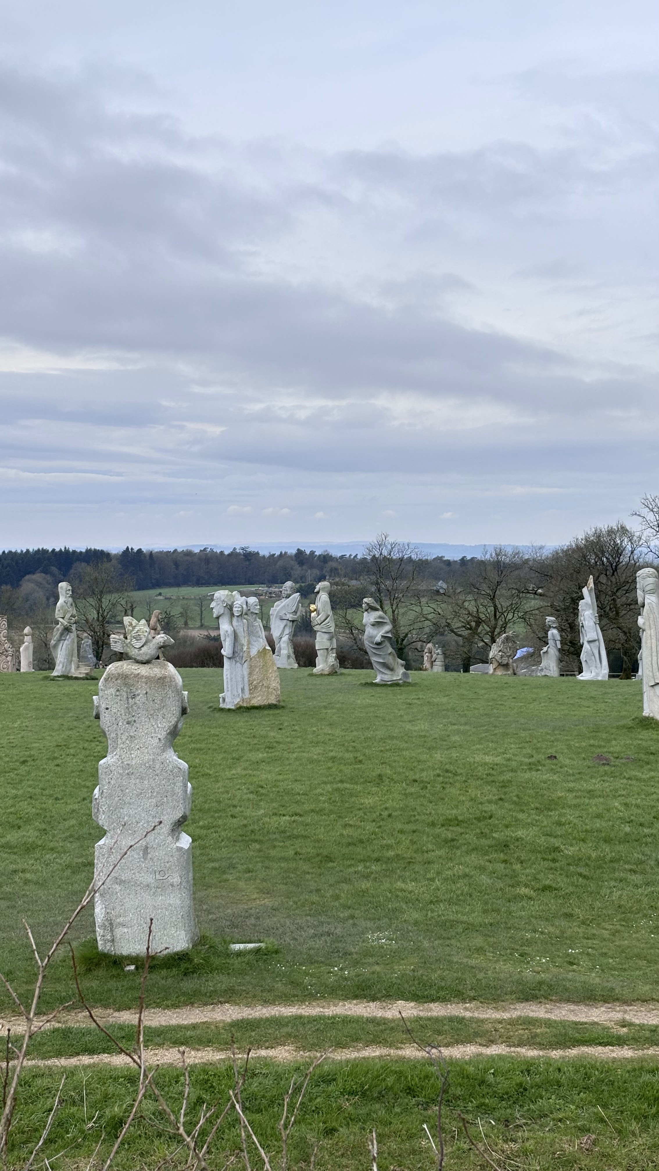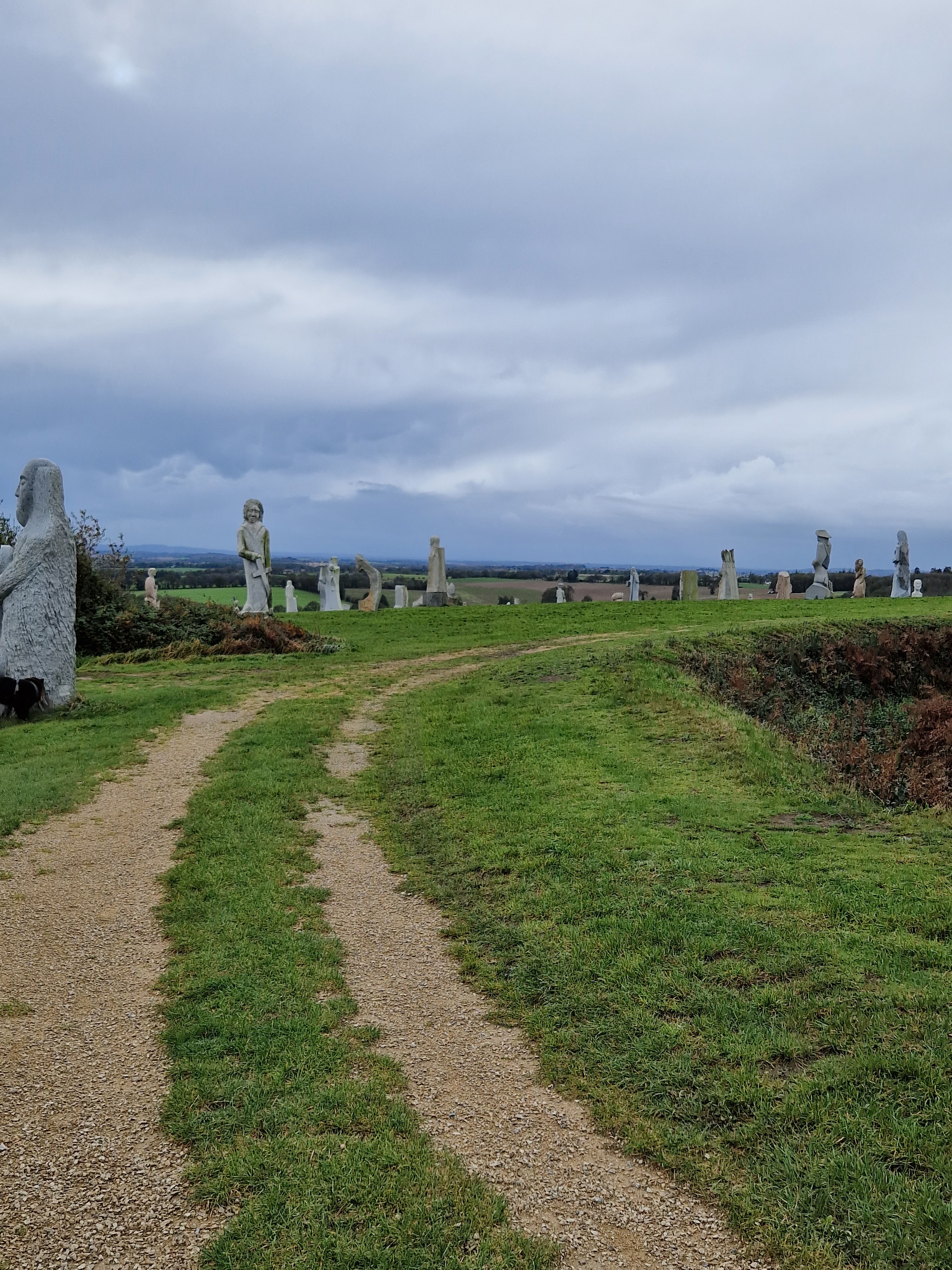 Magnifique découverte de ce lieu qui est magique si on prend le temps de découvrir chaque statue Elles sont disséminées sur différents endroits qui nécessitent de marcher un peu si on se prend au jeu. Le terrain est en herbe mais il y a des chemins tracés. On peut aussi apercevoir les sculpteurs qui travaillent. Il faut descendre un peu pour la chapelle. Un espace cadeaux, une petite buvette. Des sanitaires....( Pour éviter les papiers dans les champs alentours !!!!). Parking payant de 6€ : prévoir CB .
