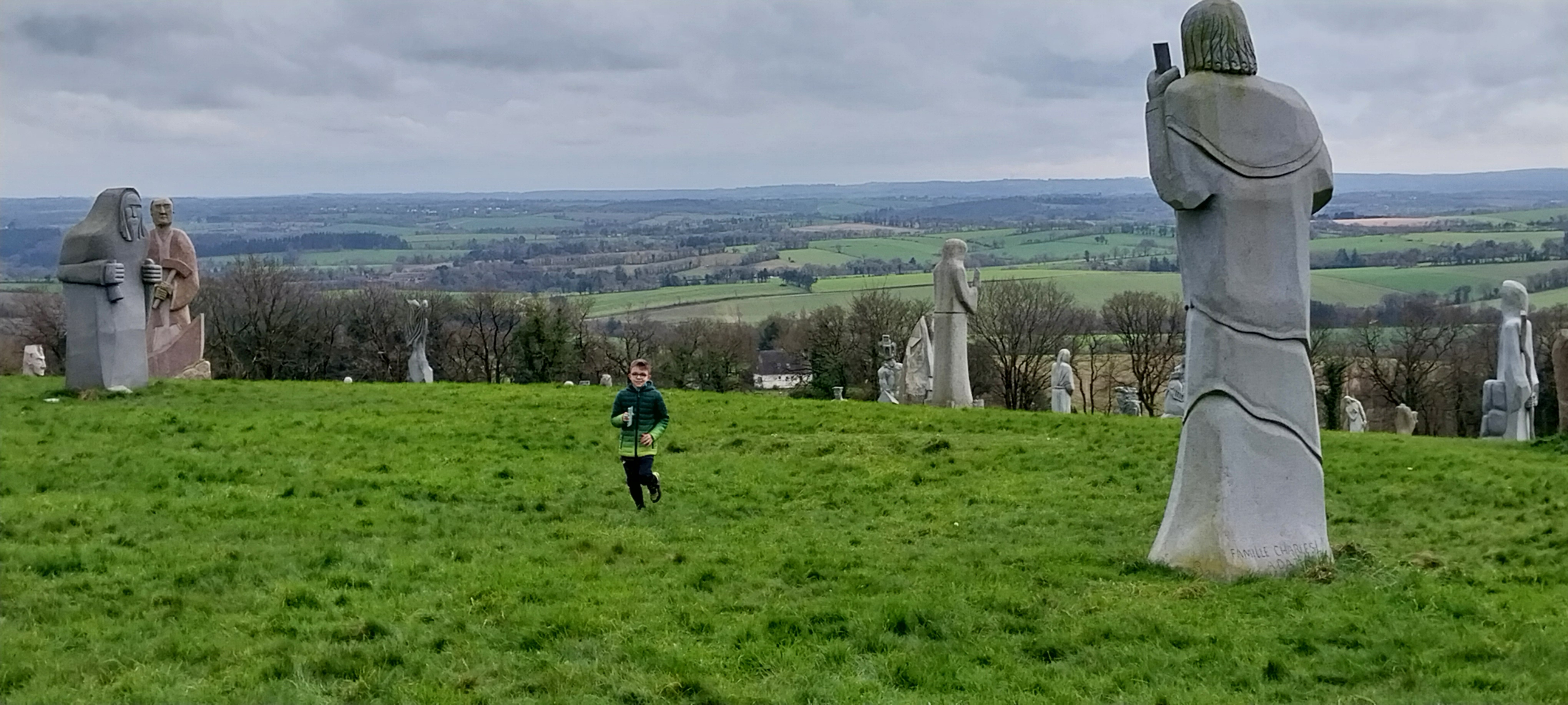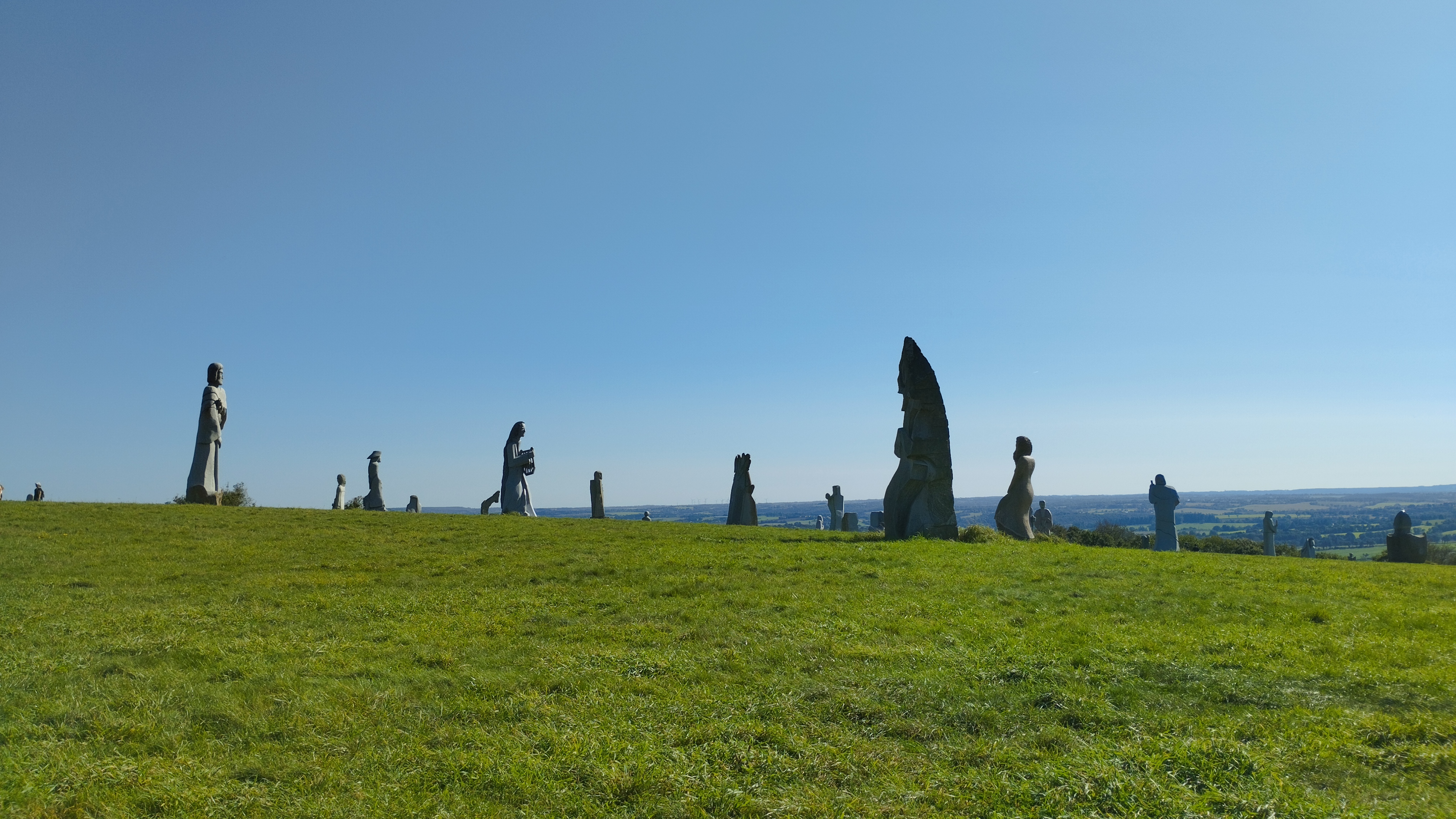 Je m'attendais à quelque chose de très artificiel... Or le site est beau avec une vue à couper le souffle et un tertre touchant. Et plus encore, si certaines statues ne méritent pas le voyage, l'ensemble est convaincant et une bonne partie des œuvres est vraiment intéressante. Peut-être un reproche : les statues sont censées se tourner vers un lieu qui caractérise le saint qu'elles représentent. Ce n'est pas toujours le cas...