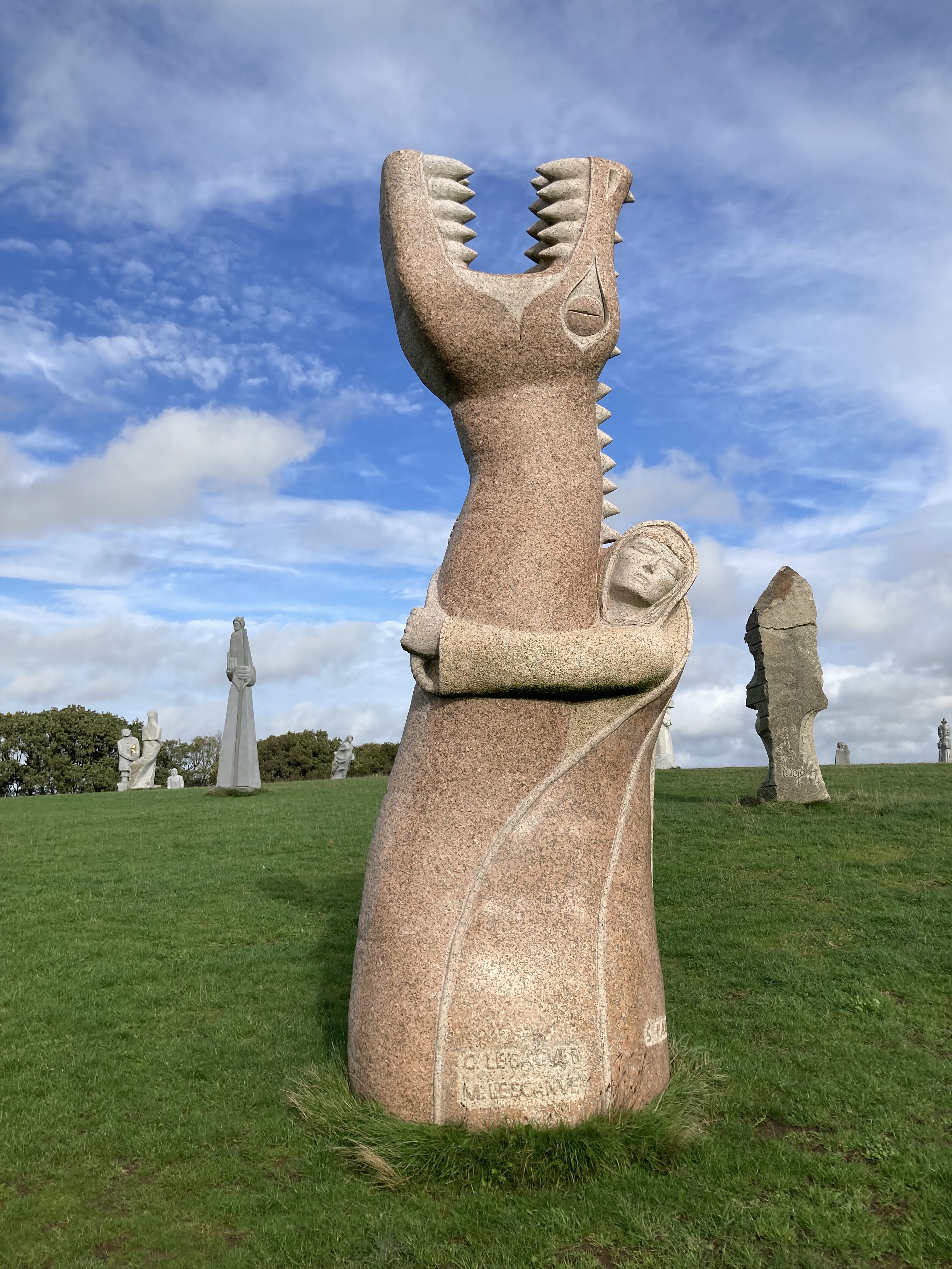 De passage dans le Finistère, nous y avons passé une très bonne après midi. 174 statues taillées dans le granit, dans un cadre magnifique. Le parking à 9 euros mais entrée gratuite. Je dit tout simplement c'est magnifiques et les chiens sont acceptés.