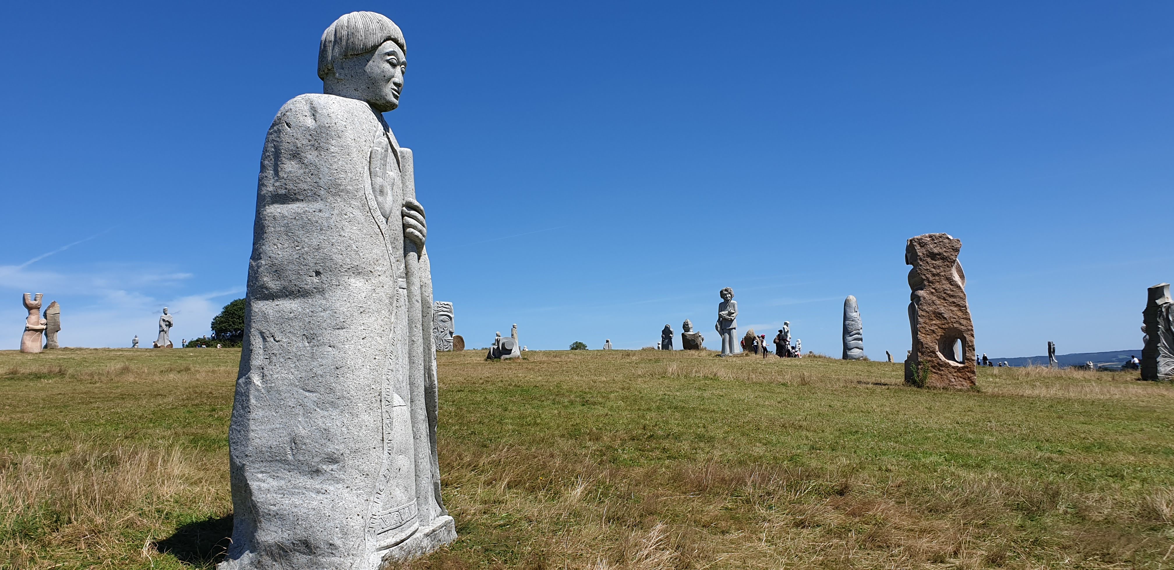 Lieu magique 250 statues de granite, d artistes différents, sur un énorme tumulus