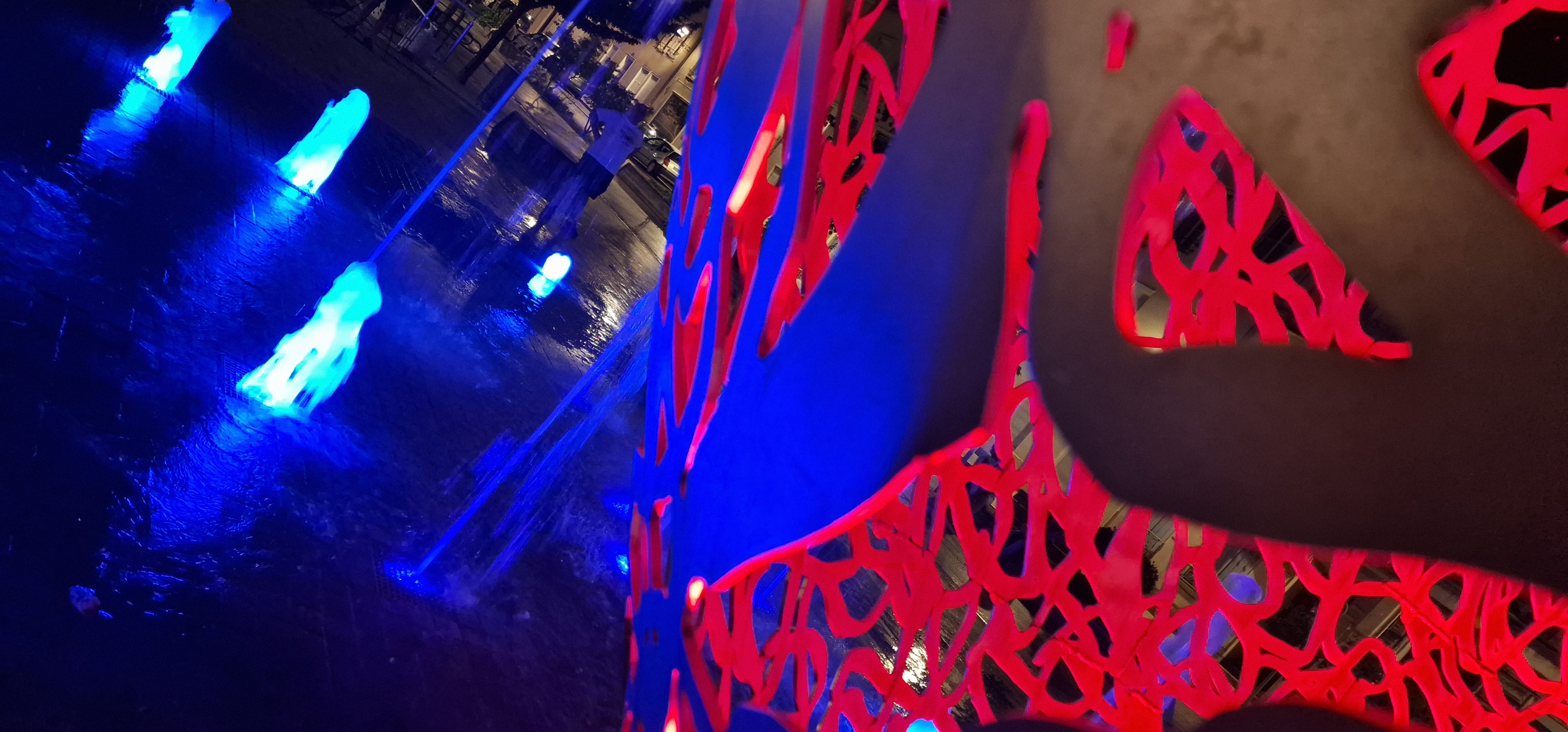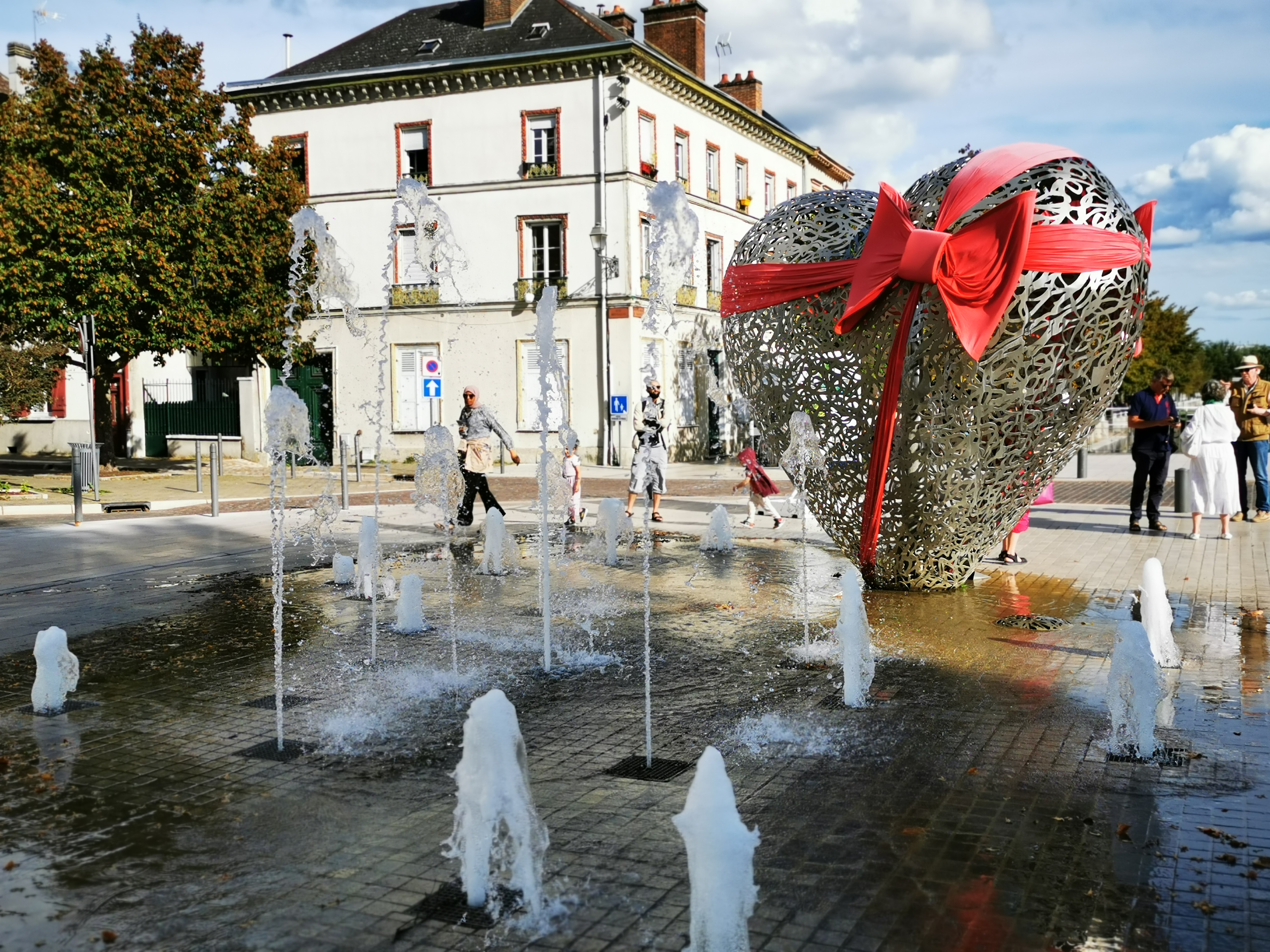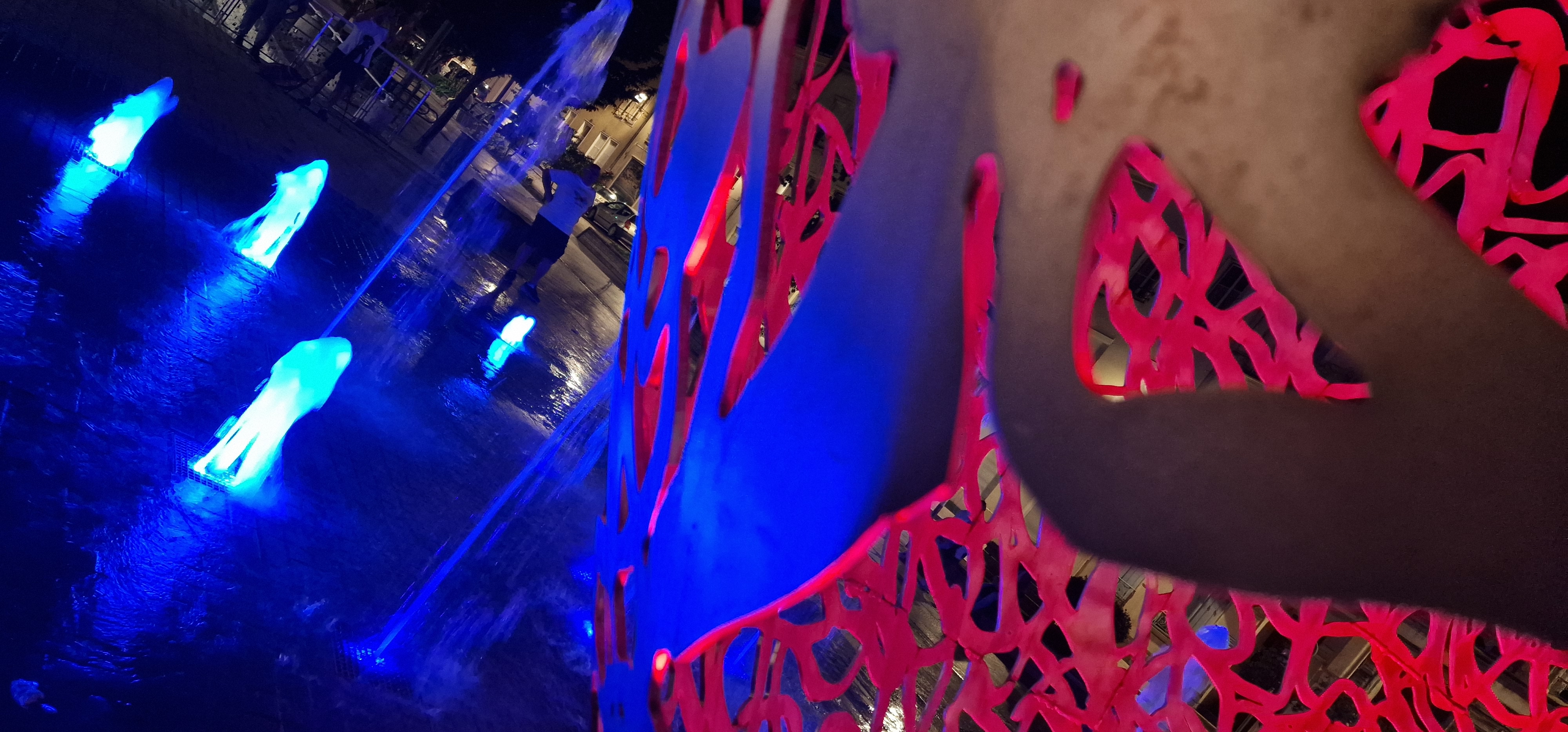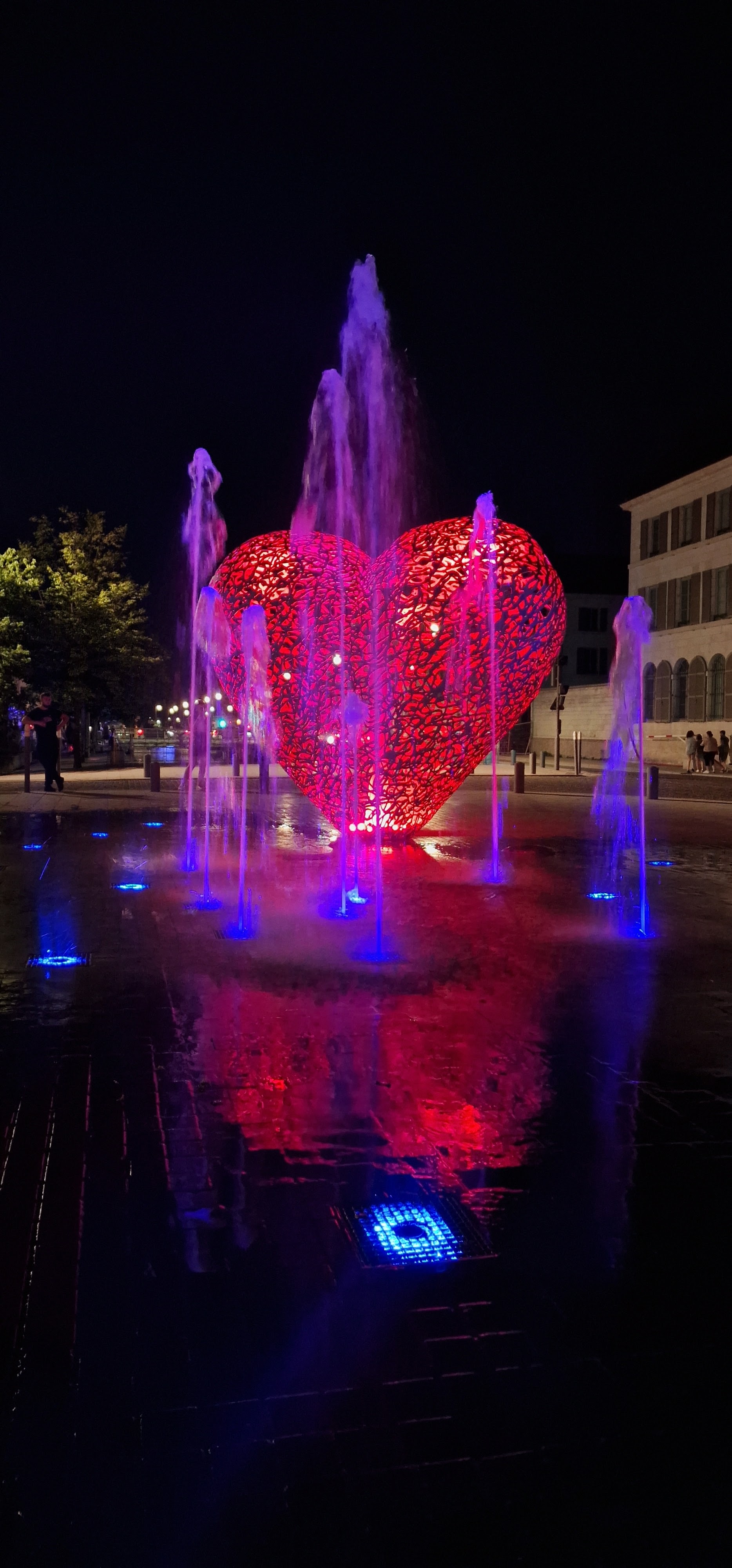 Une sculpture vraiment magnifique qui représente bien l'amour. Et les battements du cœur avec cette lumière rouge et ces jets qui sortent de terre. À voir si vous passez par Troyes.