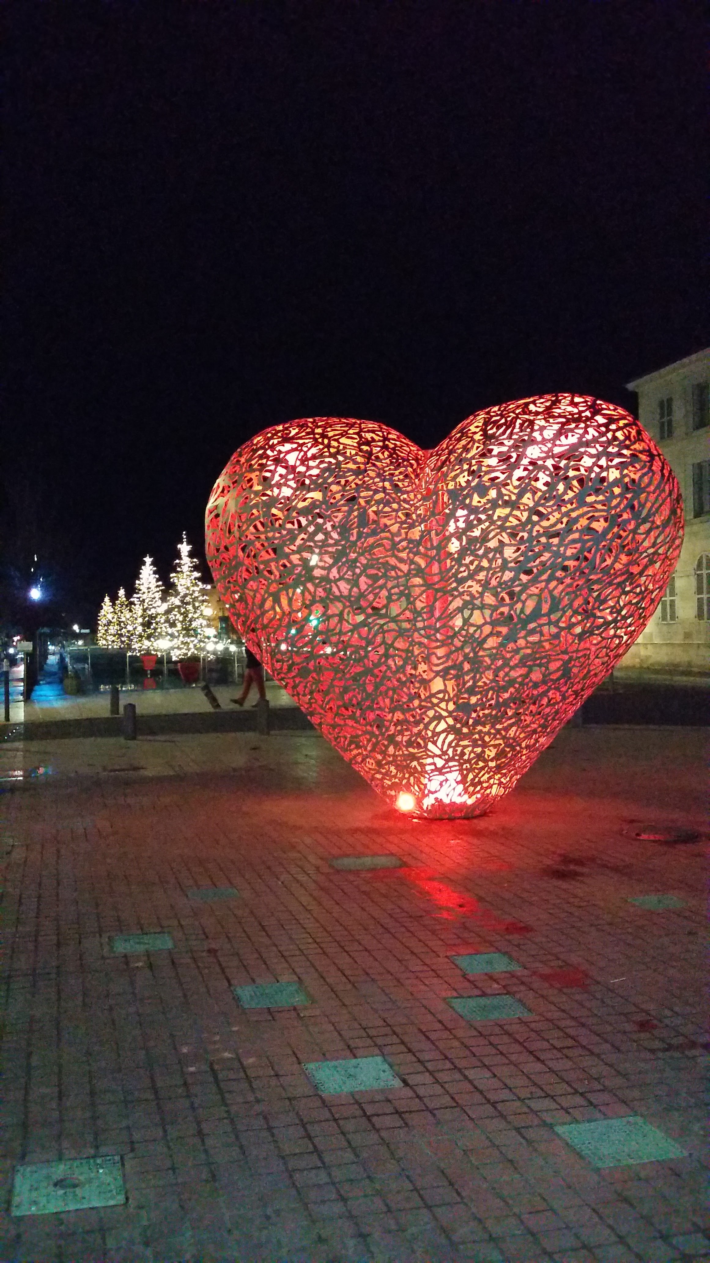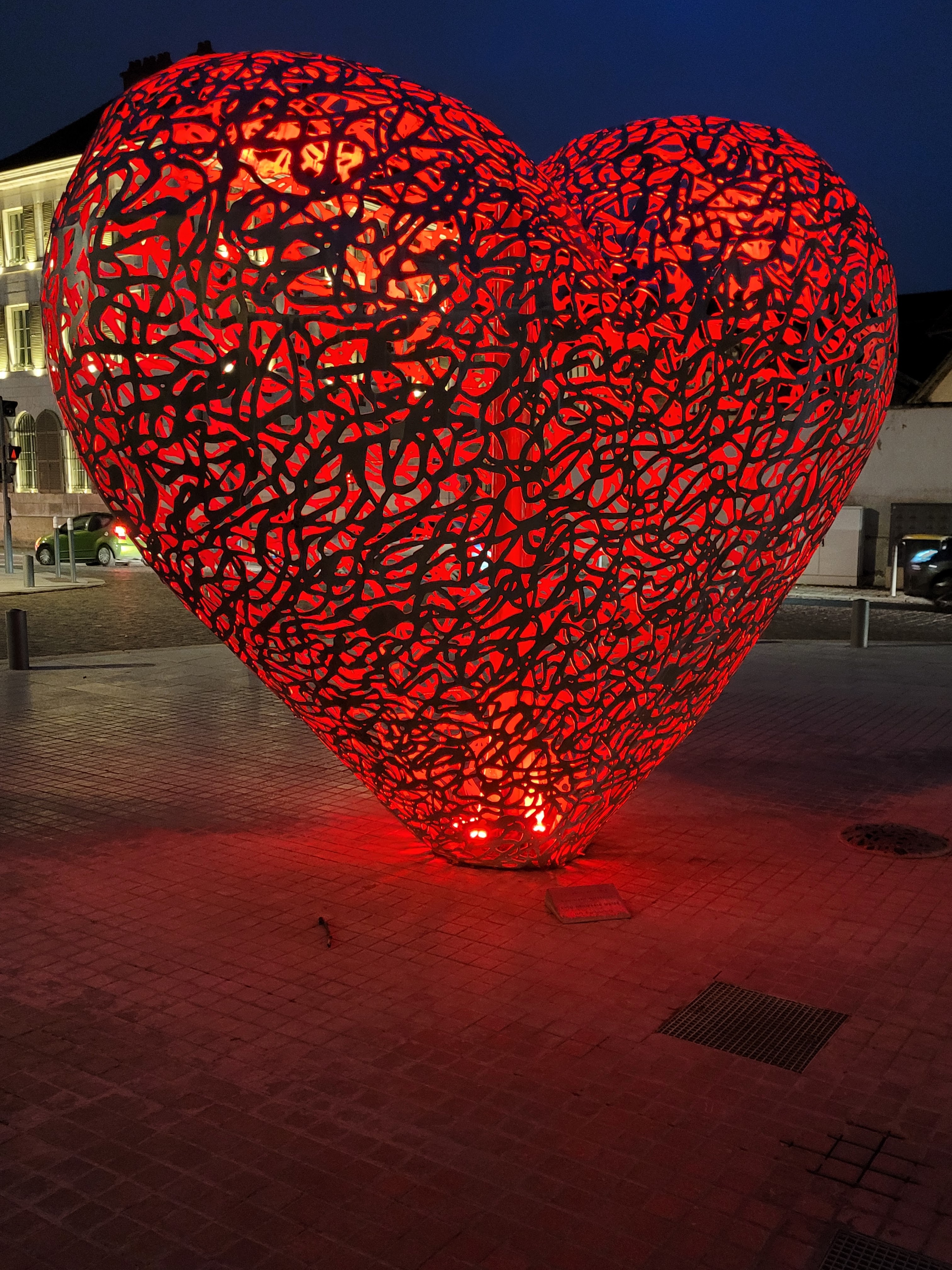 Le cœur de Troyes et un cœur en métal qui la nuit s'allume quand ont passe à côté un effet magnifique