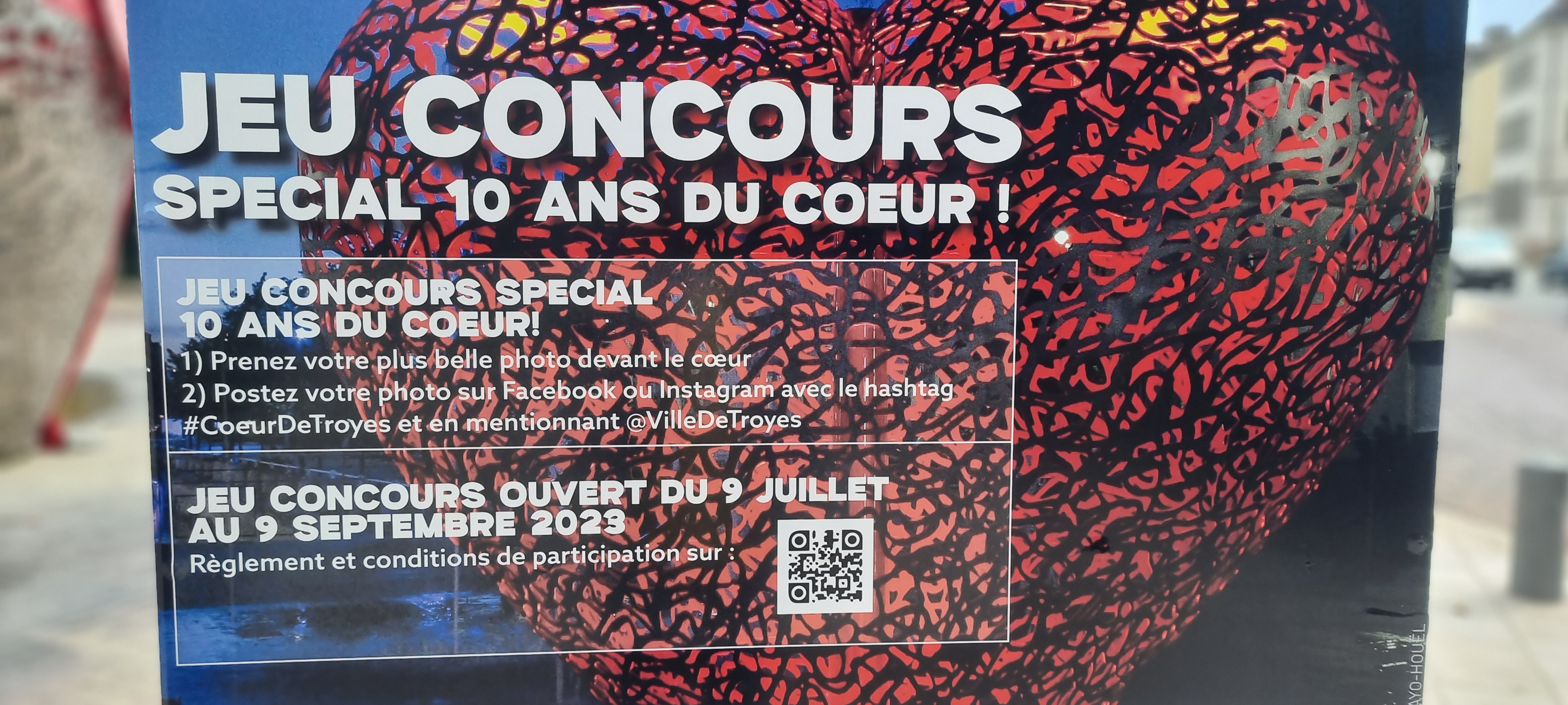 Très beau. Le coeur de Troyes avait été créé vers 2012 - 2014 et j y était en 2013, je suis né à Troyes en 2008 mais je crois bien qu'il avait été fondé pendant cette période. mais nous ne sommes plus a Troyes, mais quand on part en vacances, quel plaisir de revoir ce coeur toujours aussi beau.